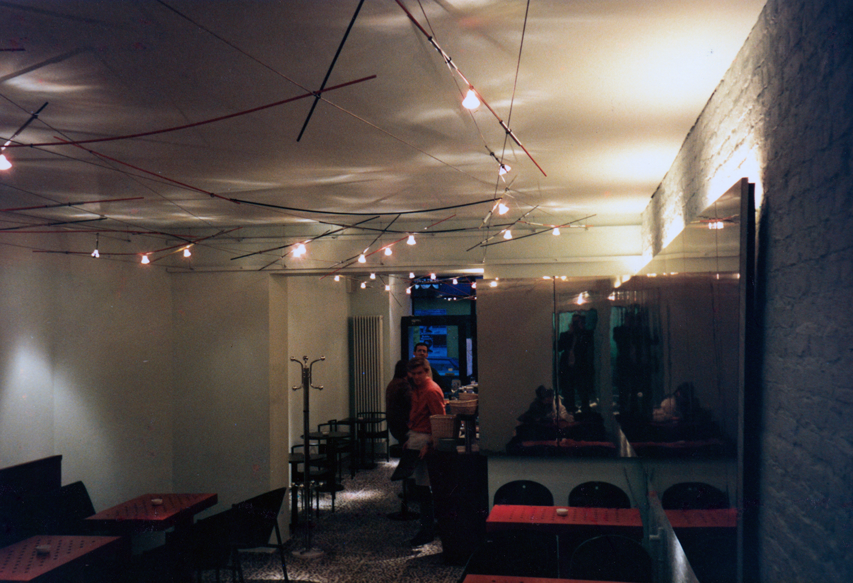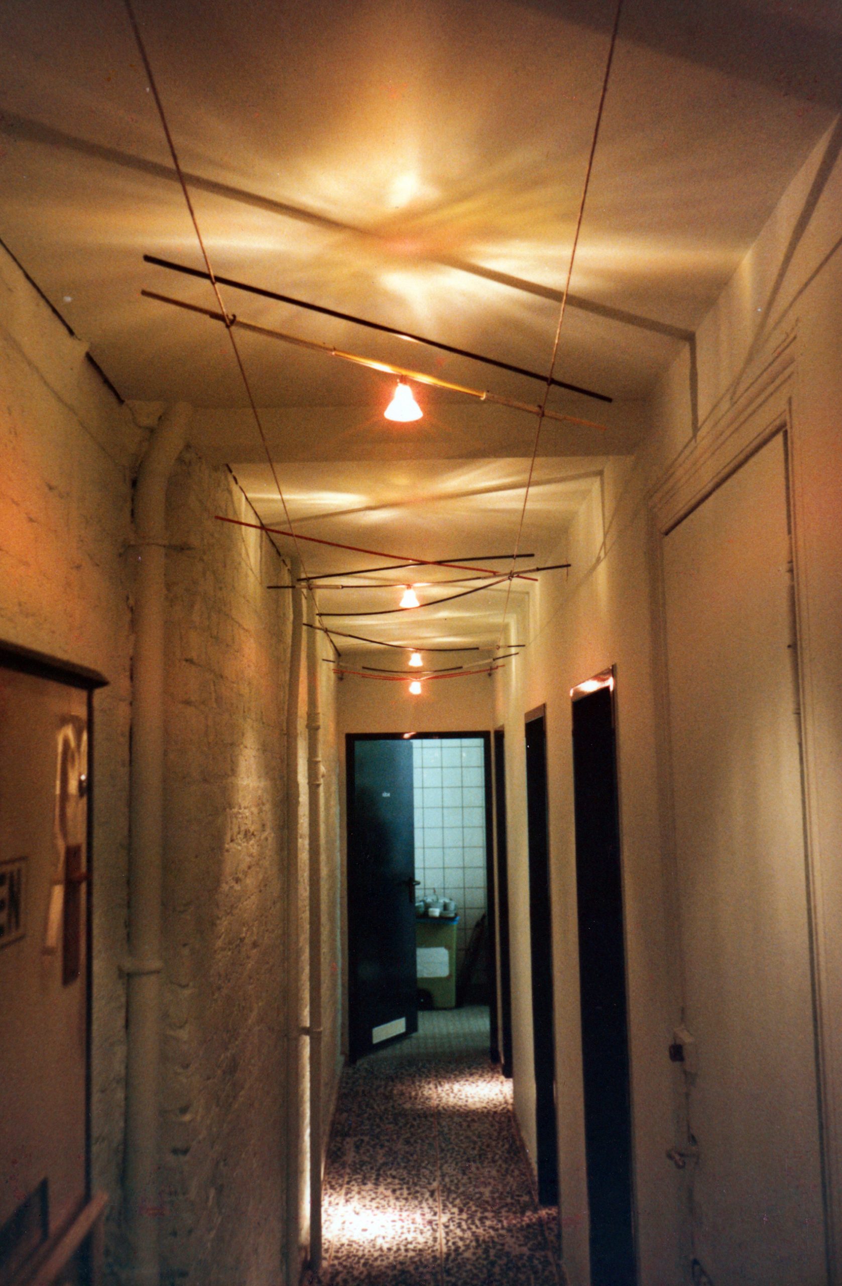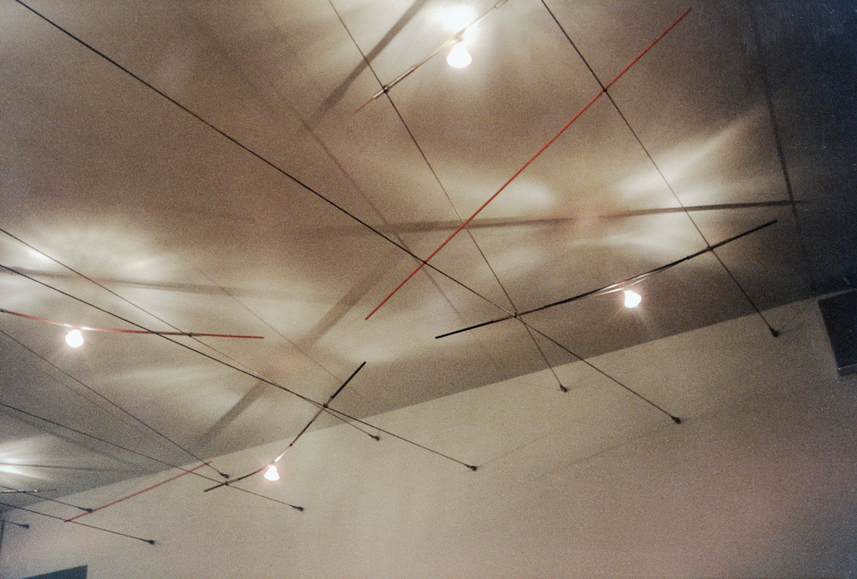 Wir entwickelten zusammen mit Paul Walter Schmits-Reinecke, dem damaligen technischen Leiter der Selux AG, einem seit 1948 bestehenden Unternehmen für die Herstellung von Beleuchtungsanlagen in Berlin-Marienfelde, eine elektrisch hochfahrbare Decke aus System Steiner. Die Decke sollte aus einem modularen System sein, um die unterschiedlichsten flächigen Materialien sowie Stromschienen und Einzelleuchten daran befestigen zu können. Für Kunden konnten somit Lichtsituationen in einer Raumeinheit mit anpassbaren Höhen demonstriert werden. Die Winde befand sich innerhalb des mobilen Fachwerks, sodass lediglich vier Befestigungspunkte in der Decke des Hauses notwendig waren,