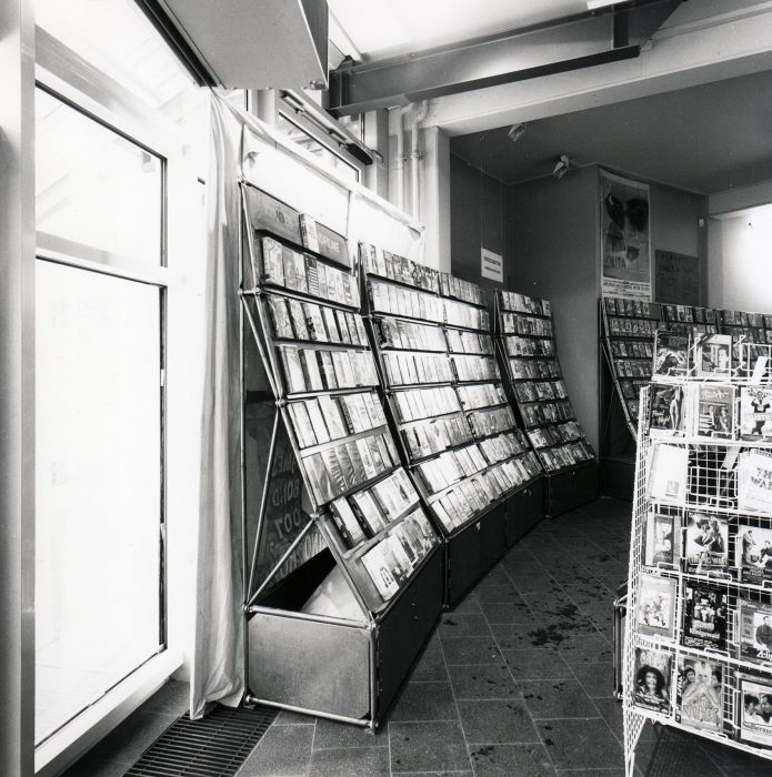 Das erste und zweite Foto zeigen das Obergeschoss im Kugel-Kino, die Fotos 3 bis 7 zeigen den Shop im Erdgeschoss. Auf dem Farbfoto beobachtet die Geschäftsführerin der Museumstechnik GmbH, Sybille Fanelsa, die Bauarbeiten.
