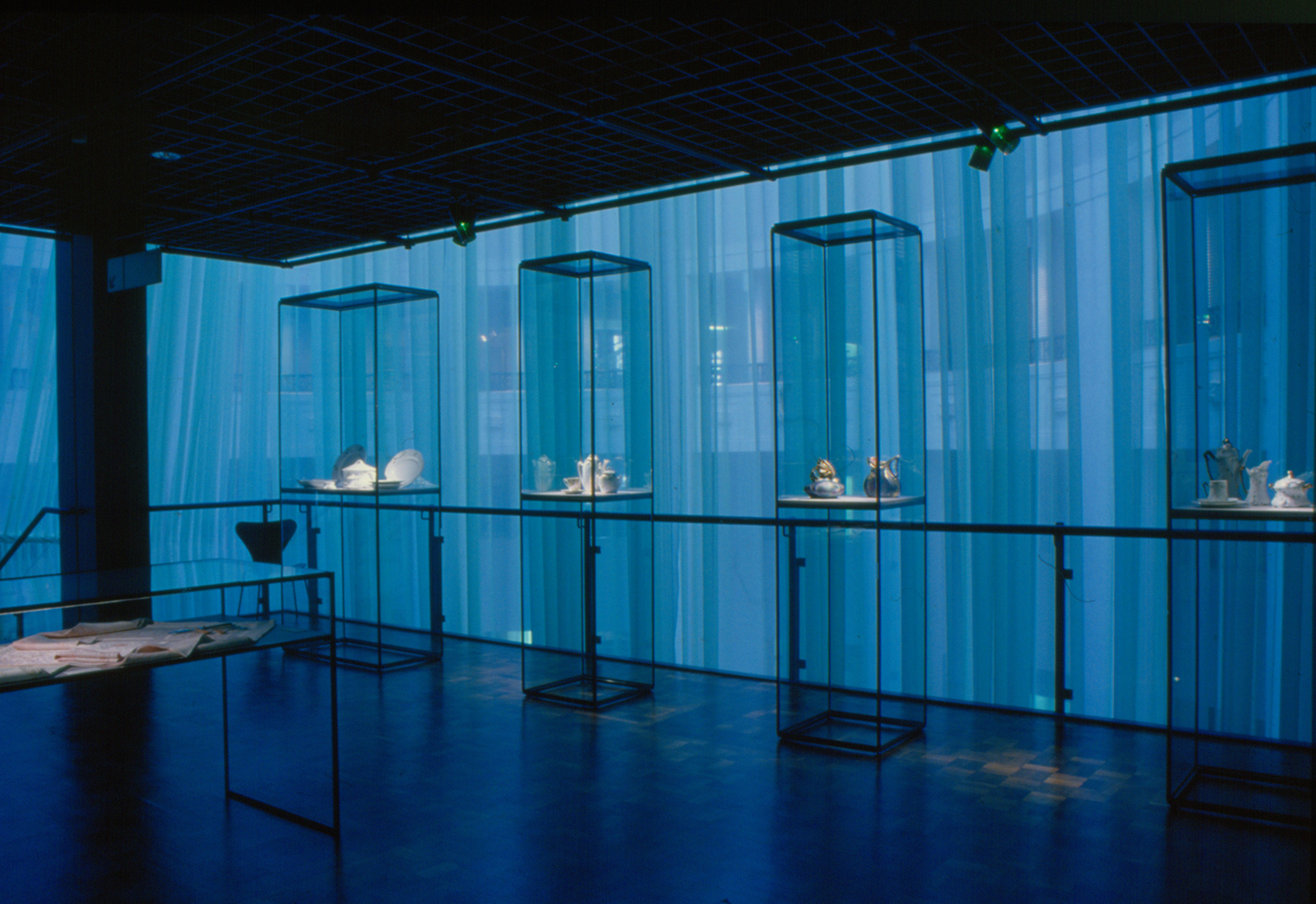Die Gestaltung der Ausstellung im Haupthaus des Museums für Kunst und Kulturgeschichte war eine Arbeit des Büros Steiner mit der Idee, eine neue Variante der Grundgestaltung ausschließlich durch eingefärbtes Licht zu erzielen.