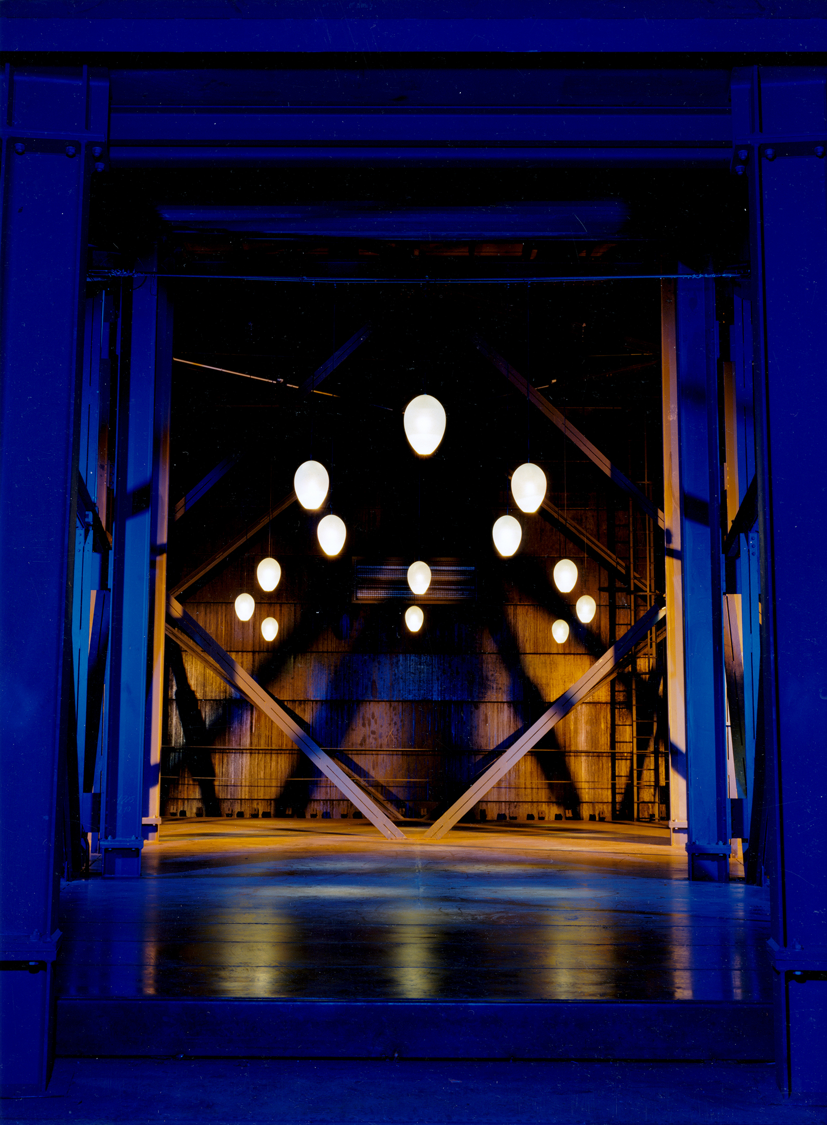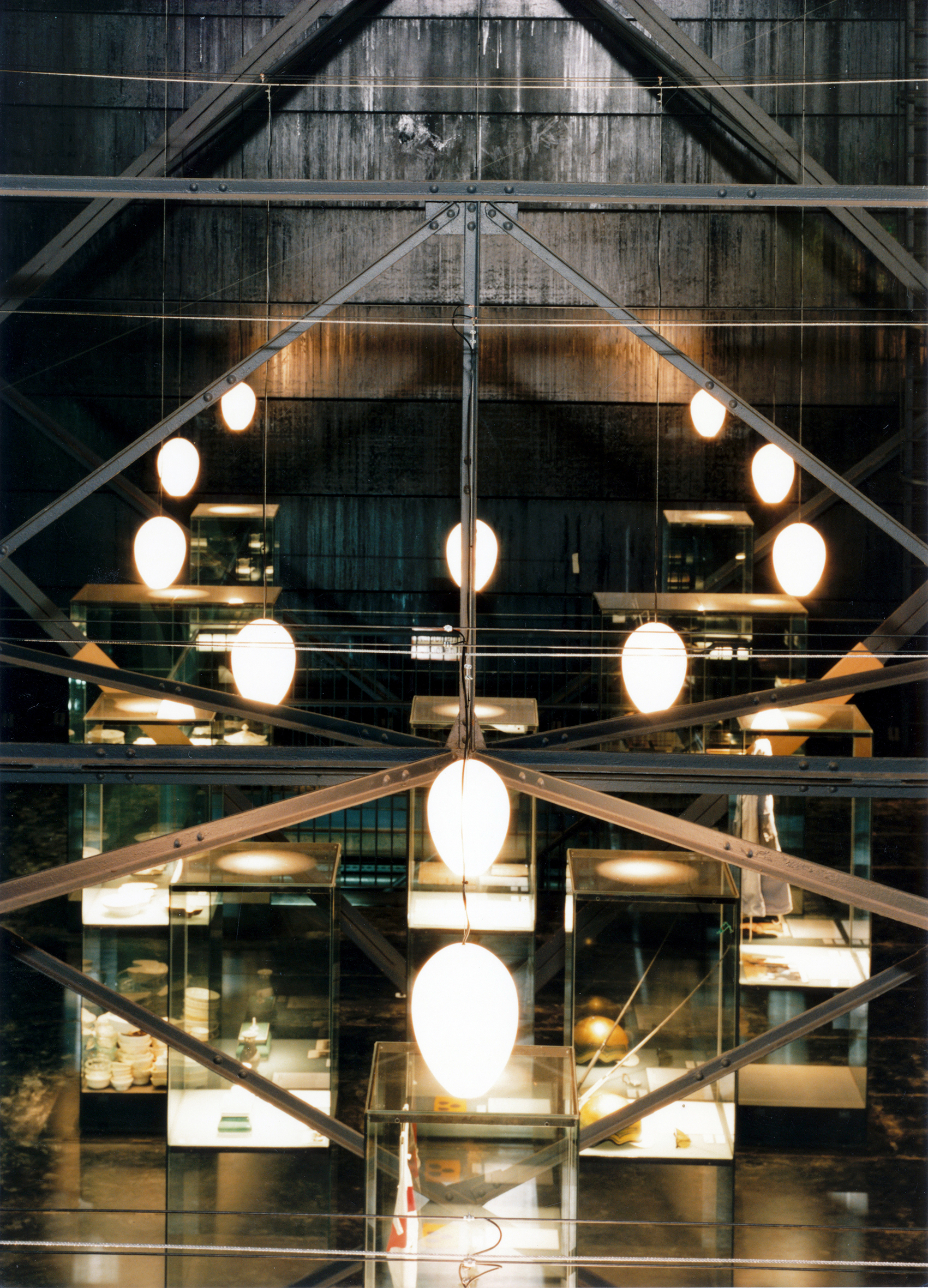 Die ursprüngliche Leuchte wurde in Klarglas, innenmattiert hergestellt. Spätere Varianten sind auch von außen mattiert worden. Die ersten drei Bilder wurden 1994 im Gasometer Oberhausen aufgenommen, die beiden weiteren zeigen drei Eierleuchten bei Dr. Helga Korff, das nächste zeigt den Empfangsraum der Physiotherapiepraxis Britta Beckendorf, die beiden letzten wurden im Museum System 180® aufgenommen.