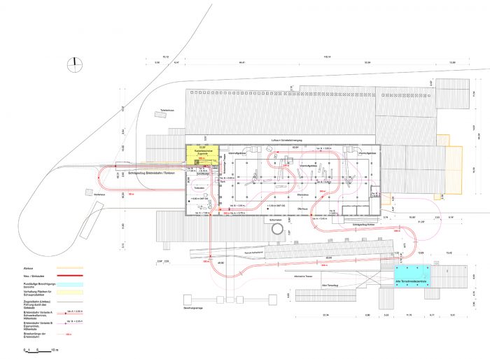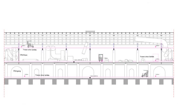 Thema des erfolgreichen Wettbewerbsentwurfes von 1999 ist, das gesamte Gebäude zur Besichtigung mit schienengeführten Wagen freizugeben. Aufwändige Verkehrssicherungsmassnahmen werden so vermieden. Das Publikum nimmt entspannt und mit hoher Erlebnisqualität am Rundgang teil. Die Wagen werden über eine Rampe zum höchsten Punkt gezogen und bewegen sich mittels Schwerkraft durch das Gebäude. Vordringlich ist dabei die Sicherung des Bestandes, vor allem durch Instandsetzung der Dächer. Die Begleitung der Sicherungsmassnahmen im Hinblick auf eine zukünftige Nutzung und die Umsetzung des Wettbewerbskonzeptes ist Aufgabe im Jahr 2001.
