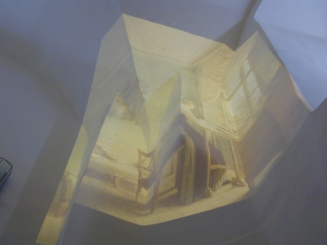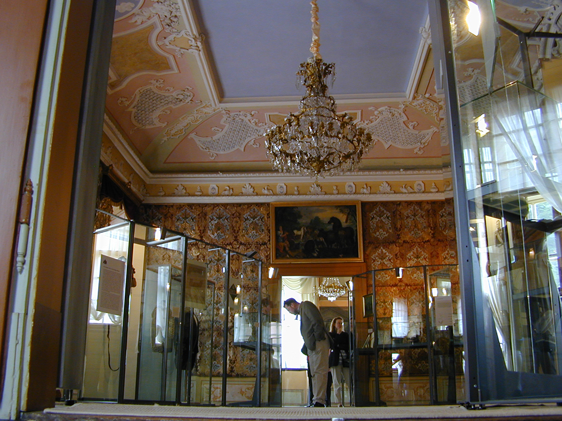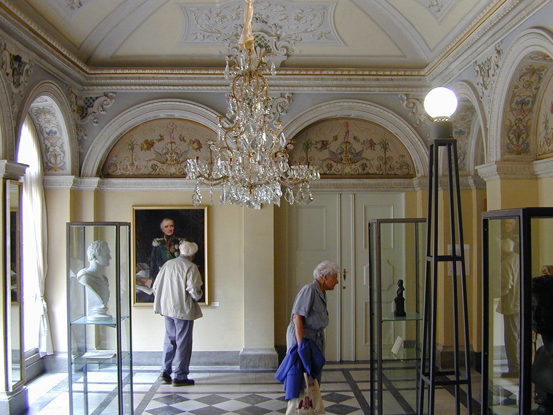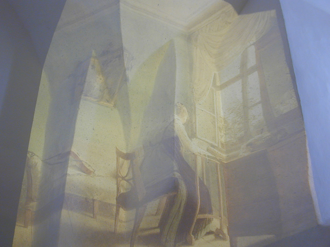 Den Mythos Gestalt werden zu lassen – dafür wurde das Studio des Museums mit Glasplattenwänden verkleidet, die bernsteinfarben hintermalt einen sinnlichen Anklang an das Original erzeugten. Ein Bernsteinkabinett in dem die konservatorisch sehr empfindlichen Originalexponate mit einer UV- und wärmefreien Lichtleit-Fasertechnik in den Vitrinen beleuchtet wurden. Den Blick nach aussen ersetzte eine Spiegelwand die verborgen hinter den breiten Stützen des Museums leuchtende Grossdias reflektierte und die Weite der russischen Landschaft in das kleine Studio transportierte.