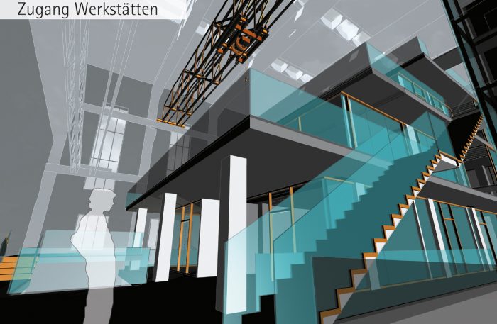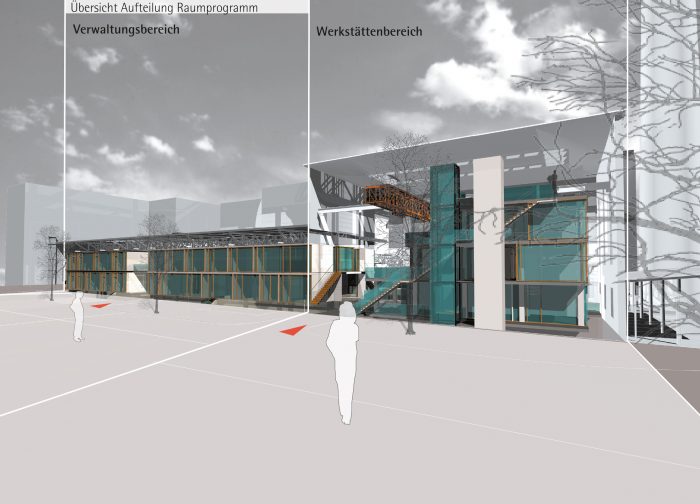 Die beiden Baukörper sollen nicht Teil der Münster prägenden „Kunst im öffentlichen Raum“ darstellen, sondern durch die Minimierung der Formensprache bei gleichzeitigem szenischem Duktus die Entfaltung künstlerischen Schaffens sowohl im Außenraum als auch im Inneren fördern.