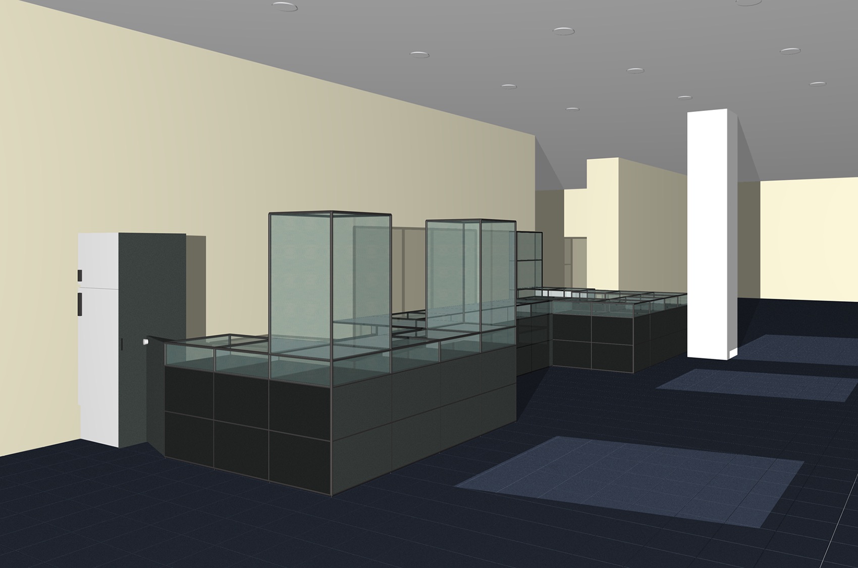 - Exponatträger, bei denen die Ausstellungselemente als beschriftete Plinthen, je nach Notwendigkeit geformt, zur Anwendung kommen