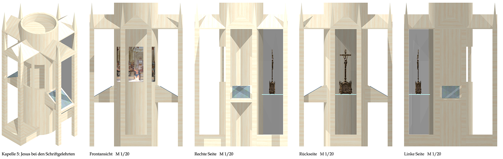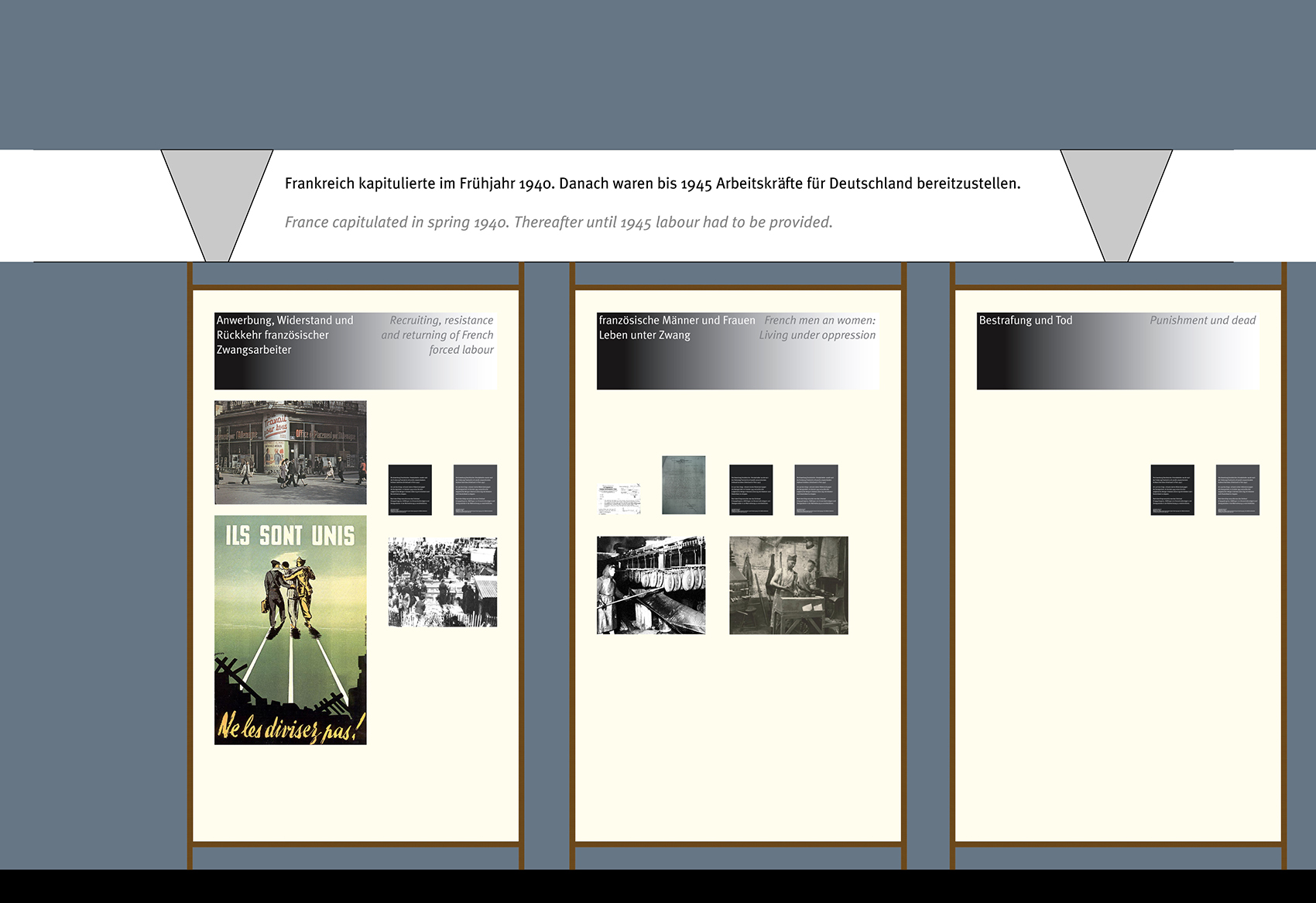Bei dem eingeladenen Wettbewerb lag das Augenmerk darauf, ein zurückhaltend-thematisch gestaltetes Ausstellungsdesign zu entwickeln, das den Franckeschen Geist sowohl in der damaligen als auch in der heutigen Zeit kognitiv und sinnlich erfahrbar macht. Dem Publikum wird so unaufdringlich vermittelt, dass die Ausstellung im Mittelalter beginnt und durch einen chronologisch-thematischen Ablauf ins 20. Jahrhundert hinein führt. Die jeweilige Zeit und die Örtlichkeiten wirken durch die Wandgestaltung in den Raum hinein, wo ein zentrales Möbel Objekte aufnimmt, schriftliche und mediale Ereignisse vermittelt und auch zum Sitzen einlädt. Uns erschien es wichtig, die zeitgenössisch überformten Räume neu zu definieren.