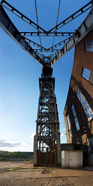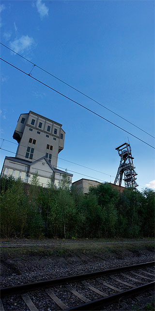 Vertikalpanoramen von stillgelegten Betriebsteilen der Grube Reden, in deren Zechengebäude die Ausstellung seit dem 30. November 2012 läuft.