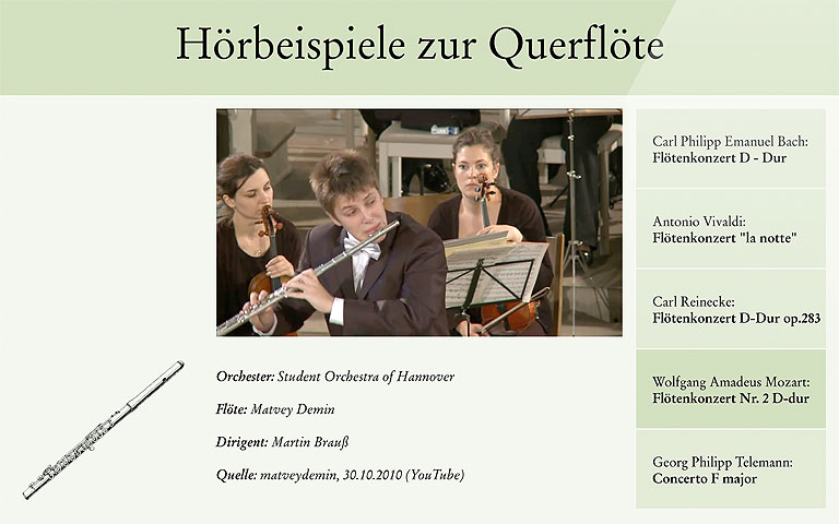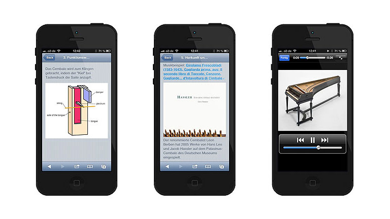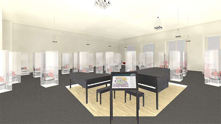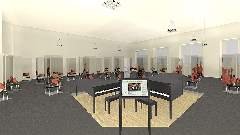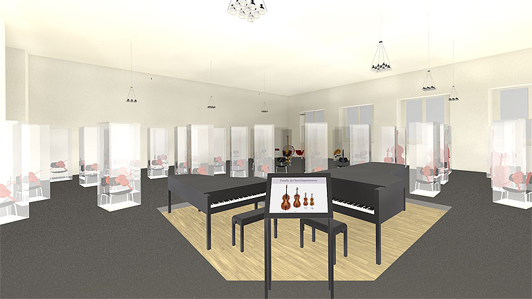 An zweiter Stelle steht die Vermittlung von Hintergrundinformationen wie beispielsweise Klangbeispielen, da ohne diese die ›stummen‹ Instrumente dem breiten Publikum schwer zugänglich sind. Diese mediale Ebene steht den Exponaten in dienender Funktion zur Seite.
