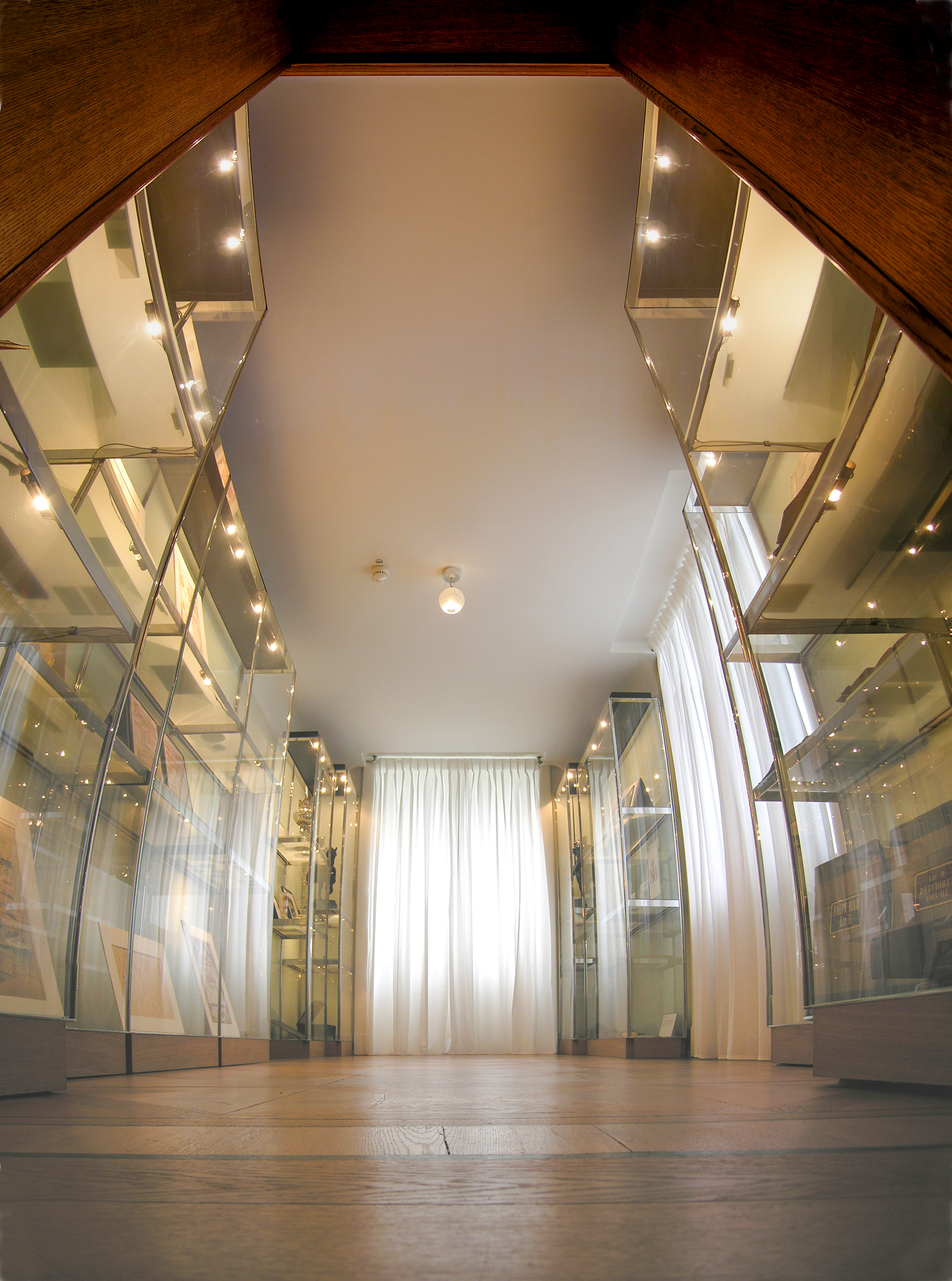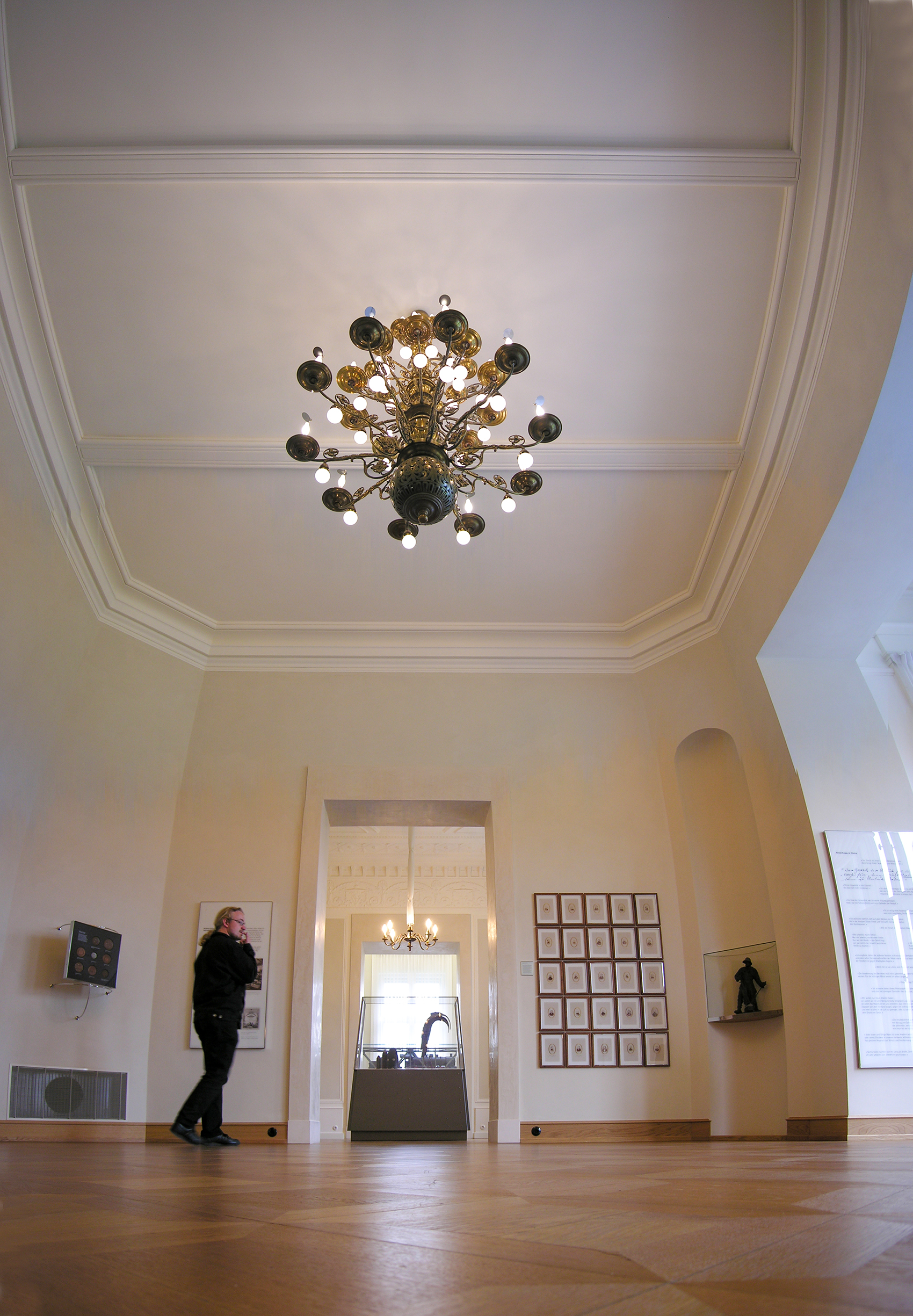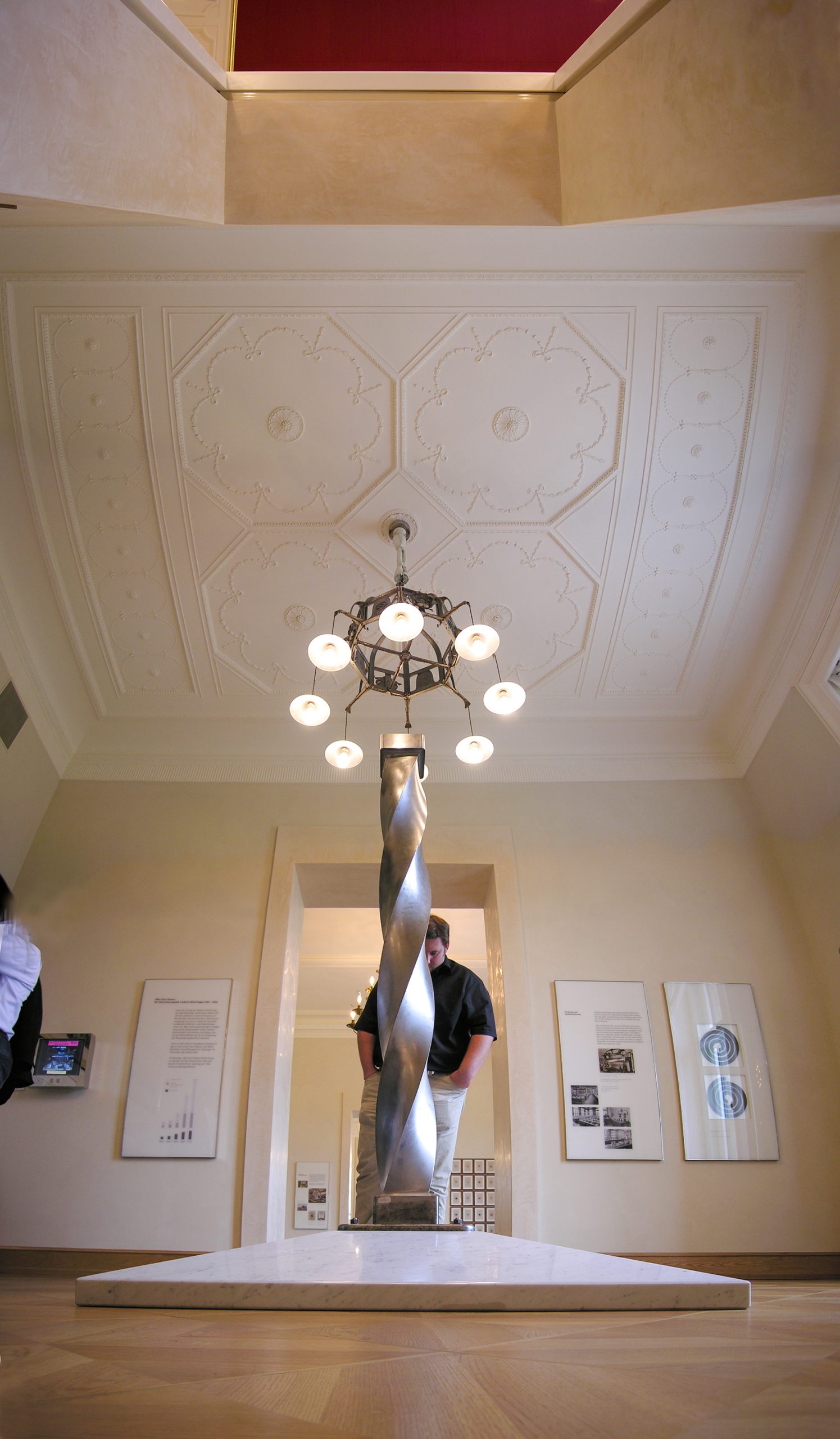 Ein zentrales Moment des 2004 gewonnenen Wettbewerbs zur Neugestaltung der ›Historischen Ausstellung Krupp‹ und der Ausstellung zur Alfried Krupp von Bohlen und Halbach-Stiftung im einstigen Gästehaus der Villa Hügel war der Dialog zwischen natürlichem und künstlichem Licht. Licht blieb auch bei der Realisierung der Historischen Ausstellung Krupp – Dauerausstellung ein zentrales Moment. Die Lichtobjekte sollten an der richtigen Stelle in den einzelnen Räumen die Zeit des jeweiligen Themas aufgreifen. Auf Dachböden und in Kellern der Villa Hügel waren Fragmente vieler Leuchter zu finden, andere konnten neu interpretiert werden. Die meisten Kronleuchter sind mit Niedervolt-Stiftsockellampen ausgestattet; eigens geblasene Kugeln und Kerzen aus teilmattiertem Quarzglas halfen, möglichst viel Licht auf die Wände zu lenken. Sowohl was Einsatz der Energie als auch sachgerechte Beleuchtung und integrales Design betrifft wurden Standards gesetzt.