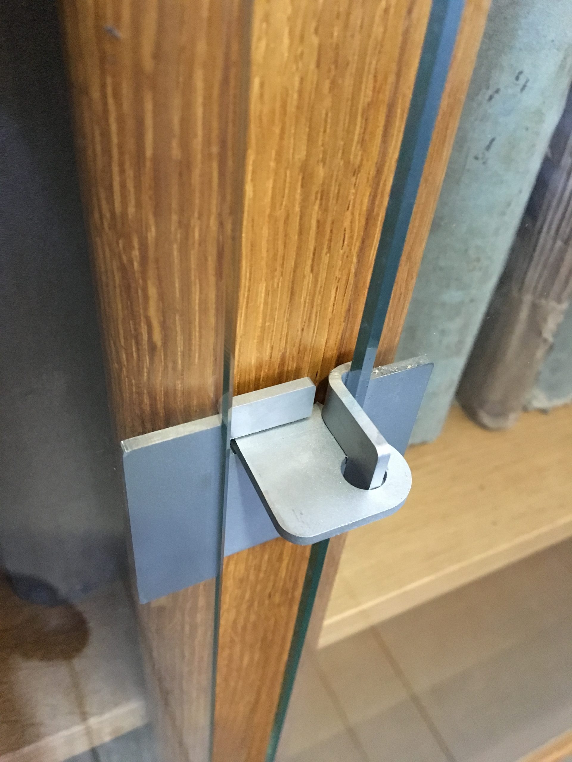 Nach intensiven Diskussionen und einer weiteren Bemusterung im August 2016 (Bilder 2 bis 5) fiel die Entscheidung auf Ganzglastüren, die den unteren Bereich bis auf eine Höhe von 2,50 m vor Zugriff schützen. Die Türen zeichnen sich durch einfache aber innovative Scharniere und Verschlüsse aus, die keine Schweissarbeiten erfordern und preisgünstig herzustellen waren, sich dabei elegant in das Ensemble einfügen.