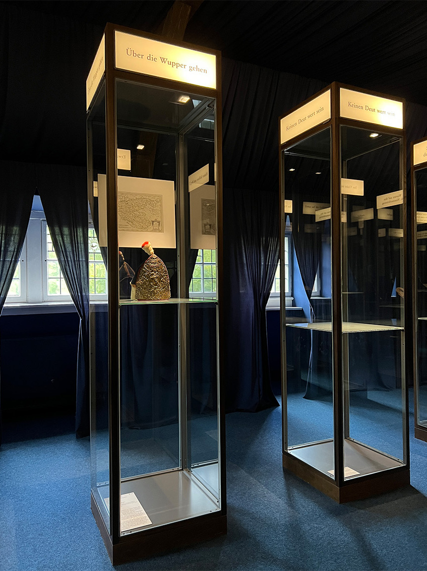 Seit 2019 werteten wir zusammen mit dem Leiter der Museen des Märkischen Kreises, Stephan Sensen, die Dauerausstellung auf Burg Altena im laufenden Betrieb auf. Verschiedene Medien verweben sich dort heute mit der vielfach gewürdigten Szenografie aus dem Jahr 2000. Ein spannender Rundgang durch die Geschichte des märkischen Sauerlands und der Burg lädt ein zur Erkundung oder zur Auffrischung der Erinnerung. Im chronologisch-thematischen Mischverfahren ist hier eine exemplarische kulturhistorischen Ausstellung zu erleben.