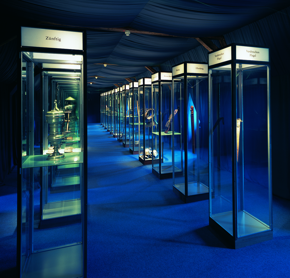 Der Märkische Kreis betraute Stefan Sensen, den jungen Direktor der Museen mit der Neukonzeption der Dauerausstellung, die nicht nur optisch sondern auch thematisch in die Jahre kam. Die Sammlung zeigte sich systematisch und thematisch ohne inneren Zusammenhang. Nun galt es einen riesigen Bogen von der Naturgeschichte mit Mineralien, Metallen und Fossilien über die Urgeschichte bis zu den Menschen von heute zu spannen.Die Abfolge inszenierte Jürg Steiner in mehreren, zum Teil weit auseinander liegenden und zum Teil unmusealen Räumen, wobei ein Hauptaugenmerk auf einem schlüssigen Rundgang lag. Wir entfernten alles Überflüssige und fügten lediglich die notwendigen Objektträger und -einhausungen sowie das alles entscheidende Licht hinzu. Dabei gelang es auch, mehrere Räume in überraschende Erscheinung zu transformieren – sowohl durch Freilegen von Wänden als auch durch Verhüllen unpassender späterer Einbauten. Fragmente der Burg vereinen sich zu einem dramaturgischen Parcours.