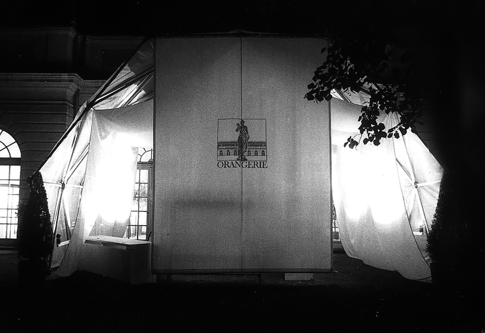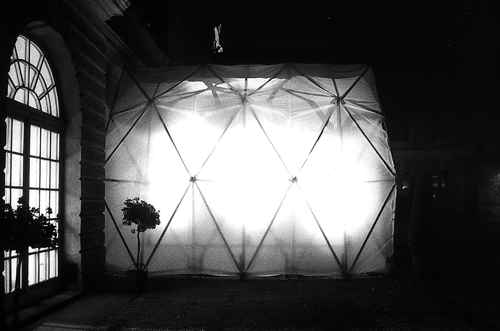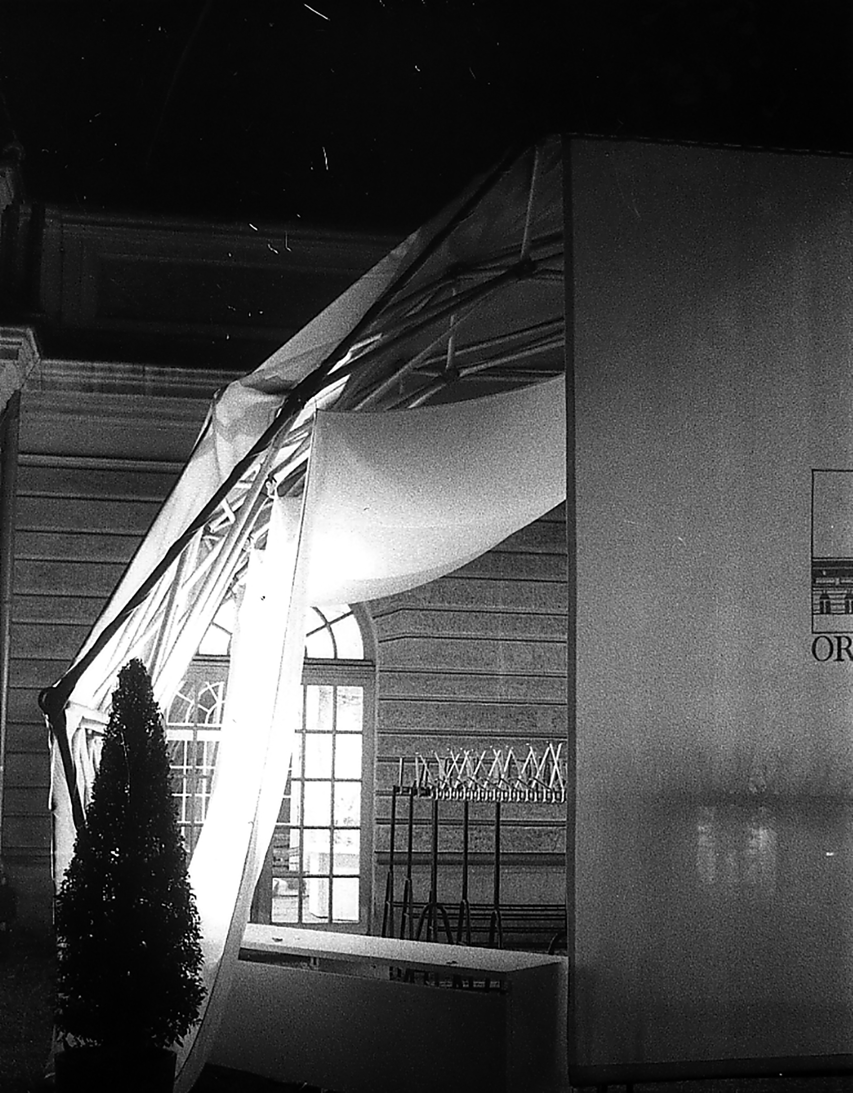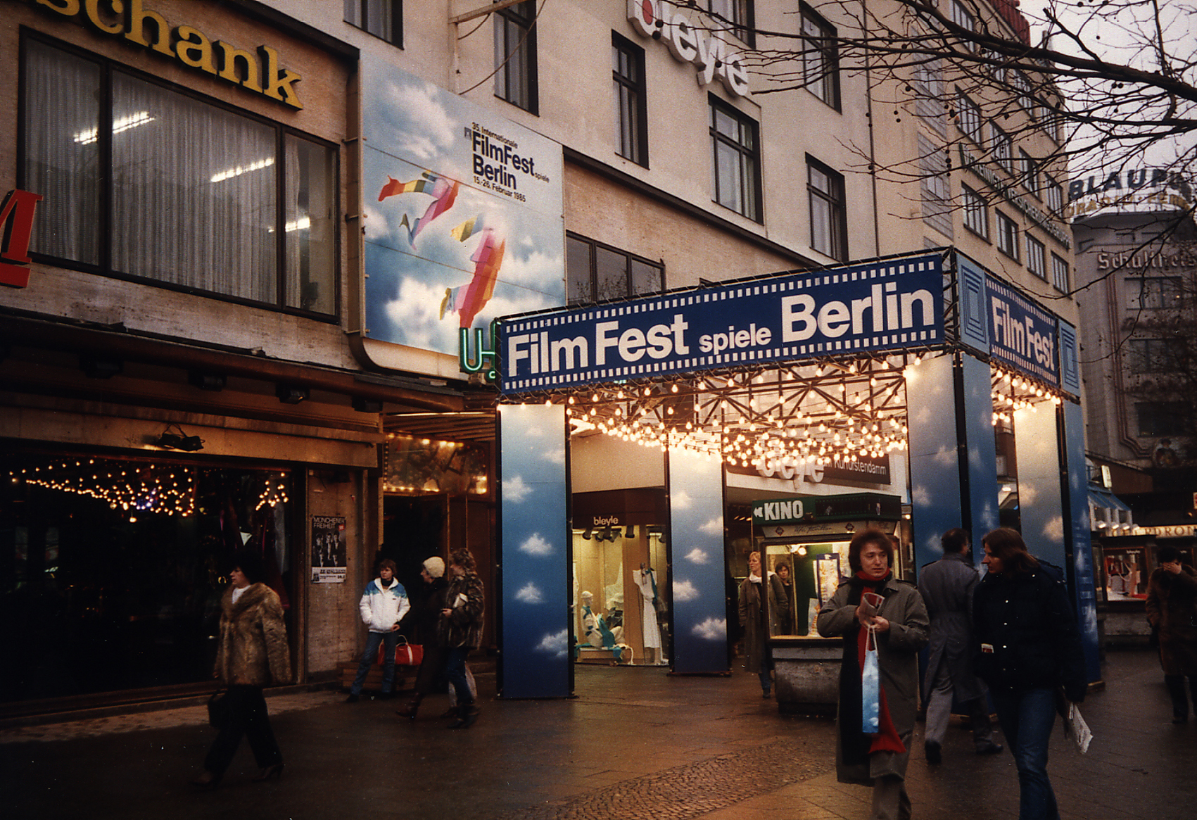 In jedem neuen Jahr wurde eine Verbesserung der Ausstattung des Kinovorbaus in Angriff genommen. An dem Foto fällt auf, dass die künstliche Festbeleuchtung trotz des Tageslichts einen eindeutigen Anziehungspunkt markiert. Beim trüben Licht eines Februartages konnte sich das künstliche Licht um so strahlender abheben. Die warme Lichtfarbe der klaren Glühlampen mit einer Leistung von je 40 Watt verwandelte den Ort vor dem Kino – normalerweise nicht besonders ansprechend und ungünstig ›möbliert‹ – in einen Treffpunkt.