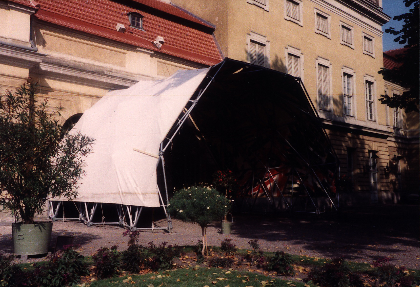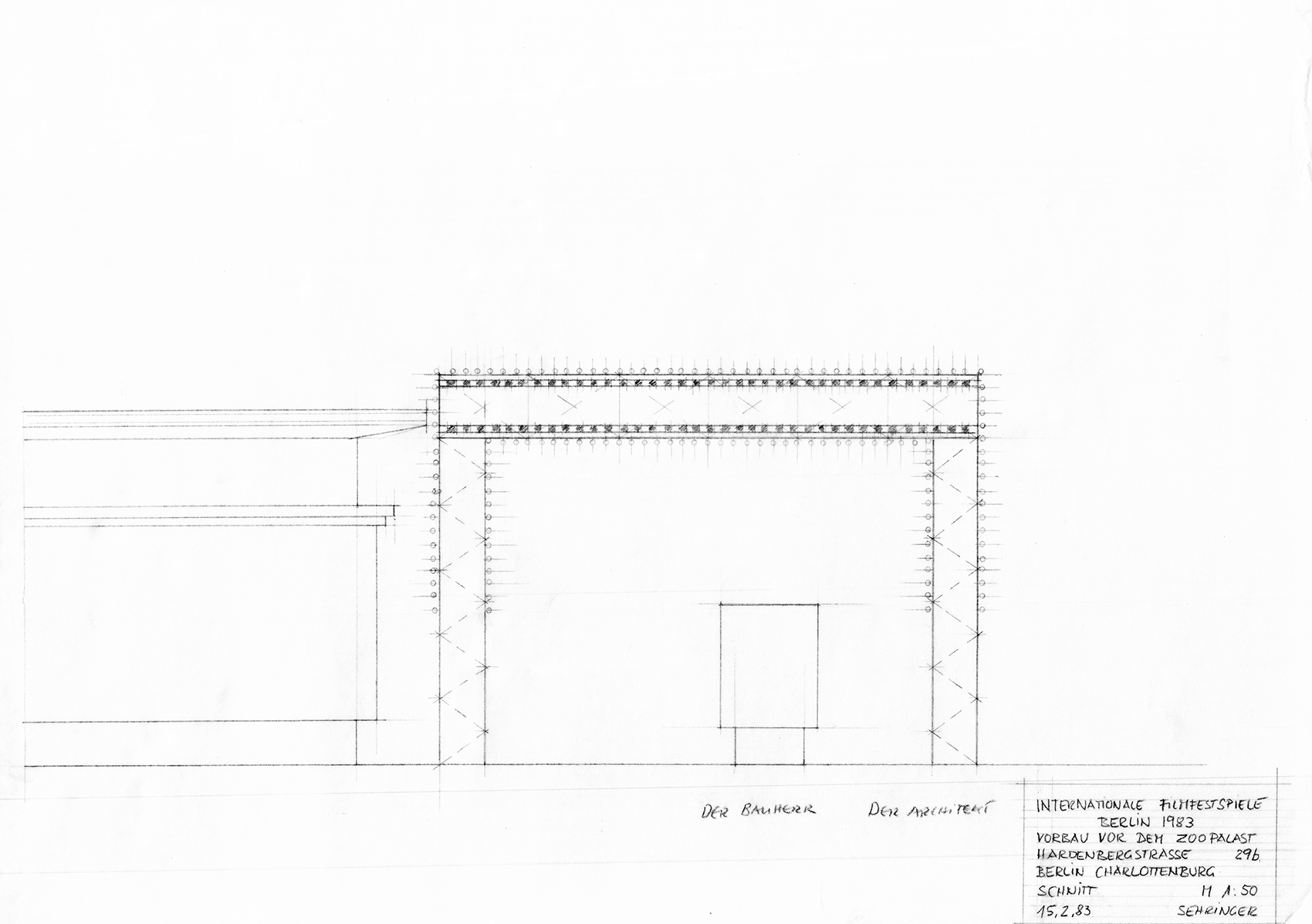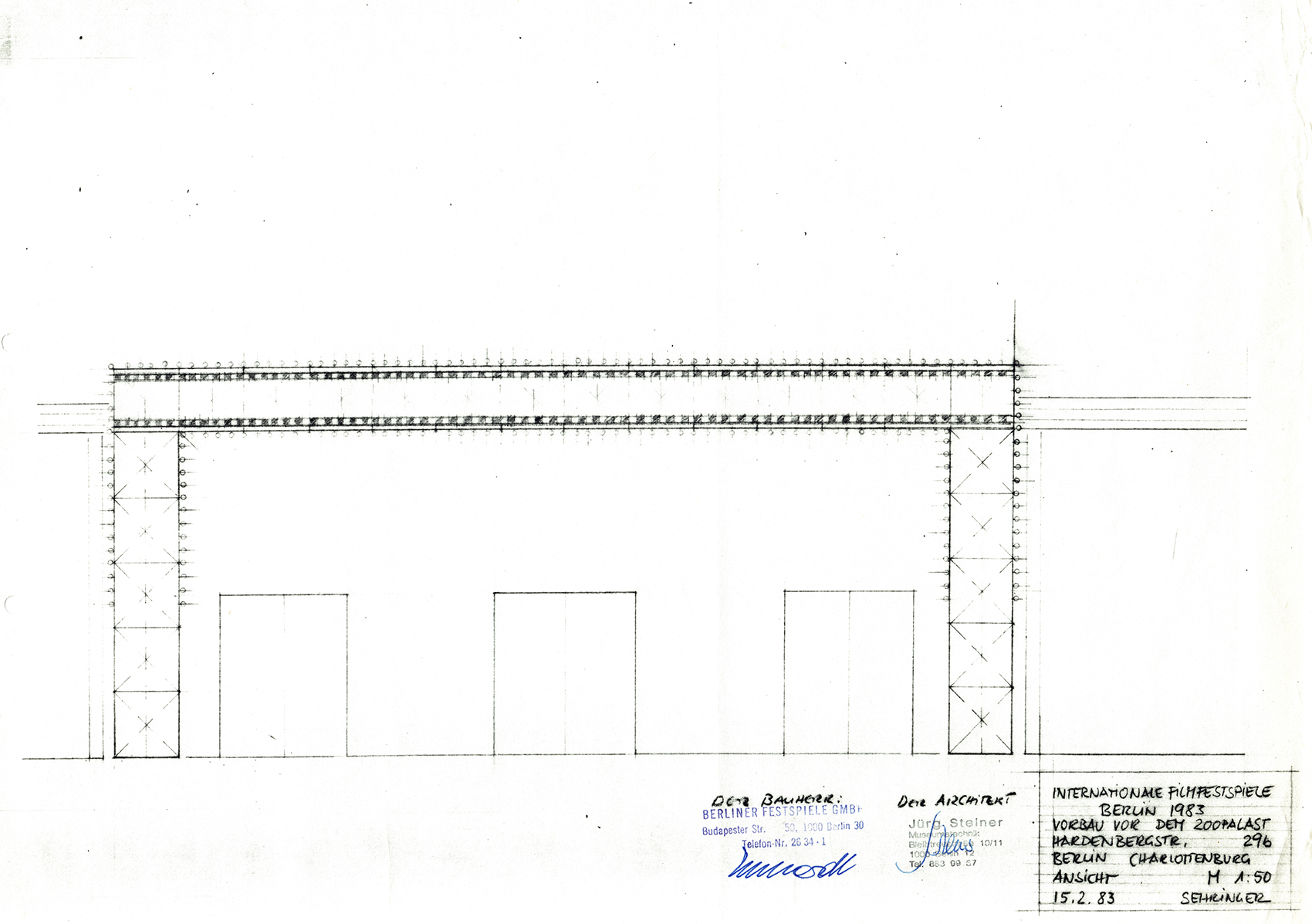 Im dritten Jahr der Vorbaugestaltung für die Internationalen Filmfestspiele setzte sich ein abgestimmtes Konzept auch für die nächsten Jahre durch: Der Vorbau sollte sich als festliches Zeichen des Filmtheaters präsentieren und der Präsenz der Festspiele Ausdruck verleihen. Wie im Jahr zuvor wurde das optische Thema Filmband als oberer Abschluss des Gerüstes eingesetzt.