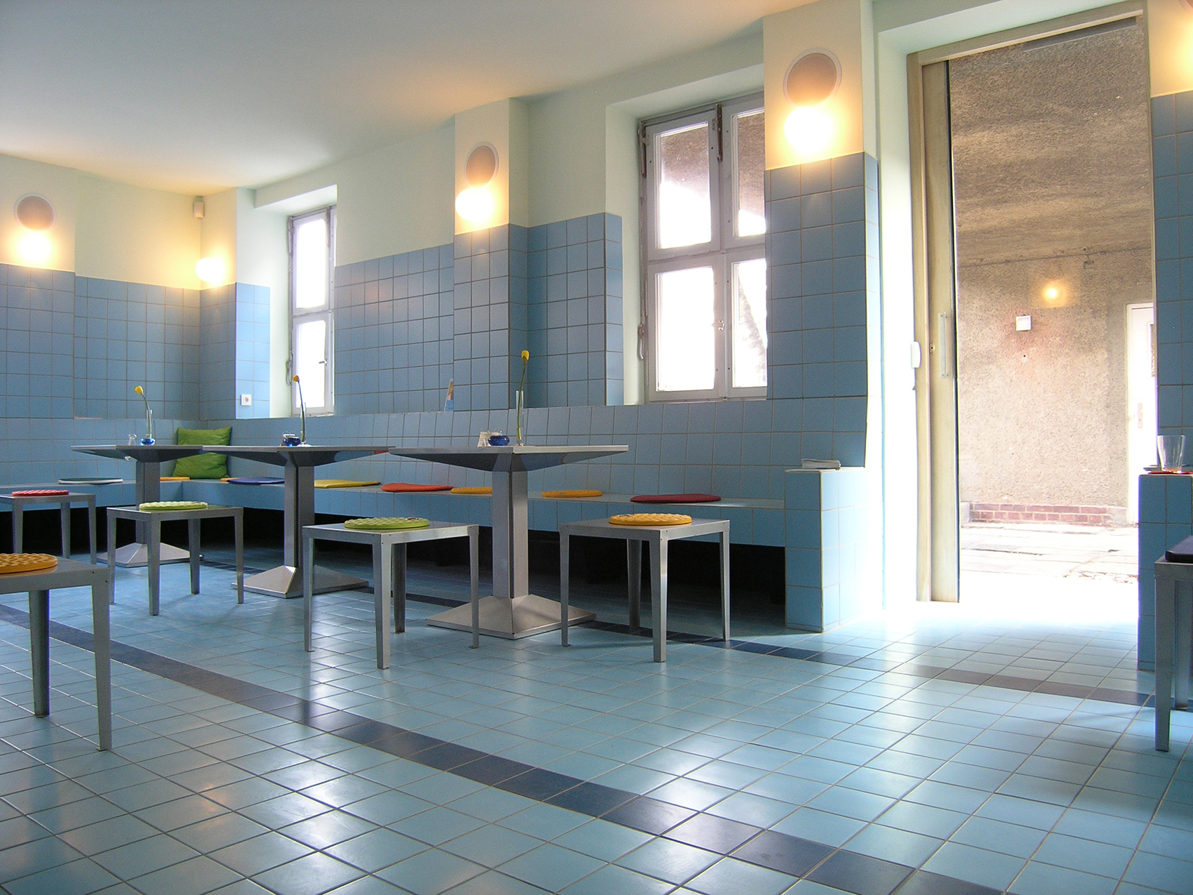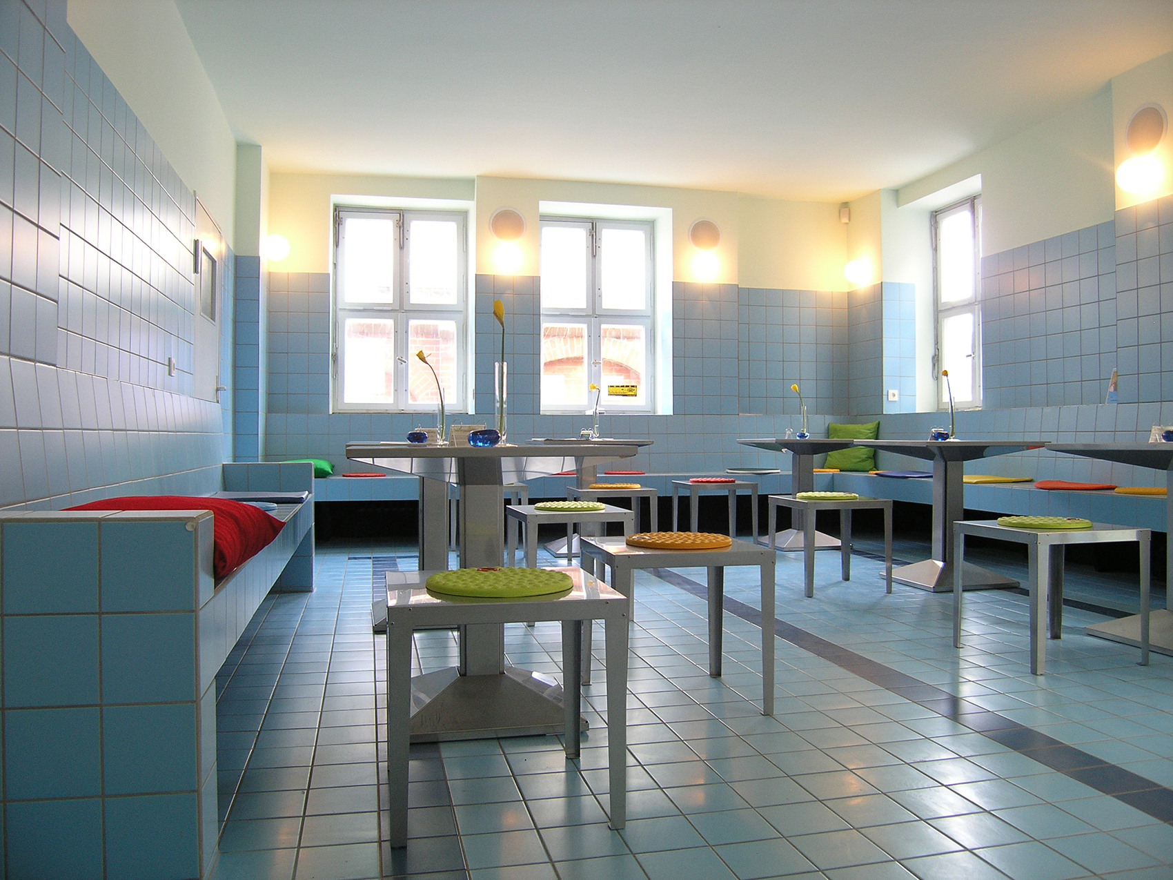 Die Anordnung der Gruppenräume und des Filmvorführraumes ermöglicht die Zusammenschaltung aller drei Räume. Bei geteilter Nutzung wird die Leinwand für Projektionen von der Decke herabgelassen.