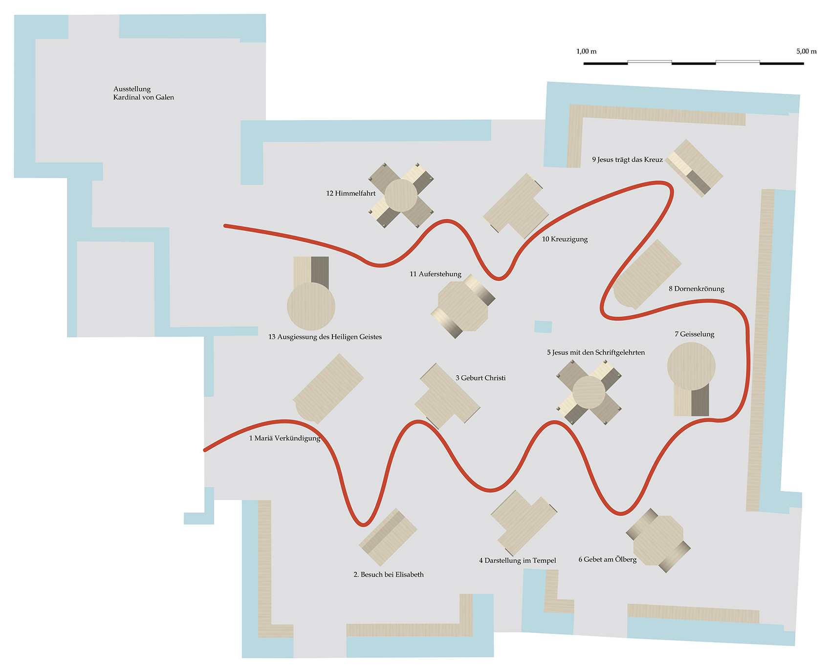 Folgende Bestandteile bilden die Ausstellung mit Hilfe der Bodentafeln: