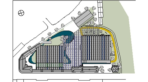 Der Entwurf greift unmittelbar die bauliche Situation des Wettbewerbsgrundstücks auf. Das Konzept verzichtet auf einen großflächigen Abriss, genauso wie auf spektakuläre Zeichen und formale Eingriffe jenseits einer sachlichen Funktion.