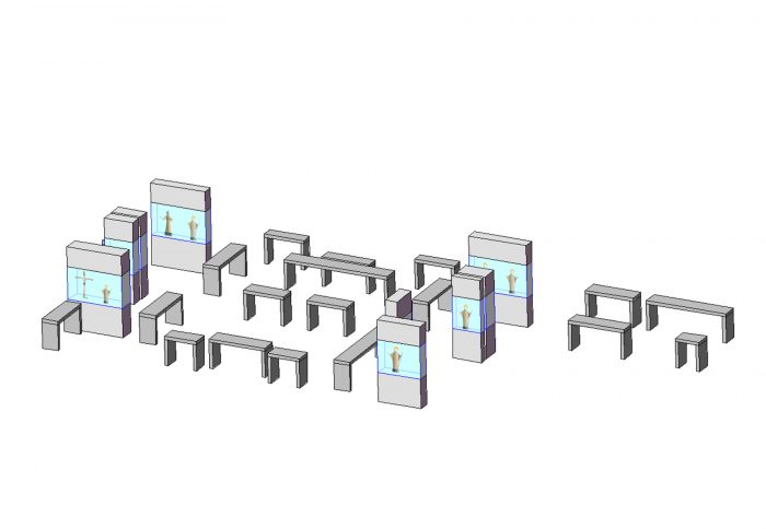Die Wände und Eingangsbereiche der Ausstellungsräume werden durch eine weiche textile Struktur bespannt. Der barockisierende Faltenwurf weist insbesondere auf die musealisierung der sakralen Kunst hin. Die Farbgebung soll in einem sinnlichen Rotton gehalten sein.