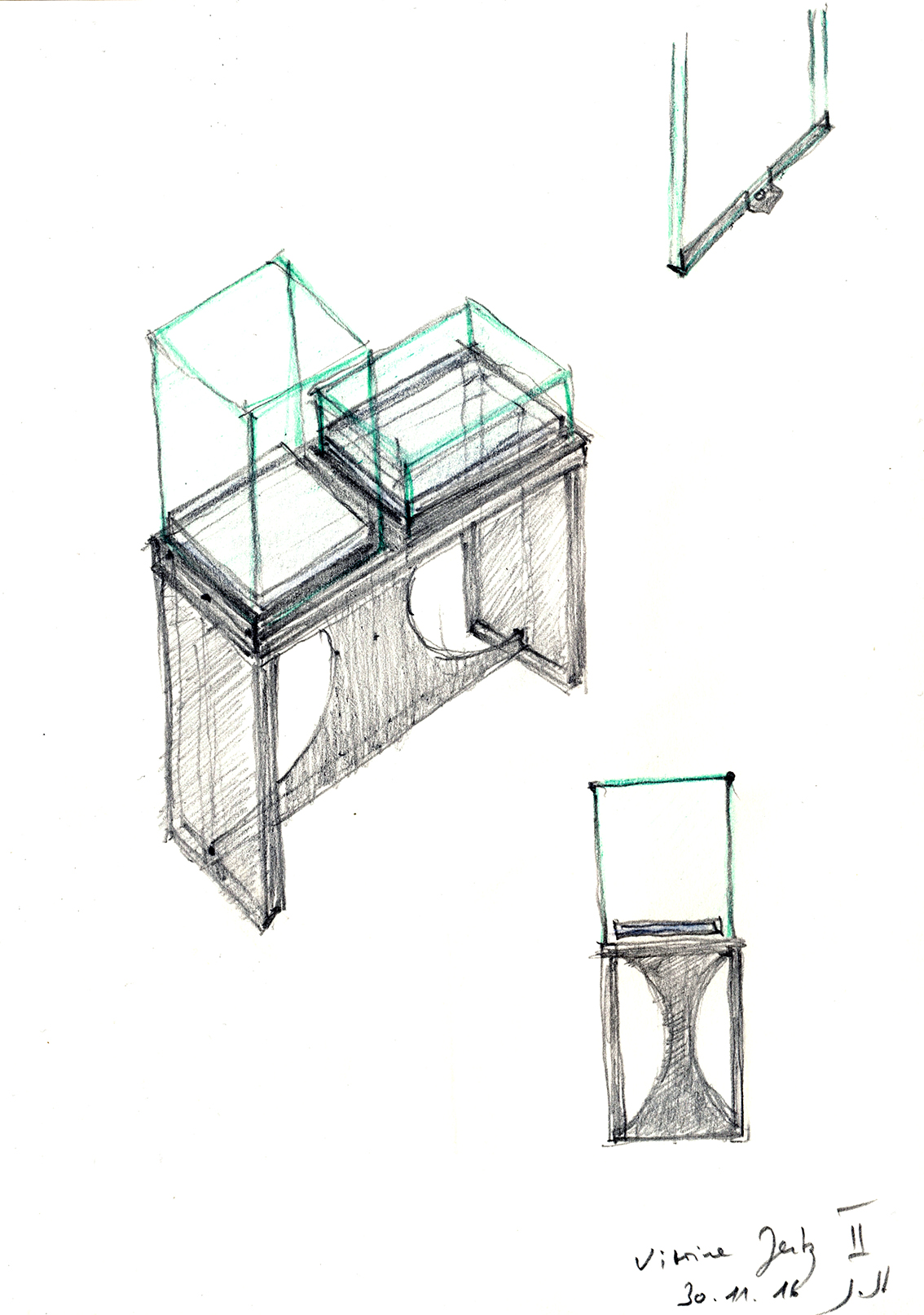 ›Die Skizze ist die Sprache des Architekten‹ wird dem Architekten Gustav Peichl, (1928–2019), in den Mund gelegt. Gerade die Vorbereitung komplexer Projekte, wie beispielsweise einer Ausstellung, leben von einer zügigen, nonverbalen Kommunikation.