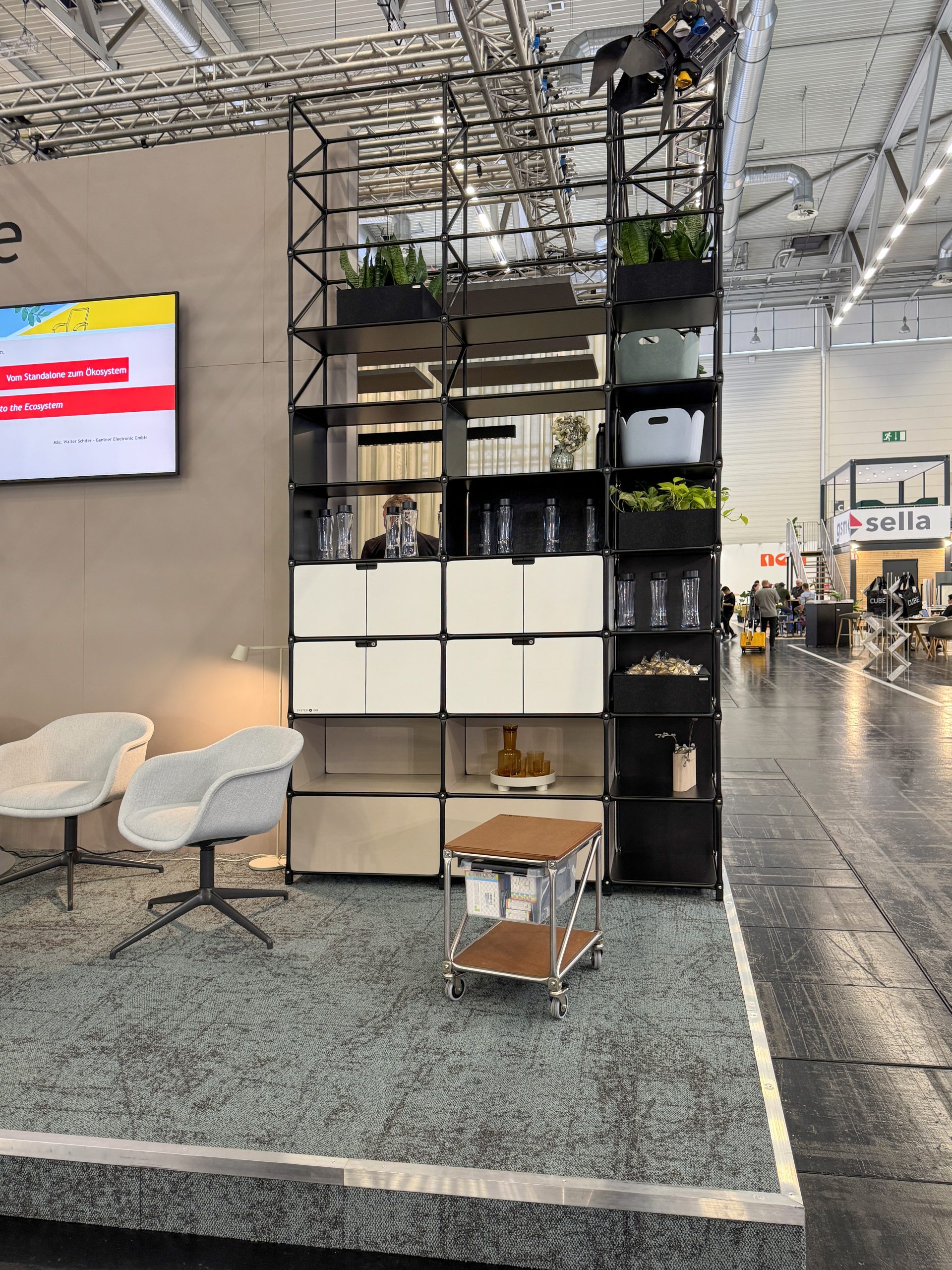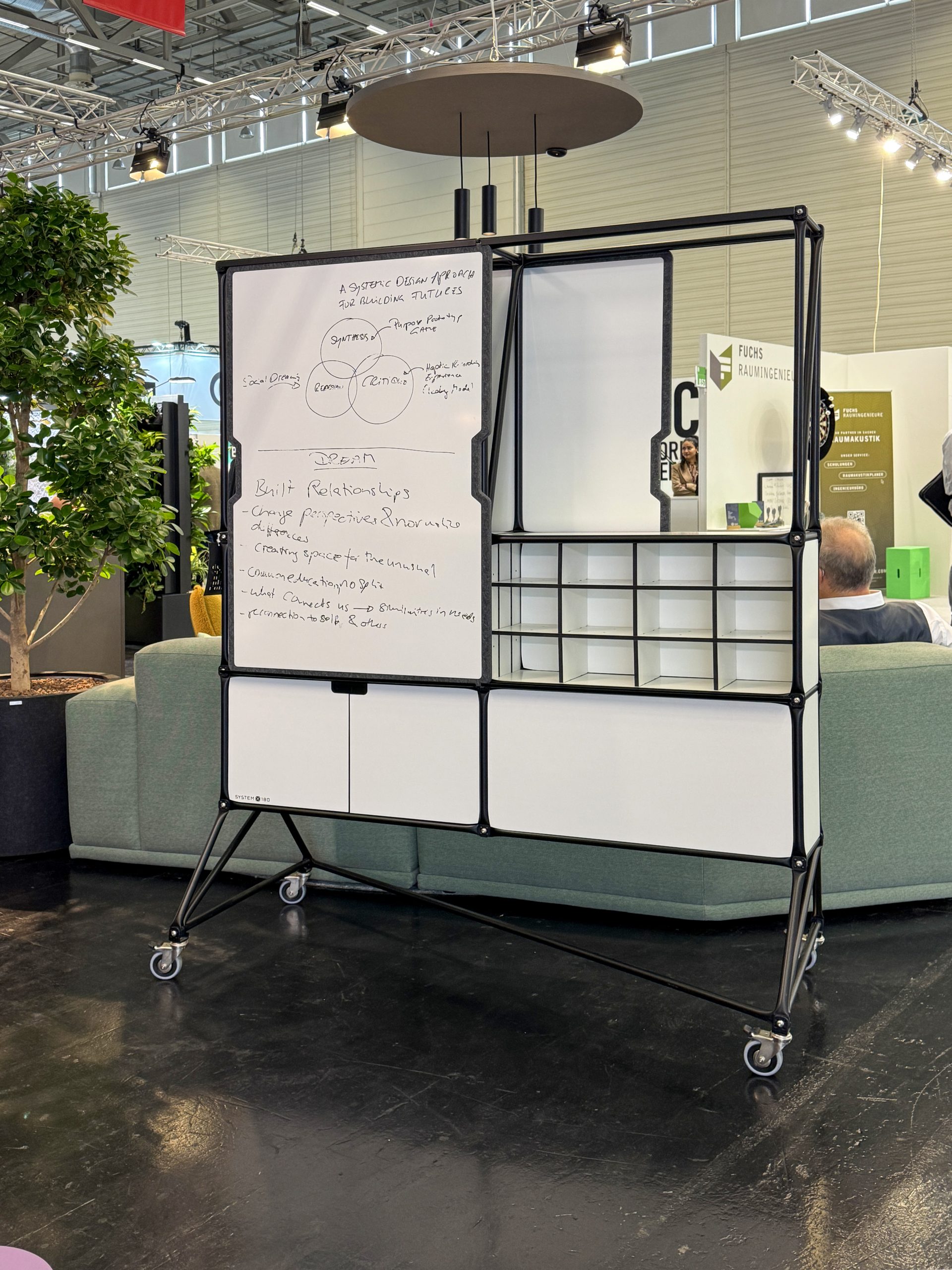 An mehreren Stellen inner- und außerhalb der Messe trat System 180® in diesem Herbst in Köln auf. Im Rahmen der #OfficeXperience wurde die transparente, modulare Arbeitswelt mit Möbeln unseres flexiblen, ikonischen Möbelbausystems vorgestellt. Die System 180 GmbH arbeitet verstärkt mit innovativen Partnern zusammen, deren Ideen und Produkte die Raumkonzepte ergänzen. Unten ist die nachgesprochene Präsentation Jürg Steiners vom 23. Oktober 2024 anwählbar. Die ersten drei Bilder aus der Design Post zeigen erprobte Entwürfe mit neuem Plattenmaterial Fibrapan aus Säge- und Nebenprodukten heimischen Holzes und Bioleim. Die letzten drei Bilder sind von der Office Experience.