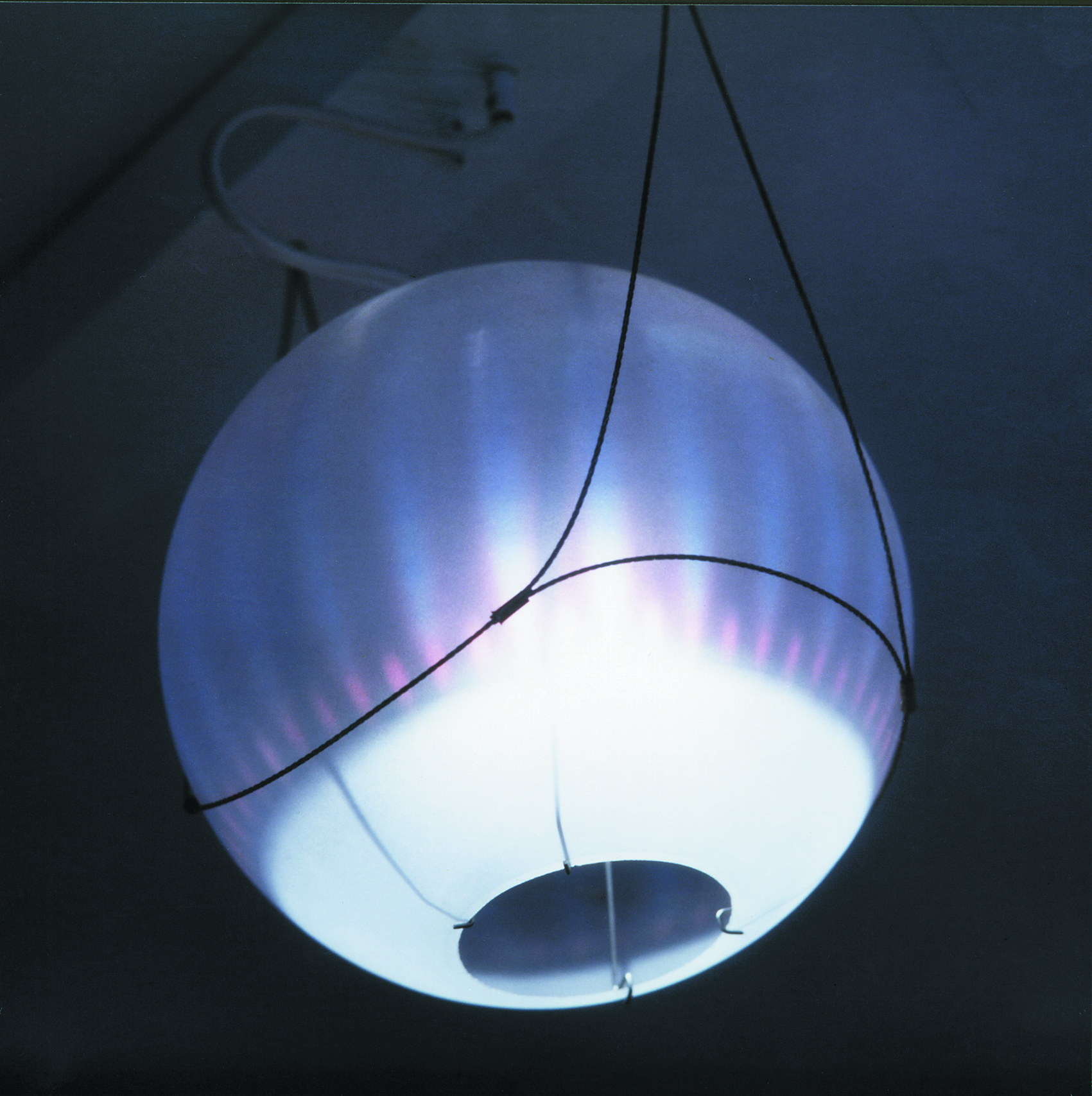 Die ursprüngliche Leuchte wurde in Klarglas, innenmattiert hergestellt. Spätere Varianten sind auch von außen mattiert worden. Die ersten drei Bilder wurden 1994 im Gasometer Oberhausen aufgenommen, die beiden weiteren zeigen drei Eierleuchten bei Dr. Helga Korff, das nächste zeigt den Empfangsraum der Physiotherapiepraxis Britta Beckendorf, die beiden letzten wurden im Museum System 180® aufgenommen.