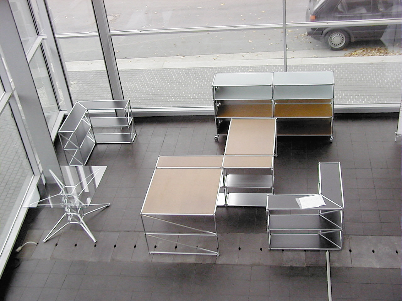 Für Anwendungen, bei denen das tragende Skelett einer Konstruktion aus System 180 mit nicht kreisförmigen Profilflächen von Vorteil wäre, wurde das Systemholz entwickelt. Dieses beruht auf einem kreuzförmigen Profil, das durch Fälzung aller Ecken entsteht. So sind plattenförmige Materialien wie Glas, Sperrholz oder Dibond sicher und ohne Luft- und Lichtschlitz formschlüssig einzubringen. Das Holzsystem hat den weiteren Vorteil, dass es am Boden Lasten flächig abträgt und keine gesonderten Füsse benötigt. Nach einer ersten Vitrine bringt dieses zweite Projekt eine Vereinfachung in der Herstellung der einzelnen Stäbe mit, da das Stahlprofil für die Verbindung an den Knoten nicht mehr durchläuft.