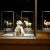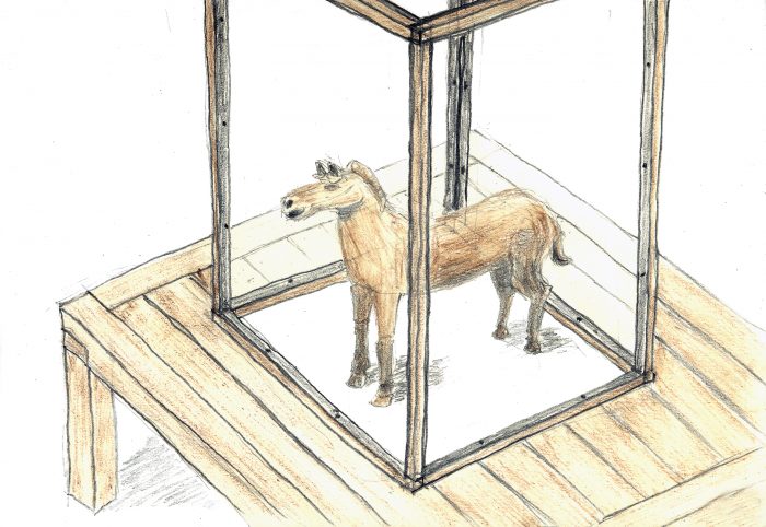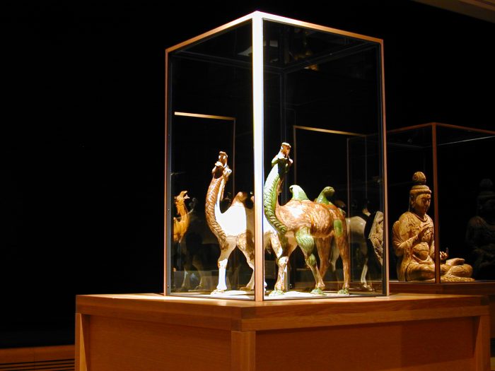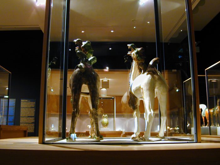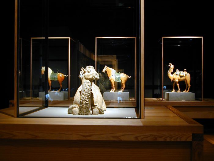 Den Mythos Gestalt werden zu lassen – dafür wurde das Studio des Museums mit Glasplattenwänden verkleidet, die bernsteinfarben hintermalt einen sinnlichen Anklang an das Original erzeugten. Ein Bernsteinkabinett in dem die konservatorisch sehr empfindlichen Originalexponate mit einer UV- und wärmefreien Lichtleit-Fasertechnik in den Vitrinen beleuchtet wurden. Den Blick nach aussen ersetzte eine Spiegelwand die verborgen hinter den breiten Stützen des Museums leuchtende Grossdias reflektierte und die Weite der russischen Landschaft in das kleine Studio transportierte.