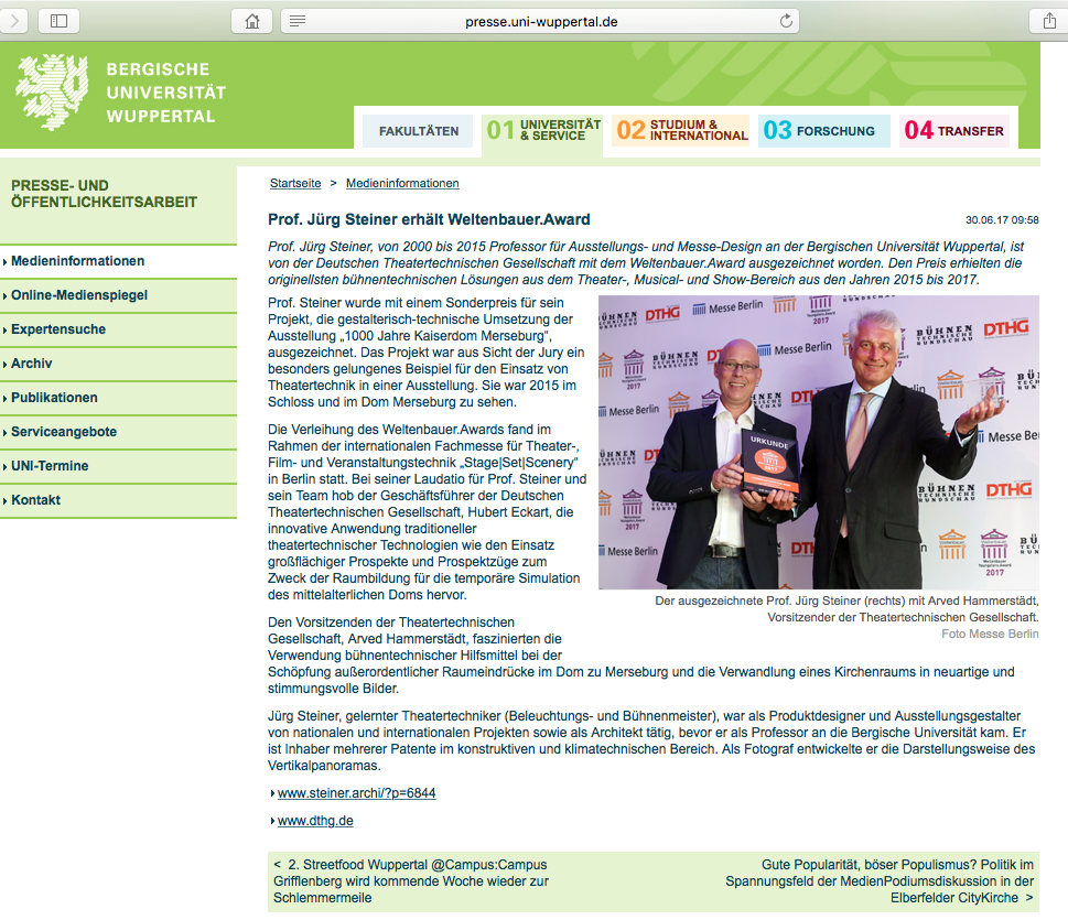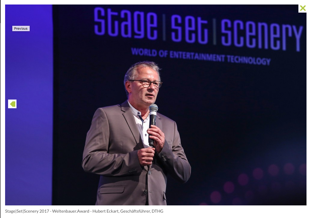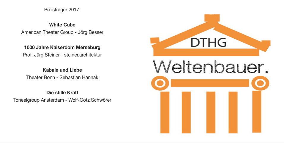 Am 20. Juni 2017 wurde im Rahmen der Messe stage|set|scenery (www.stage-set-scenery.de), veranstaltet von der Messe Berlin und der Deutschen Theatertechnischen Gesellschaft in Berlin nach 2015 zum zweiten Mal der Weltenbauer.Award verliehen. Ausgezeichnet wurden die vier kreativsten bühnentechnischen Lösungen aus der Summe der Einreichungen in Entwurf und Umsetzung.
