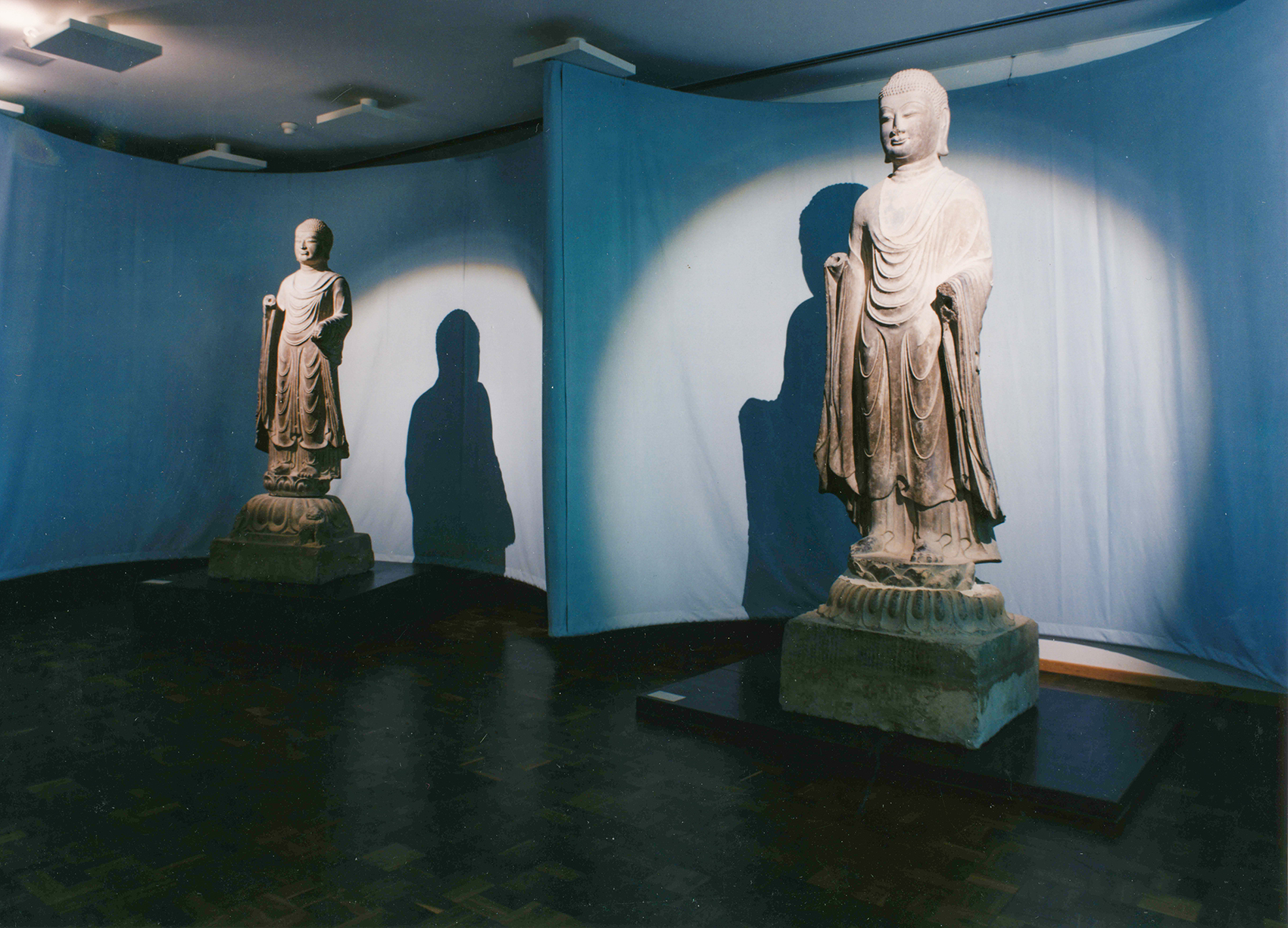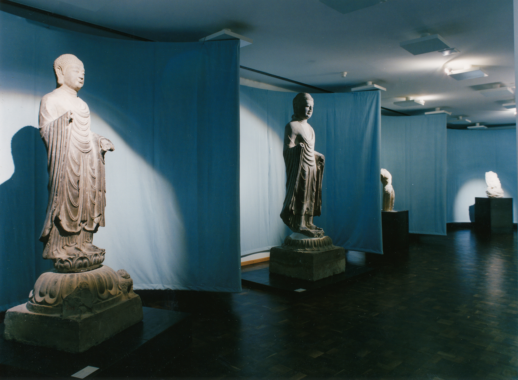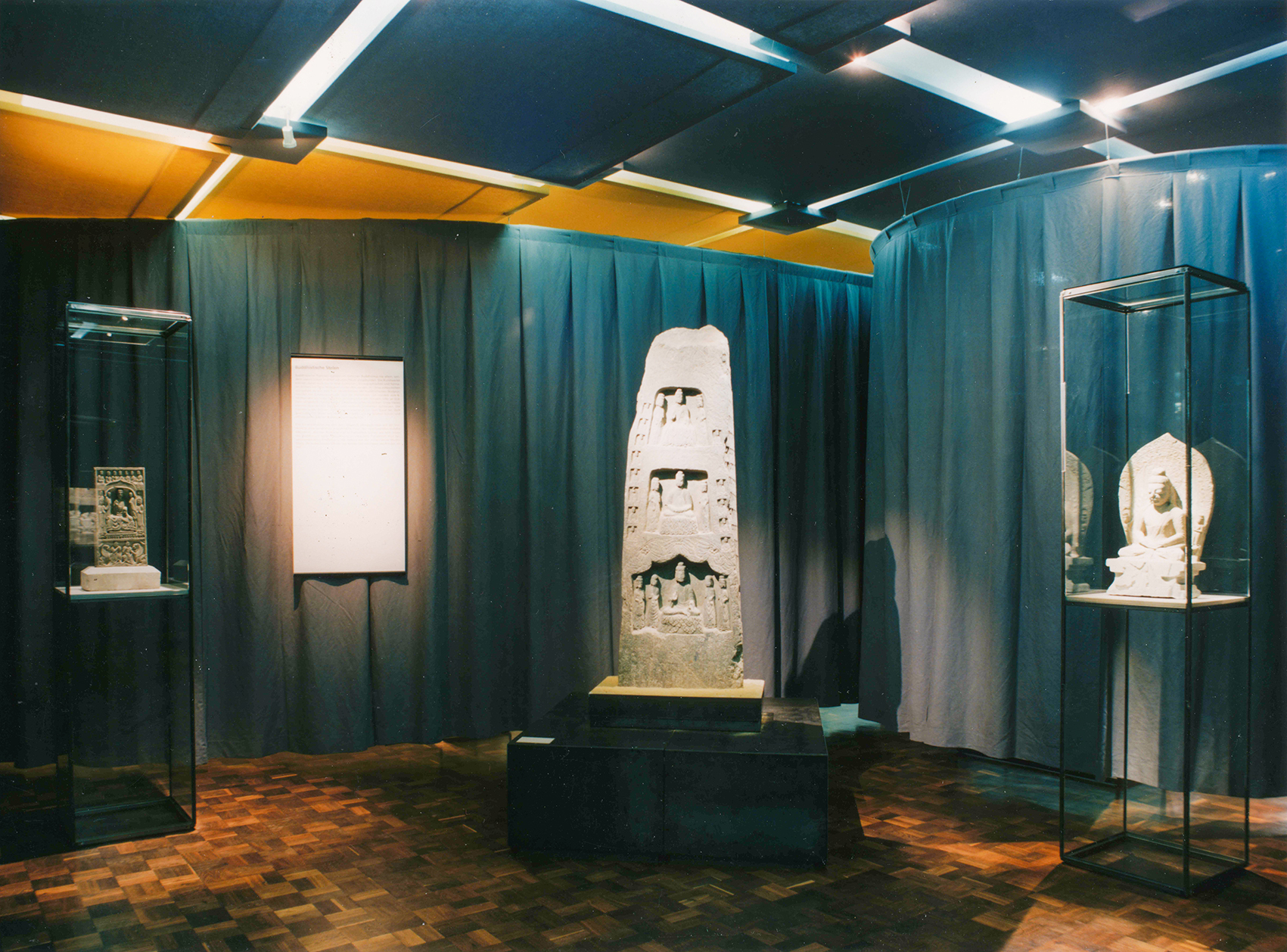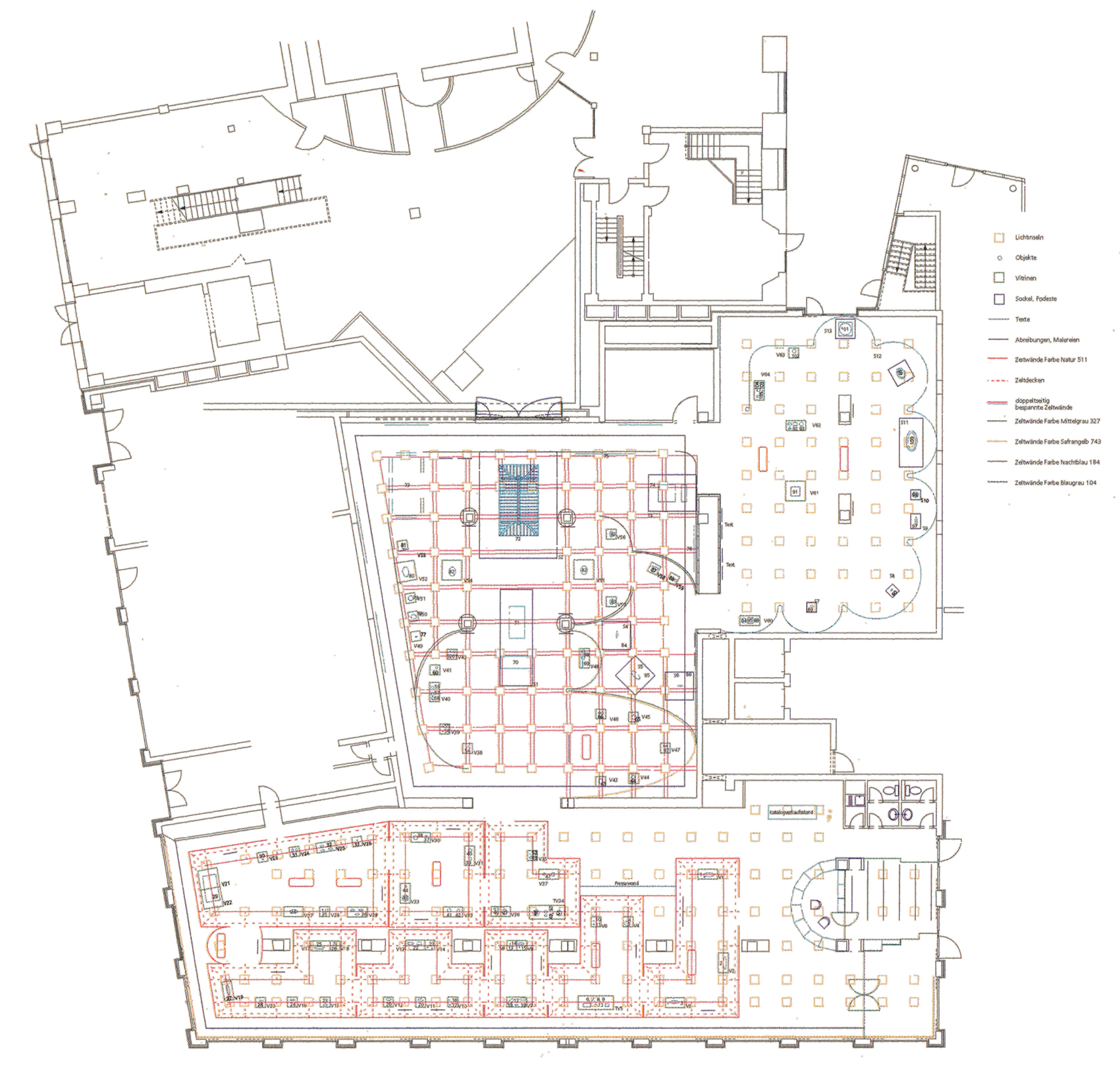 Inspiriert vom Motiv Seidenstraße, wurden die Einführungsbereiche als zeltartig unterteilte Räume gestaltet. Hier fanden Skulpturen der Tang-Zeit im eigens für das Museum konstruierten modularen Vitrinensystem Platz. Das Publikum suchte gleichsam im Labyrinth der Zeltlandschaft seinen eigenen Weg zu den Grabstätten.