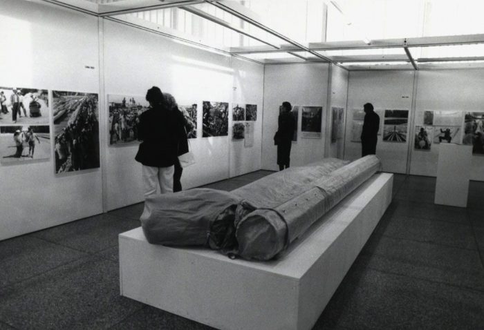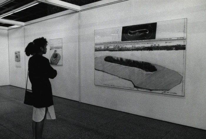 Christo legte 1983 temporär Kunststoffkrägen um mehrere Inseln in der Bucht von Miami. Wann immer Christo seine vielbeachteten Arbeiten im Aussenraum verwirklicht, werden sie so minutiös und künstlerisch hochstehend dokumentiert, dass diese Zeugnisse in renommierten Kunsttempeln ausgestellt werden. Die Berliner Schau – verglaste Rahmen wurden an Stellwänden befestigt – organisierte der Fotograf Wolfgang Volz selbst.Jürg Steiner entwickelte ein Beleuchtungssystem, das für gleichmässiges, spiegelfreies Licht sorgte. Zwischen Aluminiumträger wurden freistrahlende Leuchtsstofflampen installiert; der steile Einfallswinkel des Lichts verhinderte Reflexionen.