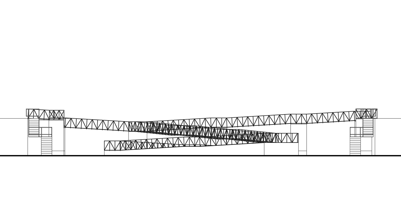 Die Rampenanlage besteht aus modularen vorfabrizierten Komponenten, die vorort nur noch zusammengeschraubt werden mussten, was einen zügigen und sauberen Aufbau ermöglichte. Das Geländer der Rampe aus System 180 Elementen wurde als ebenes Stabtragwerk ausgeführt. Eine statische Berechnung und dynamische Analyse dieser neuartigen Konstruktion erfolgte durch Prof. Yuri Petryna, Technische Universität Berlin. Die Gehfläche bilden Stahlkassetten, deren Oberfläche durch Sandstrahlen zusätzlich aufgeraut wurde. Die Lagerung der Rampenteile erfolgt auf unterschiedlich hohen Podesten aus abgekanteten Stahlblechkassetten, die einen flächigen Lastabtrag in den Bestandsboden ermöglichen. Dadurch konnten bauliche Eingriffe in den Bestand unterbleiben. Außerdem wurden die mit elliptischen Öffnungen versehenen Podeste auch mit Ausstellungsinhalten bespielt, wie beispielweise als Vitrine oder Hörstation.