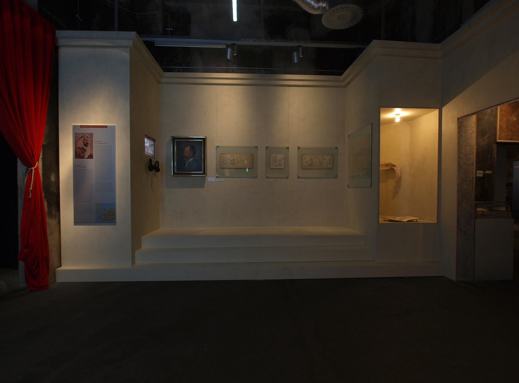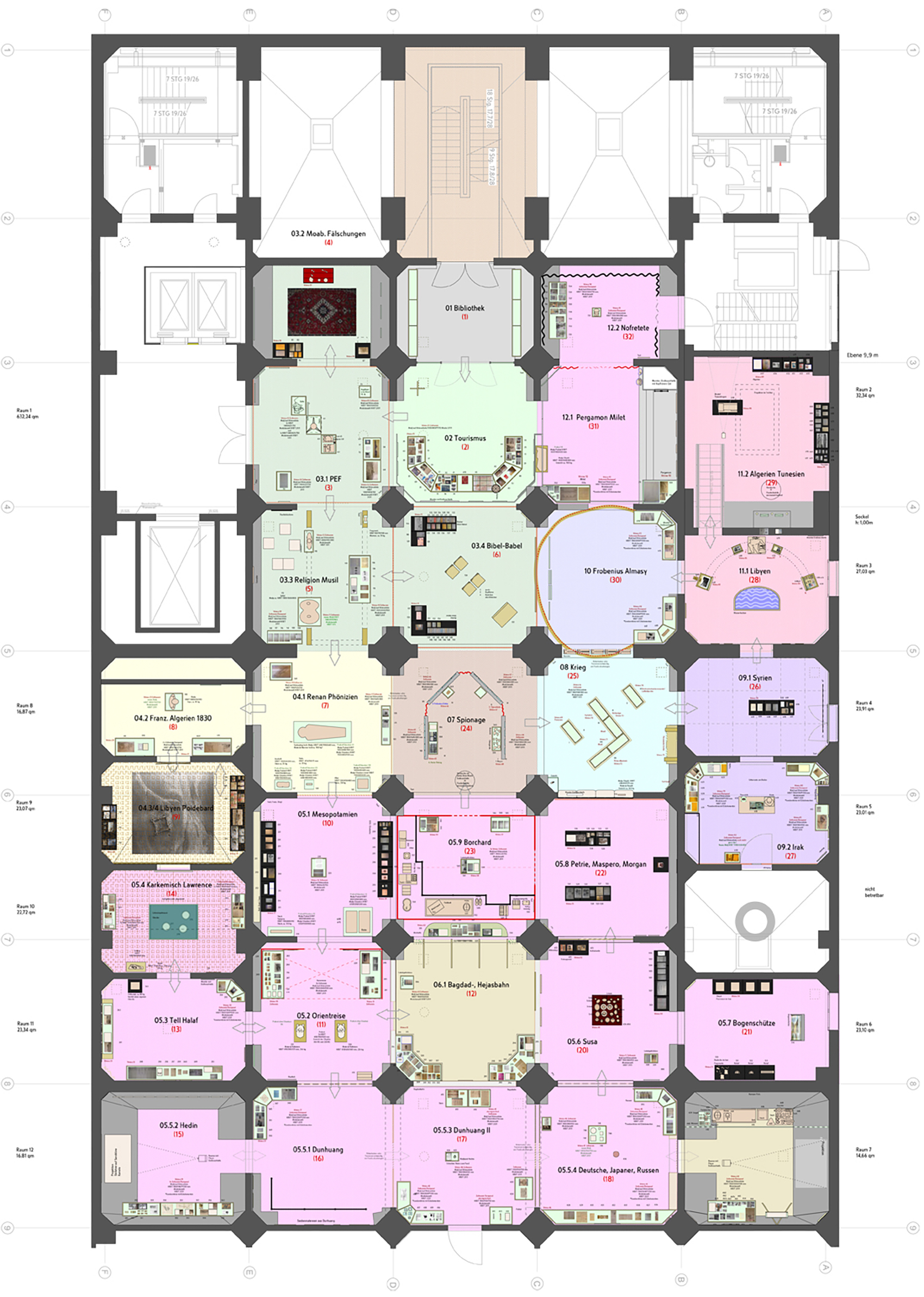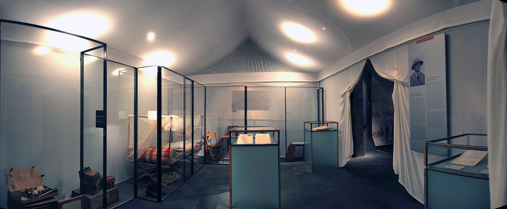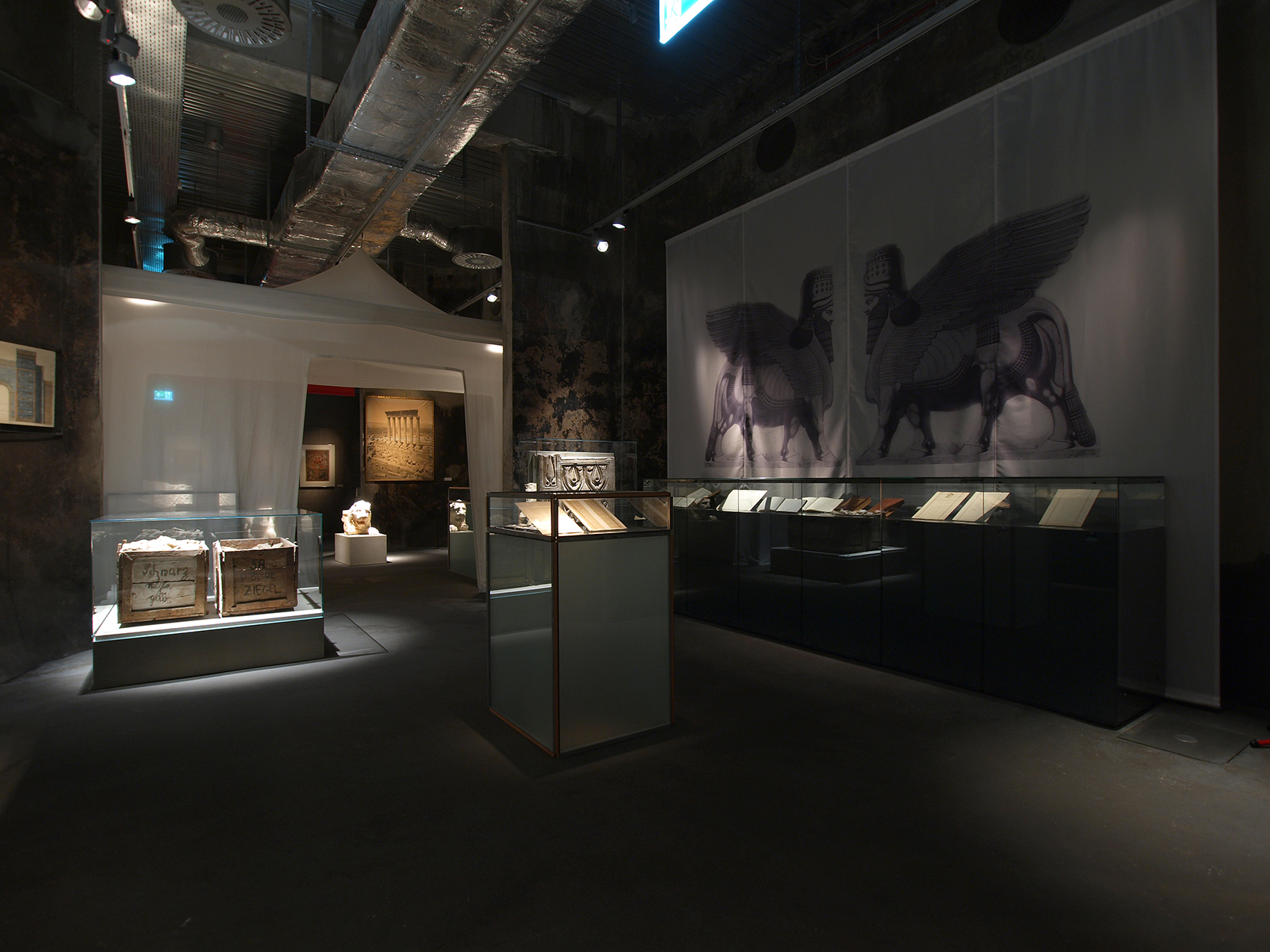 Charlotte Trümpler kuratierte die Schau, die Interaktionen zwischen Archäologie, Politik, Spionage und Krieg aufzeigte, als die europäischen Mächte in Nordafrika, im Nahen Osten und in Zentralasien ihre Interessen manifestierten und ihre Museen und Sammlungen füllten. Dem Thema folgend sind 32 fragmentarische Szenenbilder entstanden, ähnlich wie in unserem ersten Entwurf, die dem Publikum unaufdringlich helfen sich auf das jeweilige Thema und die Objektwelt einzustimmen. Es entstand eine kurzweilige Passage, bei der man zu Hause – in der Bibliothek – abgeholt und zum Reisebüro geführt wird, um dann erstklassige Leihgaben und Unerwartetes sehen zu können, wie den Vertrag zur Akquisition der Nofretete in Ägypten, oder die Welten weniger bekannter Archäologen.