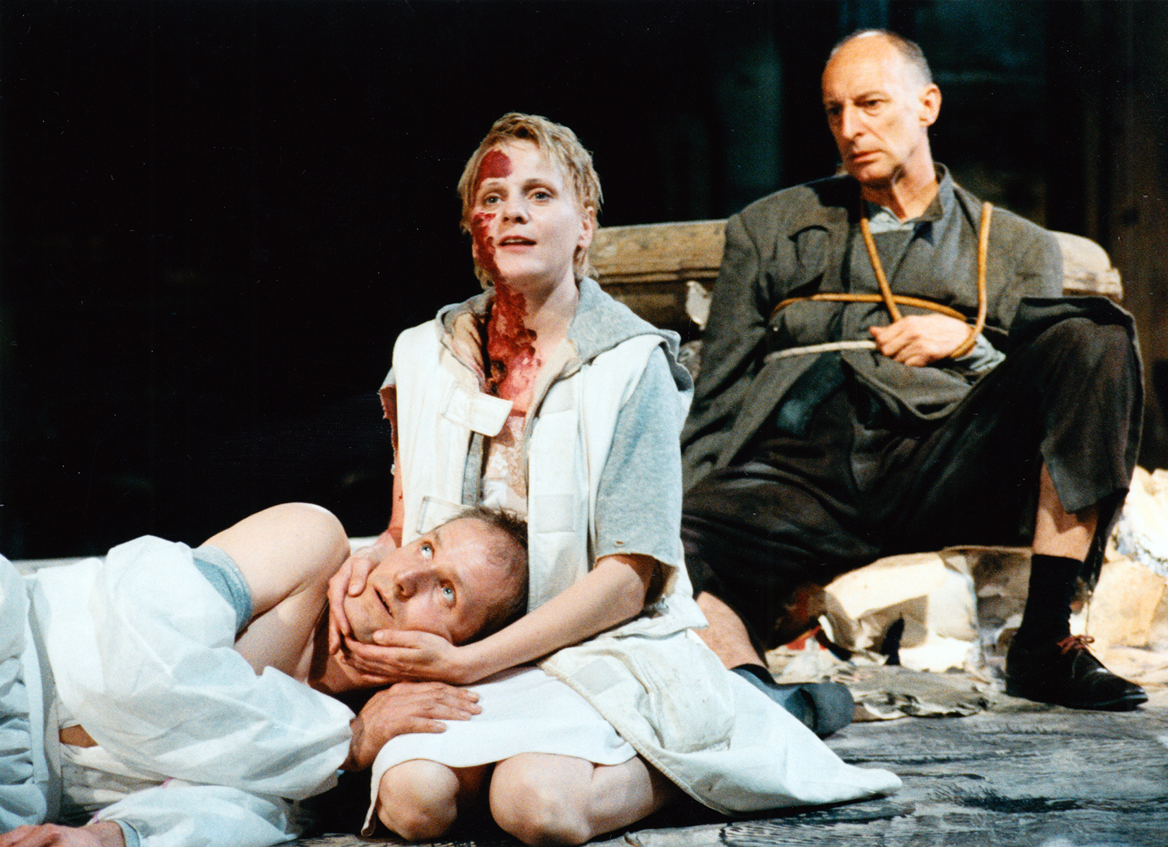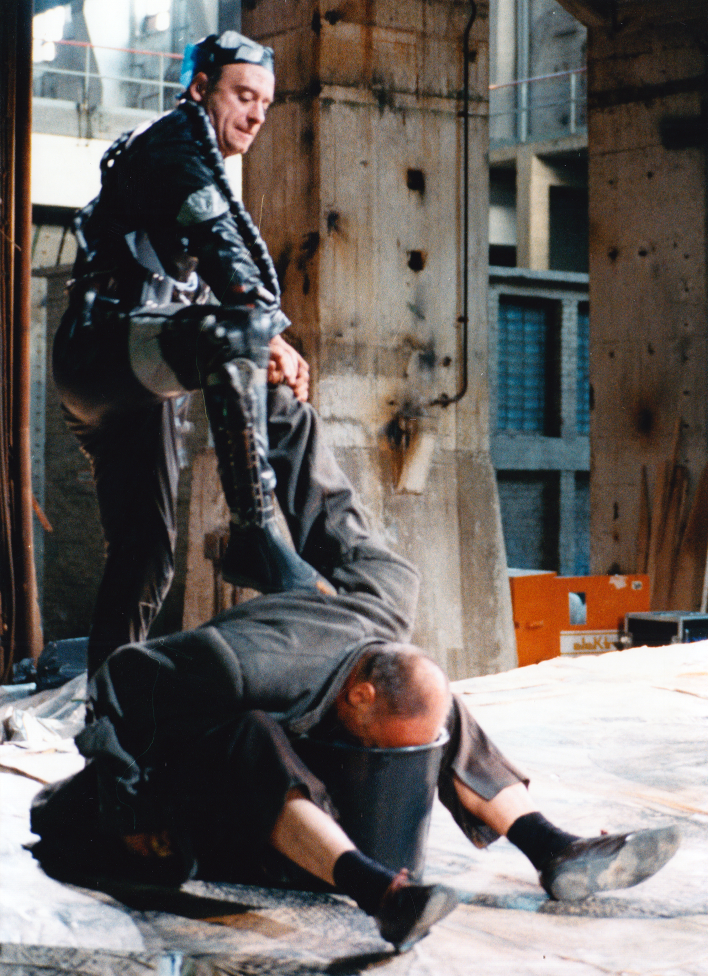 Beklemmend arbeitete Henning Rühles Inszenierung die Verlorenheit und hemmungslose Gewalt von Überlebenden nach einem Atomunfall heraus. Mit behutsamen Eingriffen machte das Bild von Jürg Steiner das Erdgeschoss als szenischen Raum nutzbar. Aus dem eingebauten ›Totenfloß‹ ragte als ›Steuerrad‹ ein Schieber der stillgelegten Wasserhaltung heraus. Die Theateraufführung fand parallel unserer kulturhistorischen Ausstellung unter strom – Energie, Chemie und Alltag in Sachsen-Anhalt 1890 bis 1990 statt.