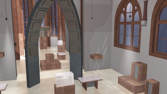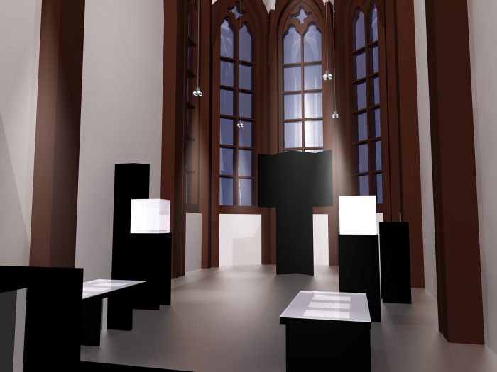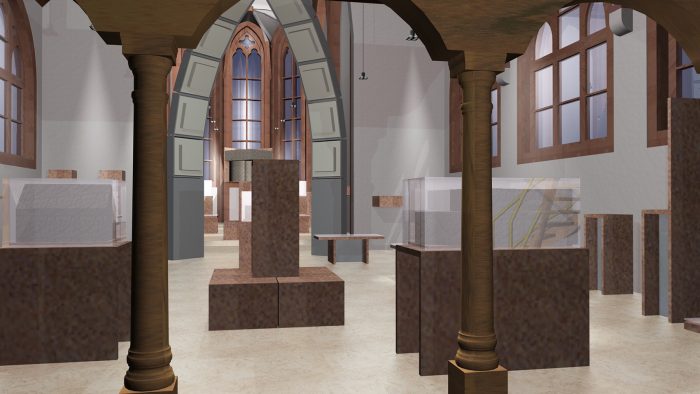 Originale, Modelle und zu Originalen gewordene Gipsabformungen laden zu einem spannenden Rundgang in die Marienkirche ein, die für die Ausstellung würdig überarbeitet wird. Der Visualisierung ist daran gelegen, die Proportionen – überragt von einem wuchtigen Bogen mit Abgüssen einer Reimser Archivolte – nachvollziehbar zu machen.
