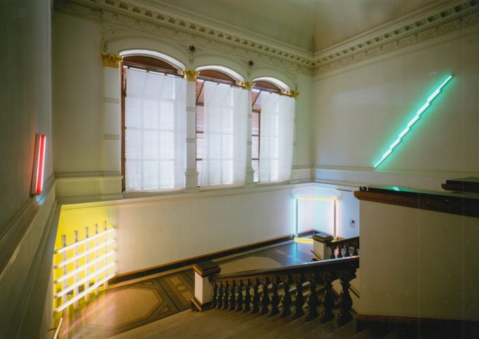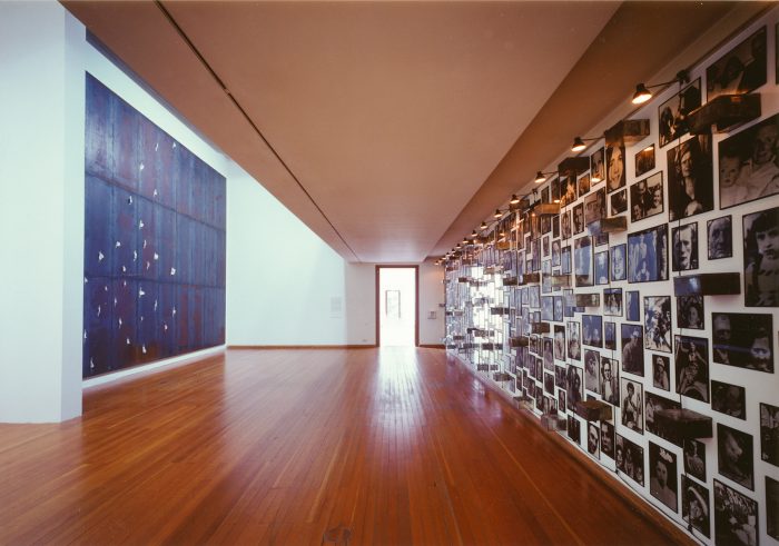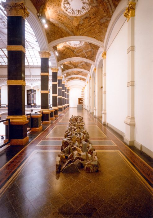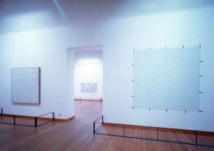 Für diese große Kunstausstellung, gemeinsam vom Guggenheim Museum New York, der Royal Academy London und der Zeitgeist-Gesellschaft Berlin veranstaltetet, galt es den Lichthof für eines der fünf Themenfelder umzurüsten. Die vertiefte Innenfläche wurde auf das Niveau des Umgangs angehoben, wodurch eine fast 1200 qm große Ausstellungfläche entstand. Hohe Wände von der gleichen Stärke wie die Säulen des umfassenden Arkadengangs standen jeweils auf den Verbindungslinien zweier sich gegenüberstehenden Säulen. PAR-Scheinwerfer leuchteten, selbst unsichtbar, aus Dachaussparungen mit Klarglas. Für die umliegenden Räume sorgten ein dezentes Farbkonzept und feine Vorhänge für Eleganz und Würde; der Mehrzwecksaal wurde zur musealen Porträtgalerie.