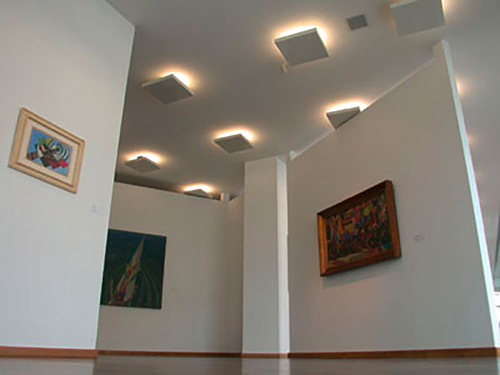 Das gewählte Beleuchtungssystem besteht aus quadratischen Installationskörpern, sogenannten Lichtinseln, die grundsätzlich frei im Raum angeordnet werden können. Durch die Verteilung der Lichtinseln werden bei Rücksichtnahme auf architektonische Aspekte für jeden Punkt des Raumes optimale beleuchtungstechnische Gegebenheiten erzeugt. Jede Lichtinsel besteht aus einer Stahlplatte, die im Abstand von mindestens 150 mm unter die Decke montiert wird. Zwischen Decke und Stahlplatte sind zwei verdeckte Kompaktleuchtstofflampen als Quelle für indirektes Licht sowie Steckverteiler für Fluter und Spotstrahler montiert. In ihrer Gesamtheit bilden die Platten eine imaginäre zweite Ebene unterhalb der Decke, die die im so geschaffenen Zwischenraum befindlichen Leuchten und die Insatallationstechnik optisch vom Museumsraum trennt. Die verschiedenen Leuchten können unabhängig voneinander geschaltet und mit Einsatz eines Infrarot-Fernbedienungssystems raumweise für die Dauer einer Ausstellung eingerichtet werden. Die Ausstellung wird täglich von der Zentrale aus geschaltet, ohne dass Installationstechnik das Erscheinungsbild der Wandflächen stört oder Unbefugte Zugriff auf Schaltelemente erhalten.