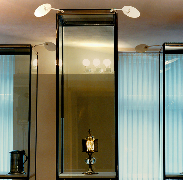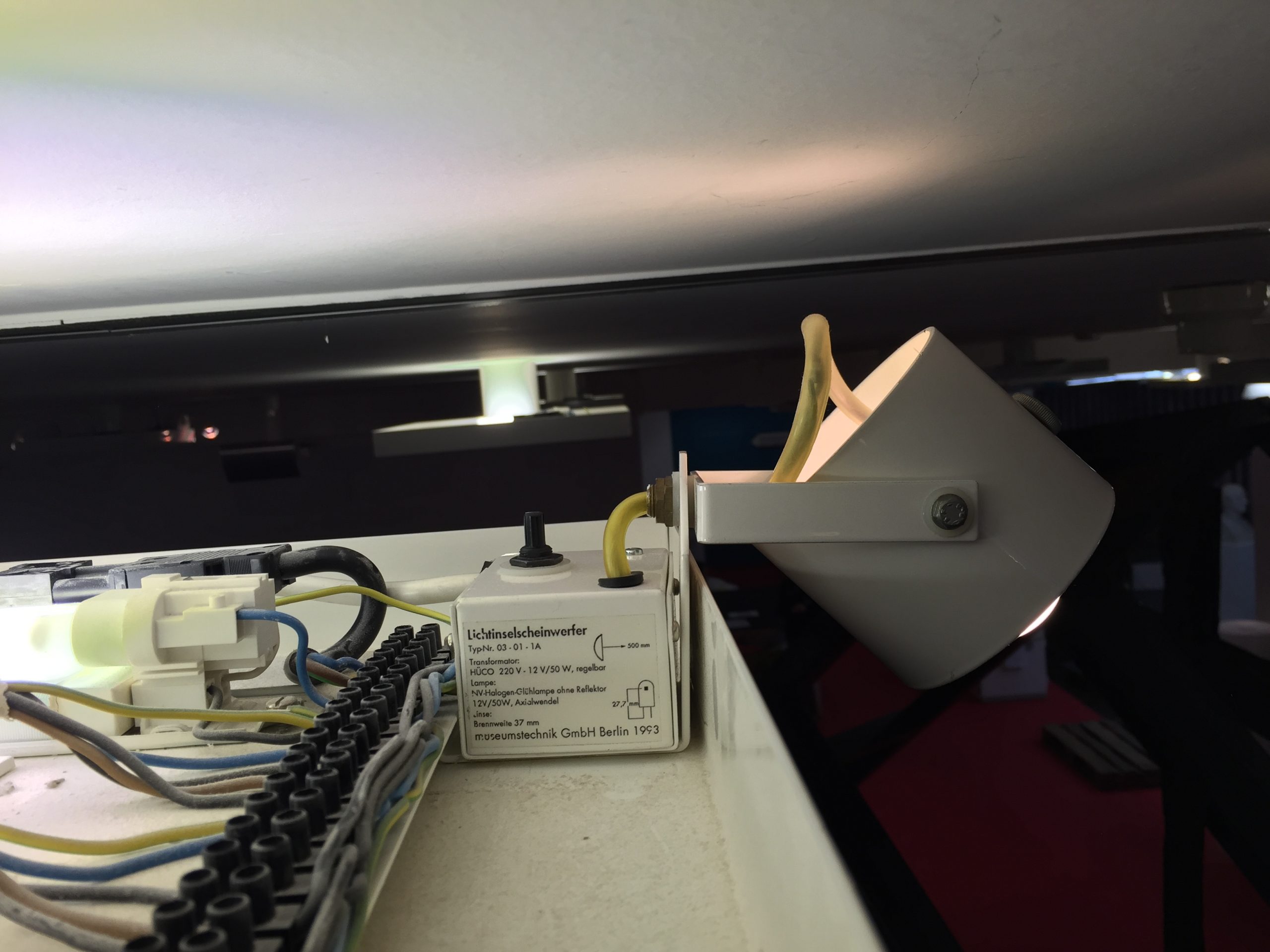 1993 entwickelten wir für die Sonderausstellungshalle des Dortmunder Museums für Kunst und Kulturgeschichte einen Kleinscheinwerfer für die dort installierten Lichtinseln. Das Licht einer Niedervolt-Stiftsockellampe wird durch einen Kugelspiegel verstärkt und lässt sich durch eine in Lichtachse verschiebliche Plankonvexlinse fokussieren. Die technisch gleichen Scheinwerfer mit Glas- anstelle von Blechröhre wurden für das Reformationsgeschichtliche Museum in Berlin-Spandau hergestellt.