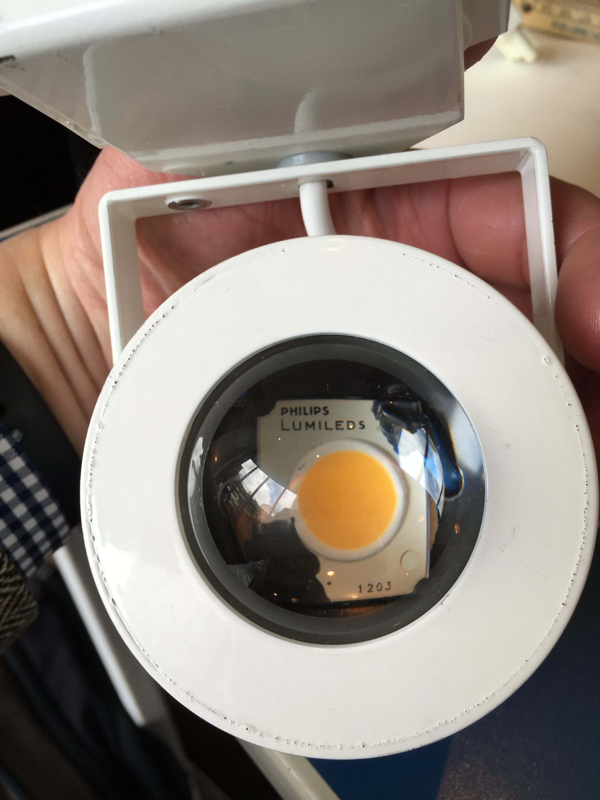 Das Museum beauftragte Ende 2015 die Firma Müller und Röhrig aus Essen, die 2014 bereits einen Teil der Flächenleuchten auf LED umbaute, 10 der Scheinwerfer auf LED-Betrieb umzurüsten. Die Lichtwirkung ist eindeutig besser – farbige Ränder sind nicht mehr vorhanden und beim Fokussieren erscheint ein bedingtes Abbild des Leuchtchips erst direkt am Anschlag. Die Leuchte lässt sich auch nach längerem Einsatz mit bloßen Händen bedienen.