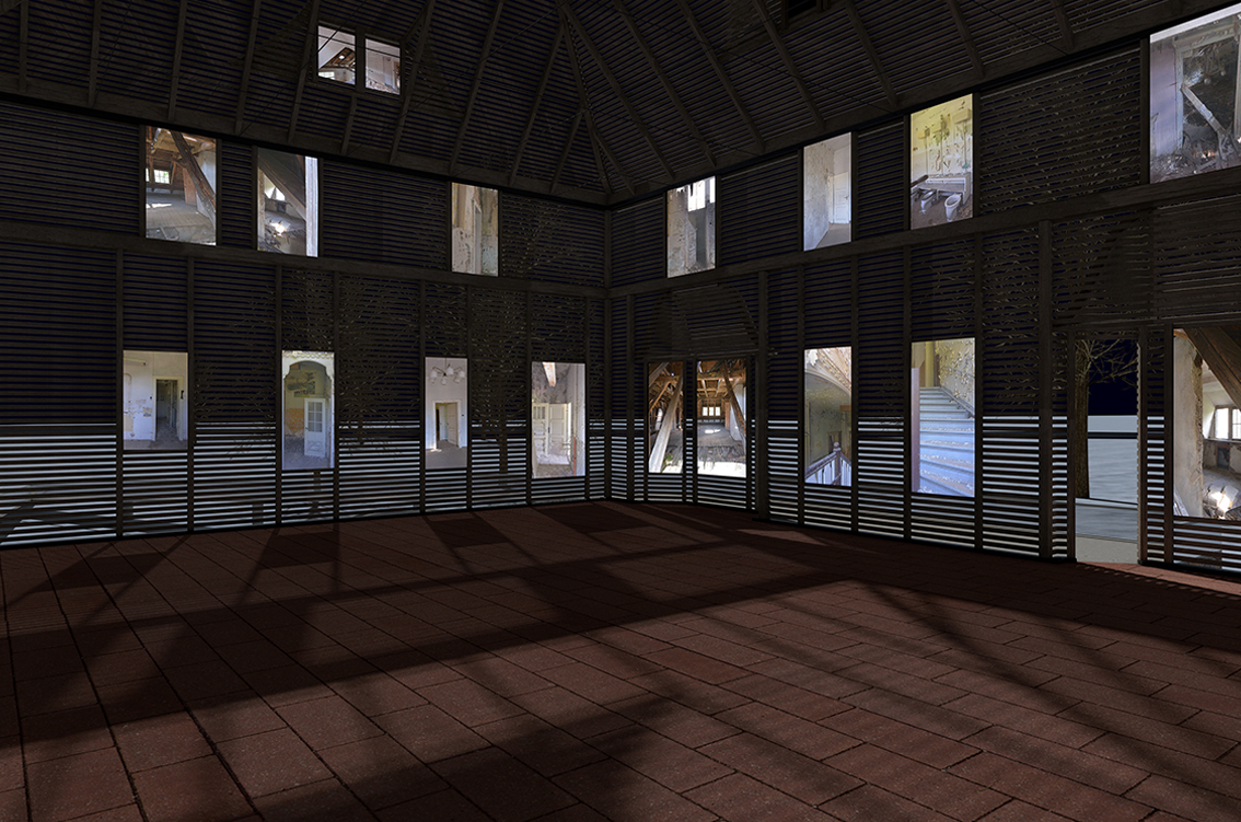 Im Innenraum der Gedenkstätte kehrt sich das Verhältnis von Leerraum und Körper um: Während die hölzerne Lattenfassade Licht und Luft einlässt, sollen die Fenster blickdicht mit medialen Installationen verschlossen sein, die die beklemmende Geschichte des Areals in Erinnerung rufen. Zugleich gestaltet der Entwurf den Innenraum variabel für verschiedene Nutzungsmöglichkeiten im Rahmen des Gedenkstättenkonzeptes. Es könnten darin sowohl wechselnde Ausstellungen, Konzerte, Vorträge wie Kunstinstallationen stattfinden.