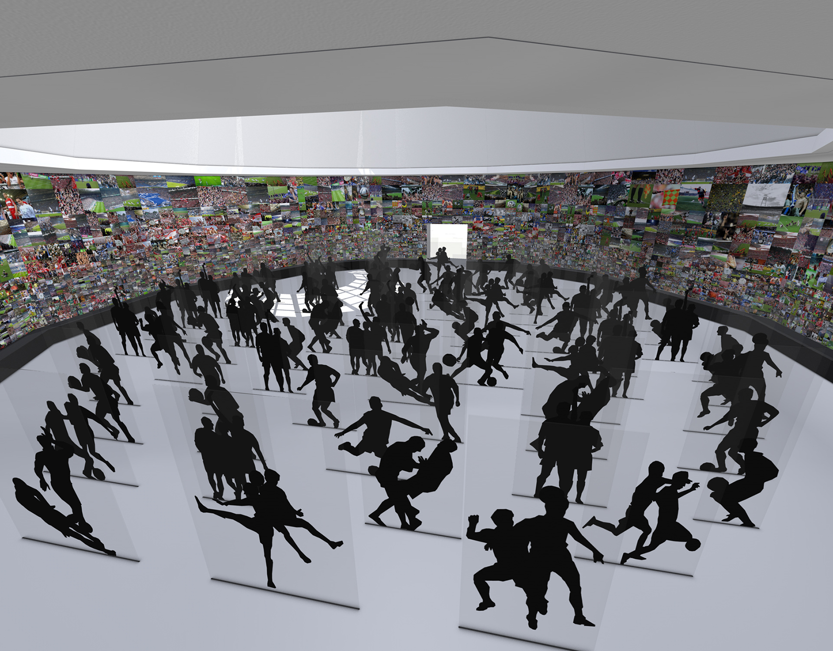 Bei dem geladenen Wettbewerb ging es darum, die emotionalen Höhepunkte der Fußballgeschichte Baden-Württembergs innerhalb dreier Ausstellungs-komponenten, Objektausstellung, Mitmachelemente und Forum, in den Räumen des Stuttgarter Kunstgebäudes in Szene zu setzen. Der große Kuppelsaal wird gleichsam zum Spielfeld mit aus Schattenrissen konzipierten Vitrinen, die Artefakte aus den 100 wichtigsten Spielen beherbergen. Ein 5m hohes panoramatisches Tableau mit den Fotografien aus über 3000 Fußballvereinen und interaktiven Stationen säumt das Geschehen. In der medialen ›Hall of Fame‹, werden Fußballweltmeister in lebensgroßen holographischen Projektionen gezeigt. Der Vierecksaal beherbergt das als Studio konzipierte Forum mit den radial dazu angeordneten Aktivzonen.