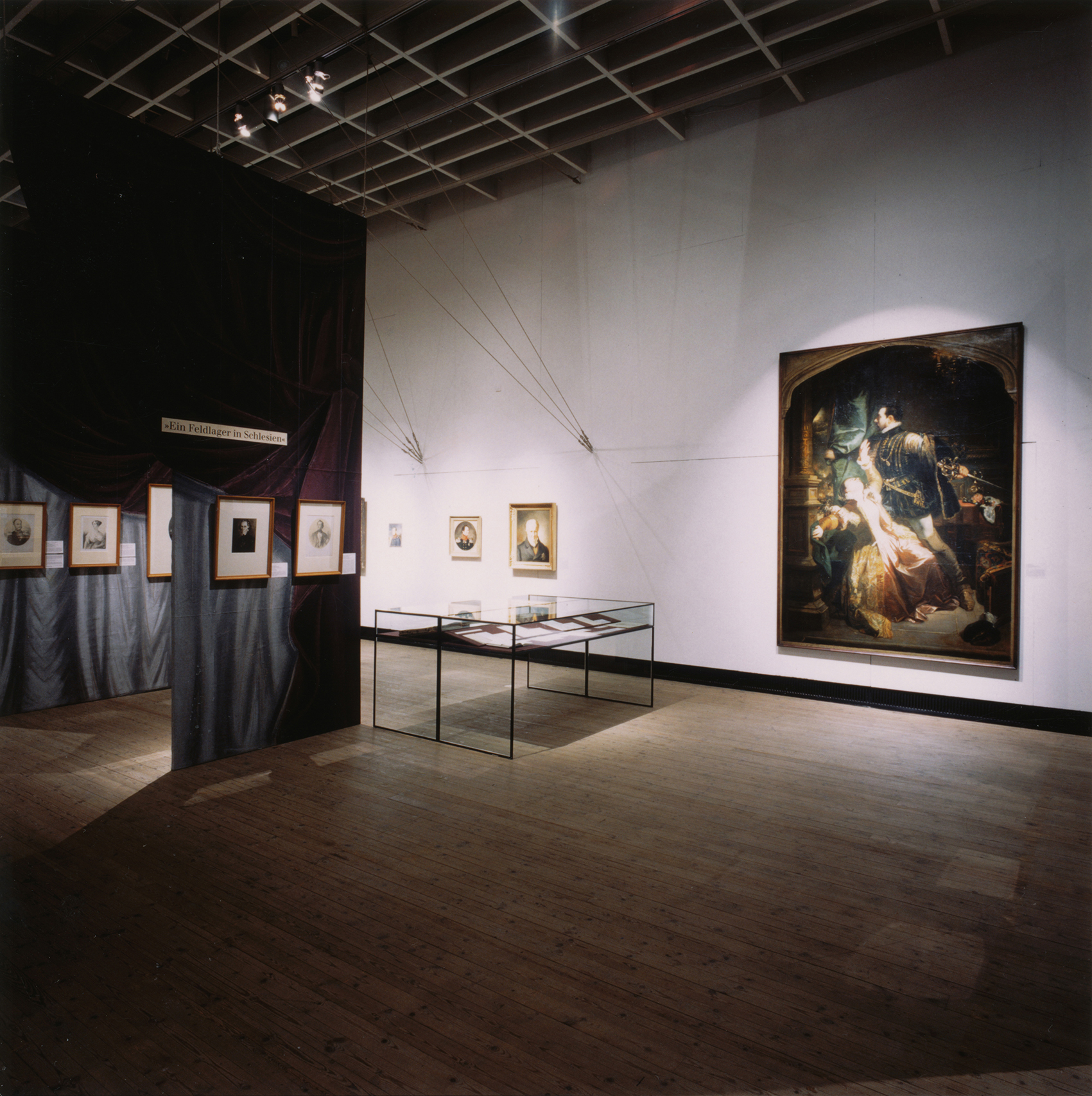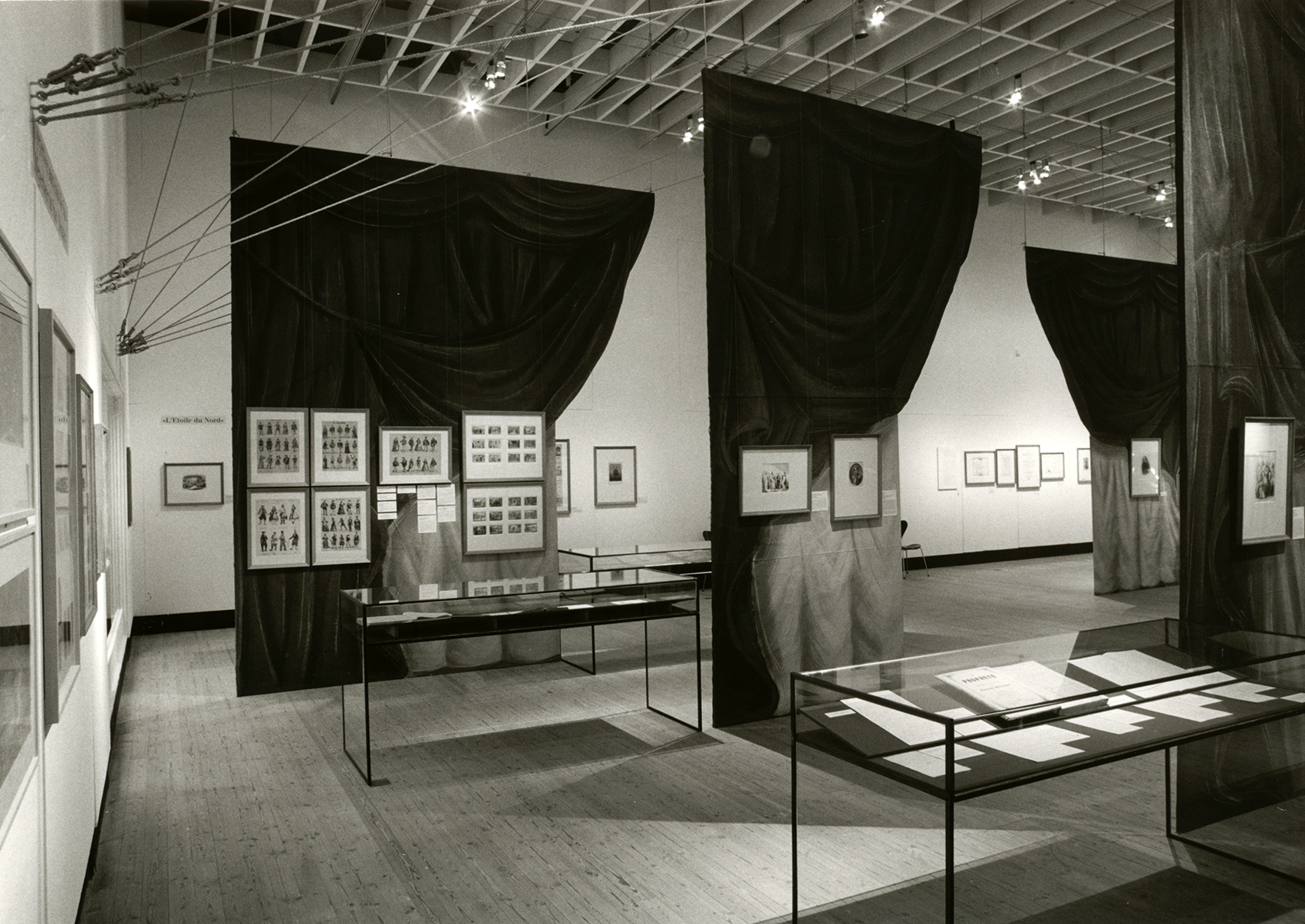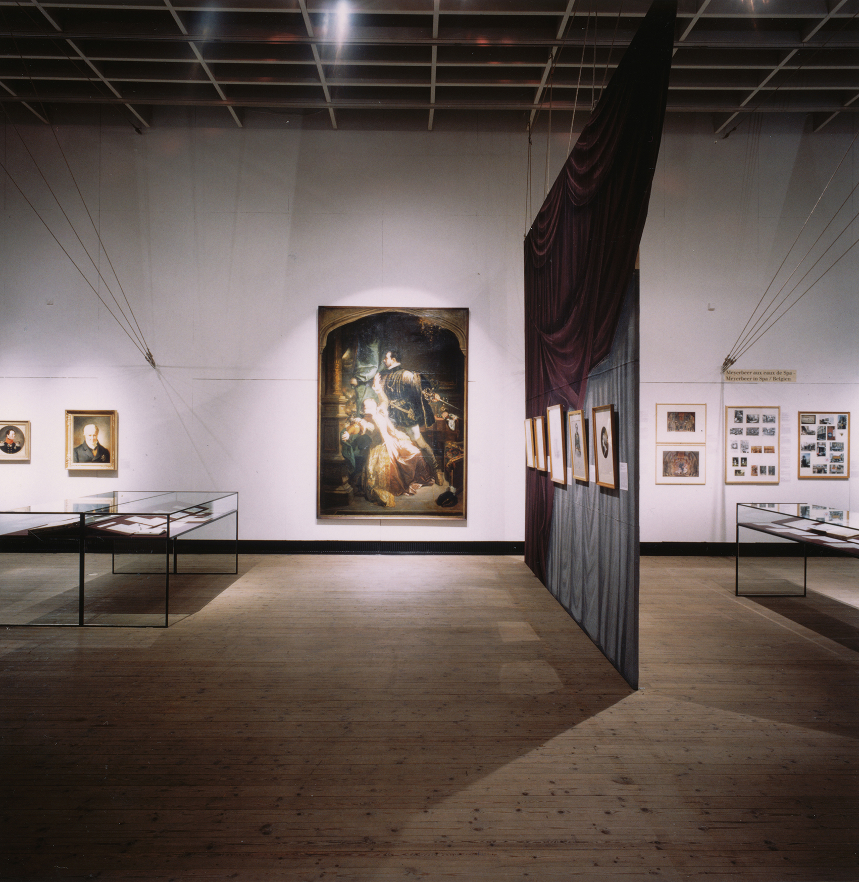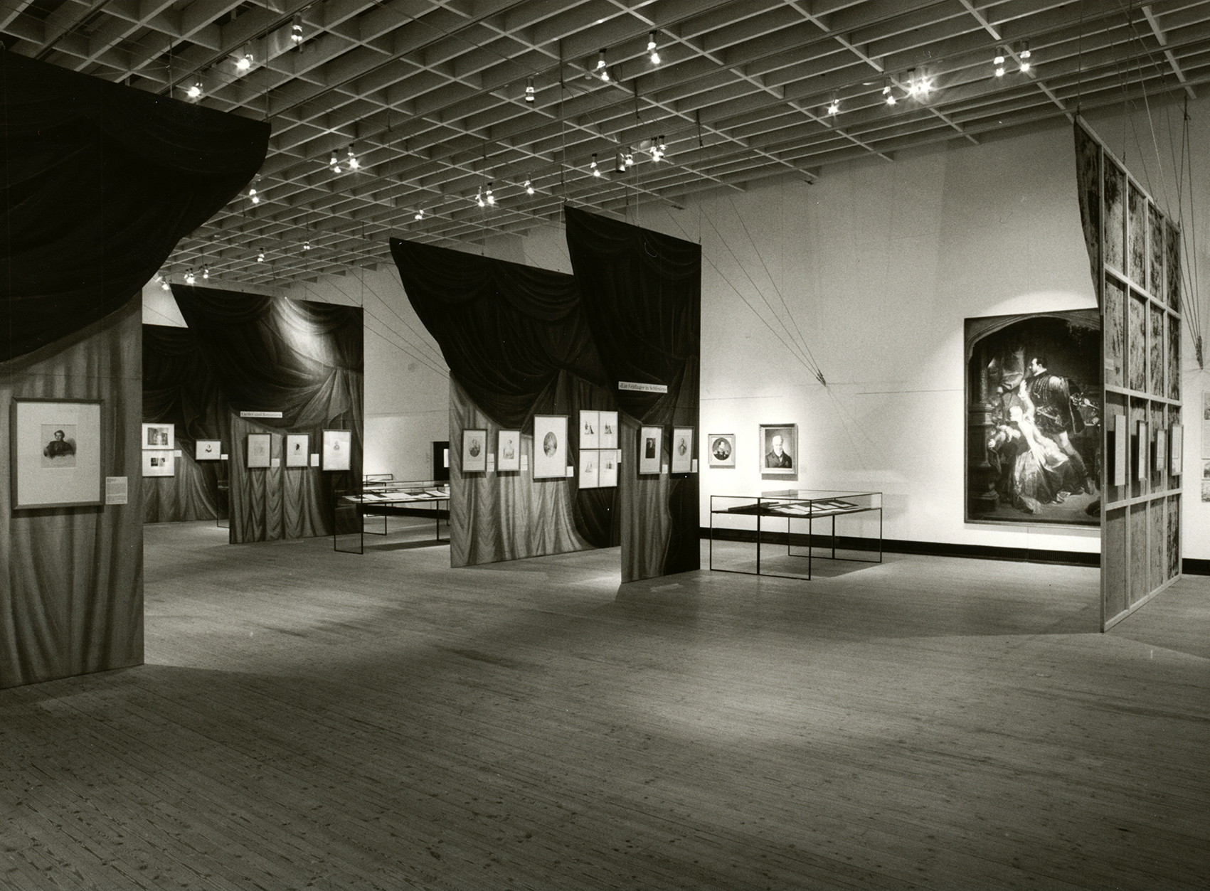 Heinz-Bert Dreckmann und Gabriele Sehringer bemalten Theaterleinen in Umrissen von Vorhängen, diese wurden dann auf Holzrahmen gespannt. Die Vorder- und Rückseiten der Wände waren ideale Ausstellungsträger. Tischvitrinen für Partituren und Bücher standen auf einem »Bühnenboden«. So fand mit dieser Schau das Theater einen Weg ins Museum.