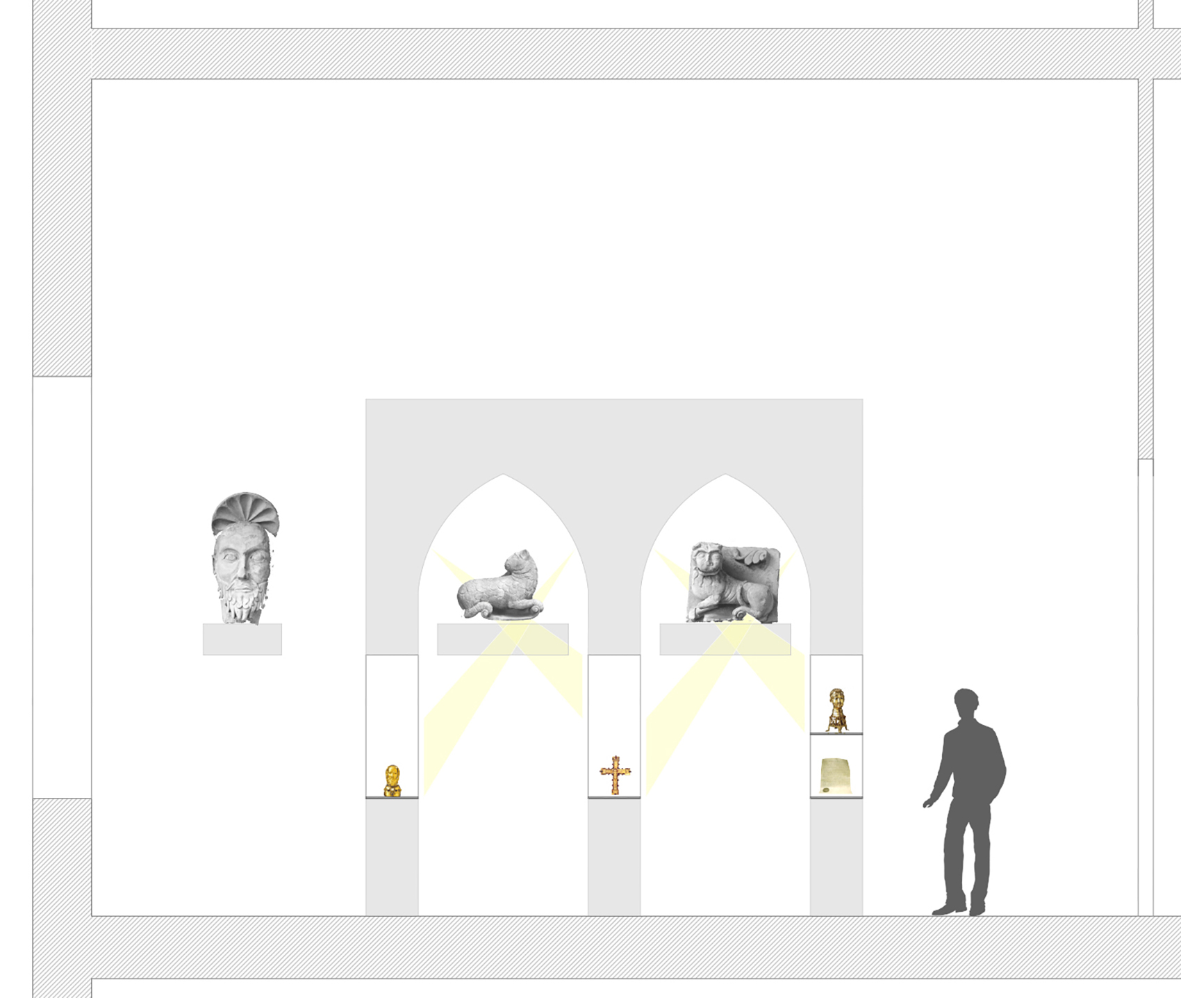 Bei dem eingeladenen Wettbewerb des Bistums Münster standen feinste Skulpturen und Schmuckgegenstände aus kirchlichem und profanem Kontext im Vordergrund. In Anlehnung an die Epoche aus der die Goldschmiedekunst stammt, die in der Ausstellung thematisiert wird, soll das Publikum die Aspekte der Schatzkunst im Zusammenhang mit dem Architekturstil der Gotik wahrnehmen. Die Ausstellungsarchitektur mit ihren sitzbogigen Überbauten als prägnantes, erinnerungsmächtiges Element stellt eine harmonische Einheit in Geometrie, Proportion, Materialität und Farbe dar, die als angemessene und elegante Kulisse für die Präsentation einer vielfältigen Zusammenstellung geeignet ist.