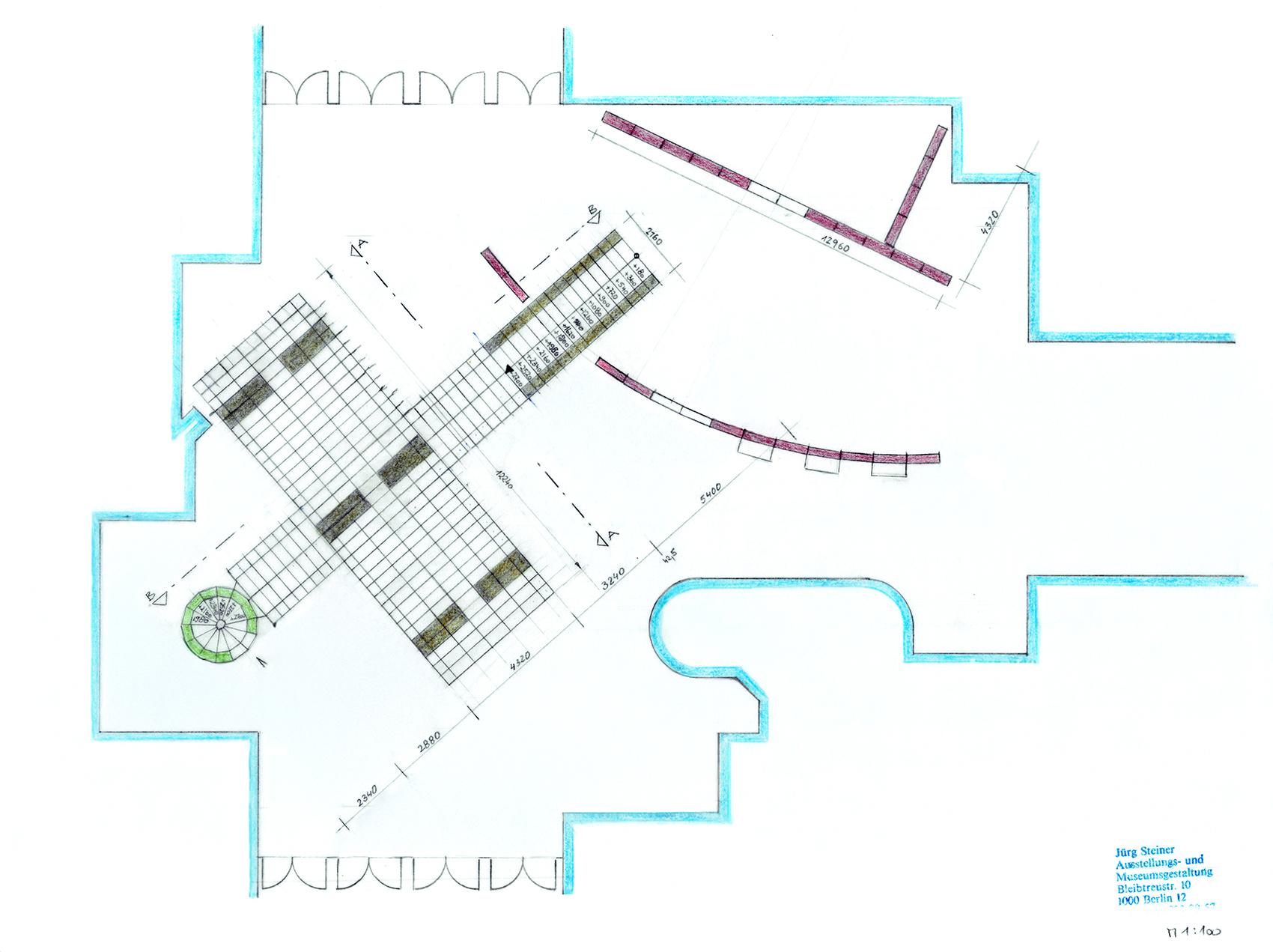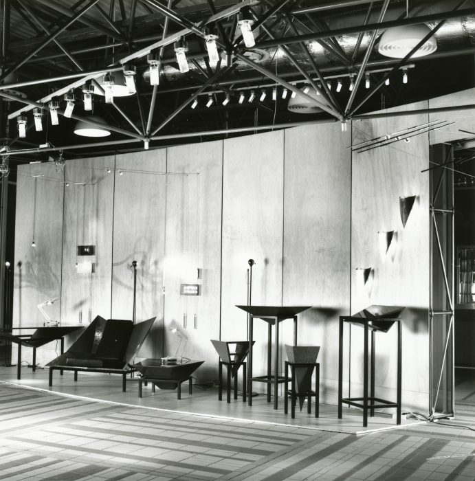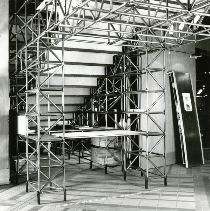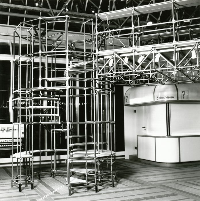 Andreas Brandolini entwarf den Gemeinschaftsstand der Berliner Zimmer Design Agentur aus System 180. Jürg Steiner realisierte den Entwurf. Für das System wurde der Schraubenstab entwickelt, der Vorfahre des noch heute üblichen Mutternstabs. Dieser Pfosten verfügte bei dem Messestand an jedem Ende über eine herausstehende Schraube M 12. Er war bei der zweiten Ebene senkrecht und bei den Unterstützungsgestellen waagrecht angeordnet. Dadurch konnten viele Stahlfachwerke über Kreuz zu einem Trägerrost verbunden werden. Die obere Ausstellungsebene wurde seitlich durch Regale begrenzt. Eine gerade und eine gewendelte Treppe führten auf die zweite Ebene.