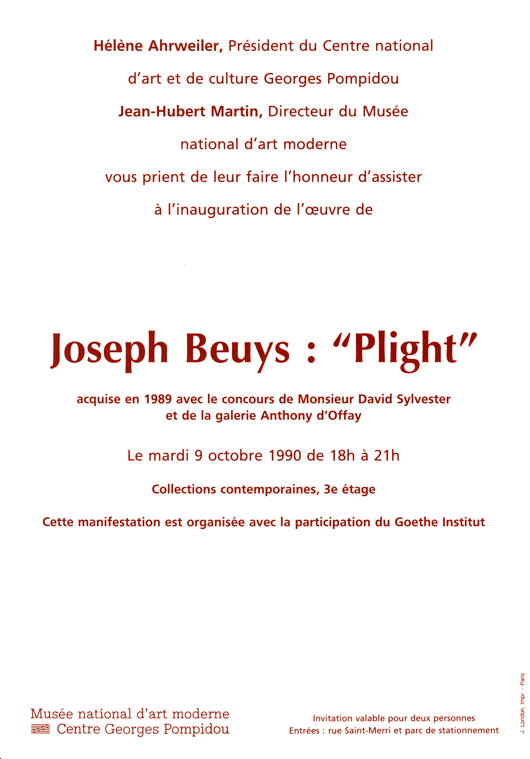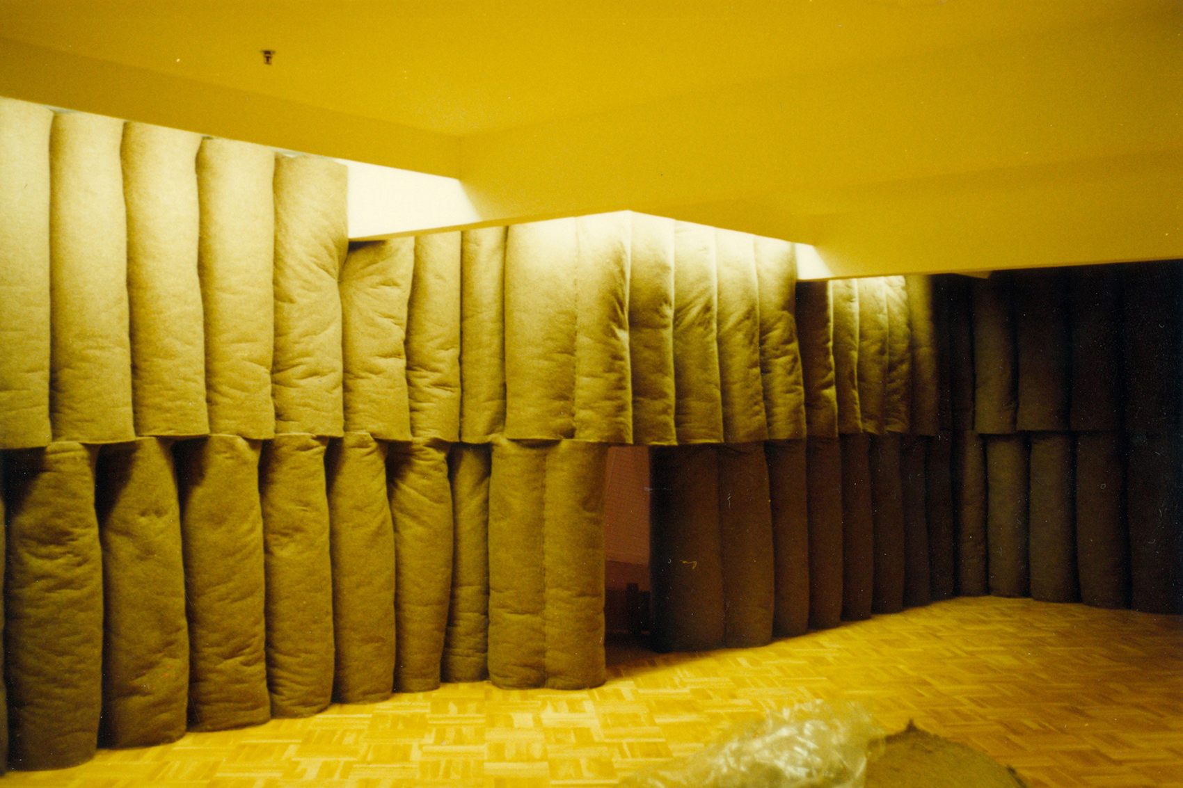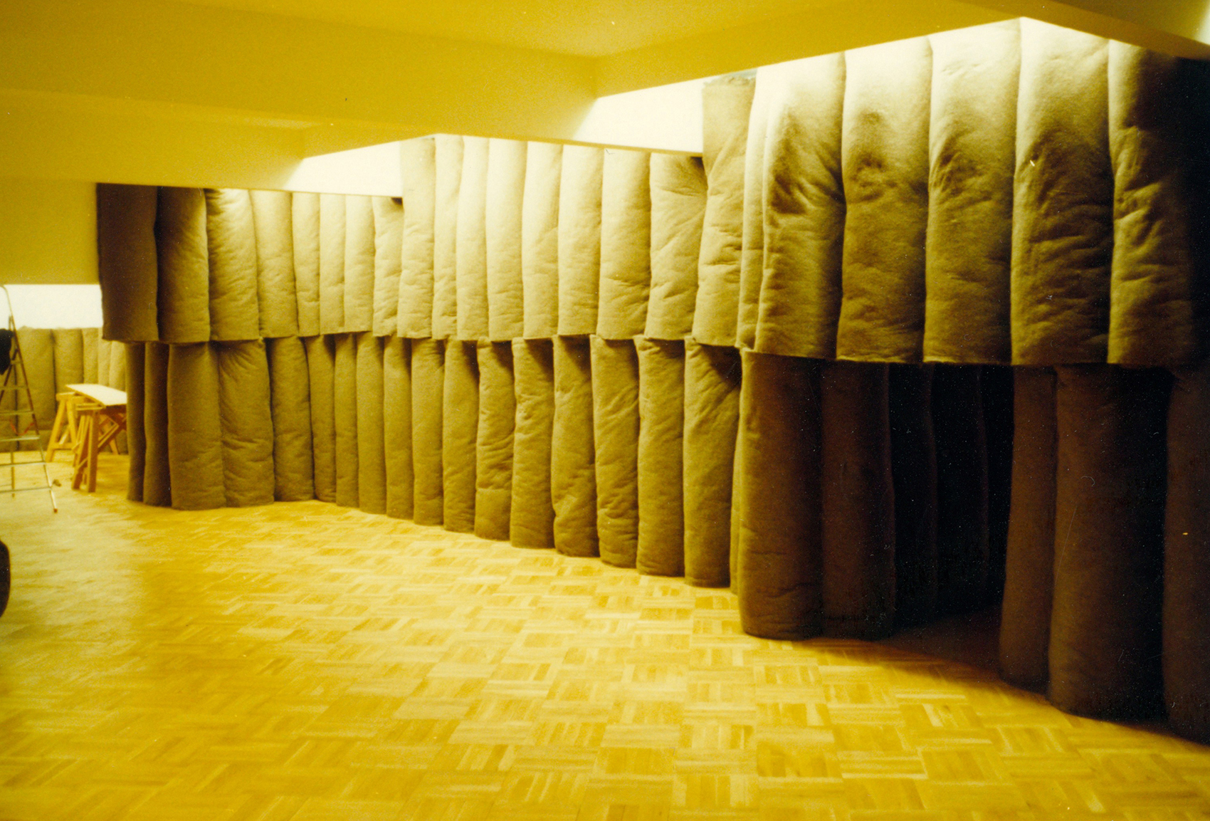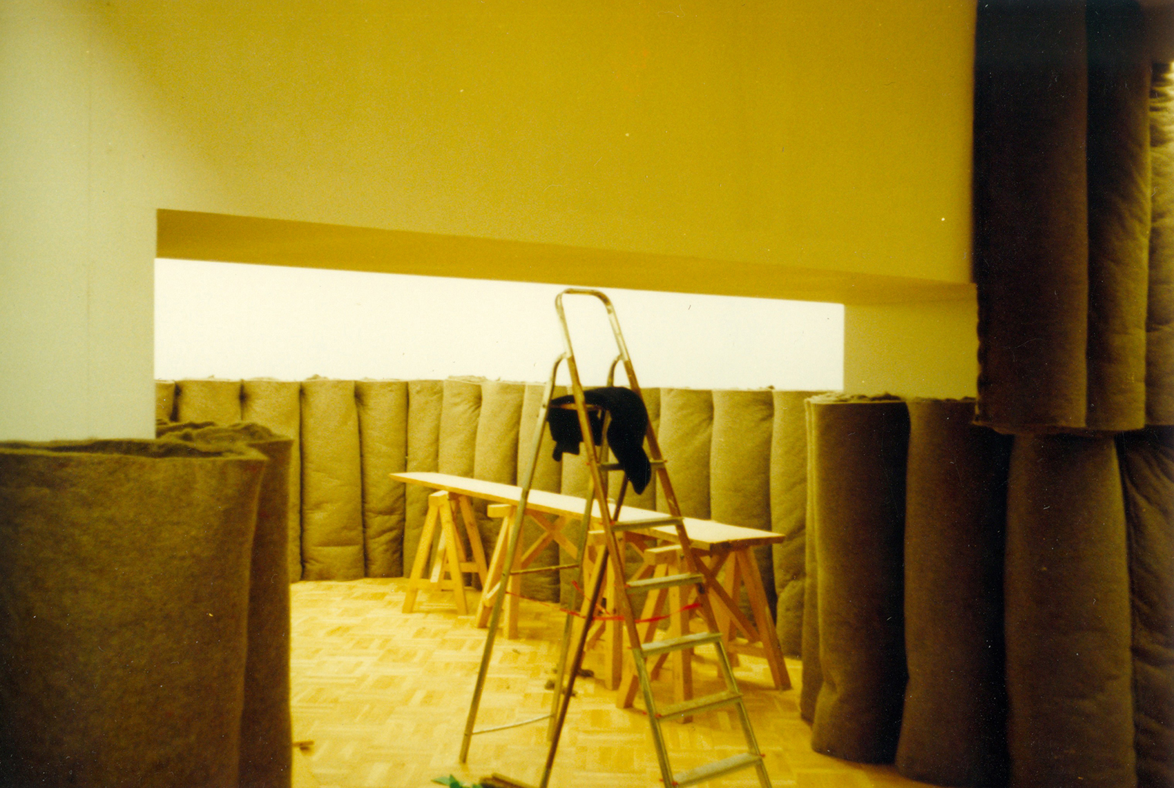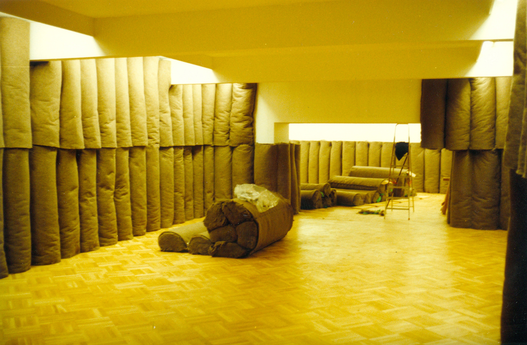 Nach der Ausstellung, Joseph Beuys – Skulpturen und Objekte sollte die Installation »Plight« nicht wieder zurück zur Galerie Anthony D’Offay nach London, sondern ins Centre Pompidou. Auf Veranlassung von Heiner Bastian lieferten wir die entsprechenden Zeichnungen – der Raum sollte gleich sein wie in London und Berlin –, halfen in Paris bei der Raumdefinition und Hasso von Elm leitete den den Aufbau. (Die Abbildung in schwarz-weiss ist aus dem Katalog von Heiner Bastian: Joseph Beuys – Skulpturen und Objekte, München 1988, die farbigen Fotos machte Hasso von Elm beim Aufbau in Paris.)