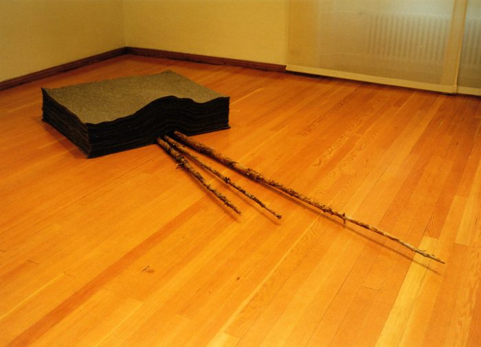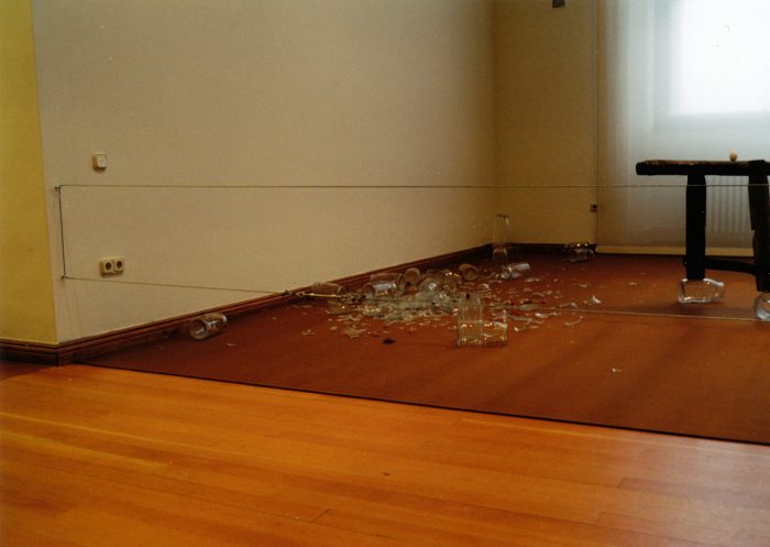 Die großen Galerien des Haues waren ideal für Beuys’ raumgreifende Installationen, von denen auf dem ersten Bild ein Ausschnitt des Werks »Zeige deine Wunden« abgebildet ist. Dezente Absperrungen hinderten das Publikum, das Raumbild zu betreten. Fahles Licht, das der Künstler schon bei der Zeitgeist-Ausstellung 1982 im Lichthof verlangte, erzeugten wir hier exemplarisch: Schatten waren nur angedeutet, eine gleichmässige Lichtquelle von oben betonte die klinische Künstlichkeit der Szenerie. An die Innenwand des Rings im Lichthof waren Rahmen mit der Serie »A Secret Block of a Secret Person in Ireland« gelehnt (Bilder 2–5), auf dem Umgang im Obergeschoss hingen weitere Arbeiten dieses Zyklus (Bild 6). Das zweitletzte Bild zeigt die Installation »Plight«, für die ein Raum der Londoner Galerie Anthony D’Offay nachgebaut wurde. Die Briefmarke zu 80 Pfennig trug Jürg Steiner lange bei sich, um, wenn angezeigt, demonstrieren zu können, was er für eine vorbildliche Vitrinengestaltung hielt.