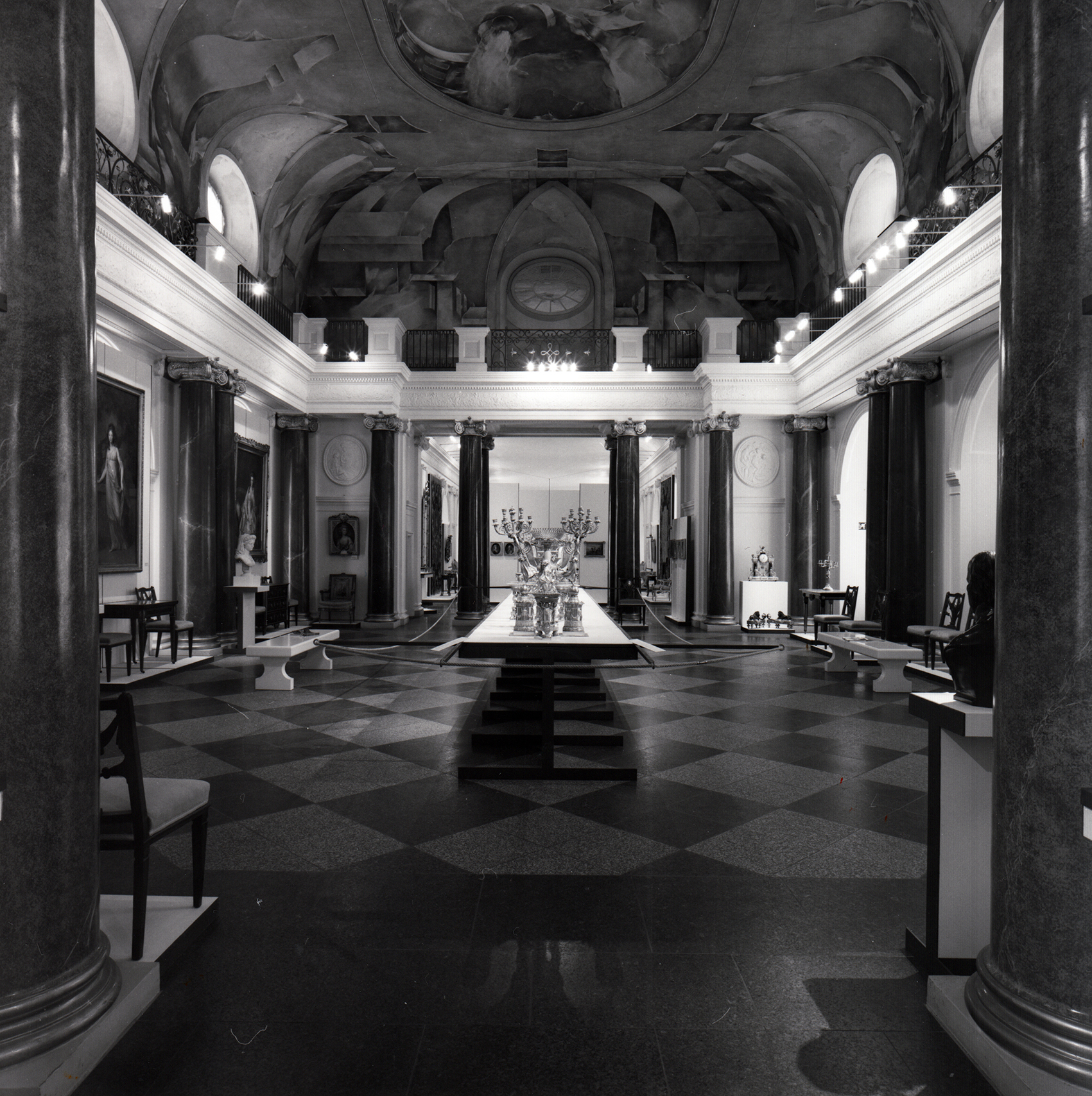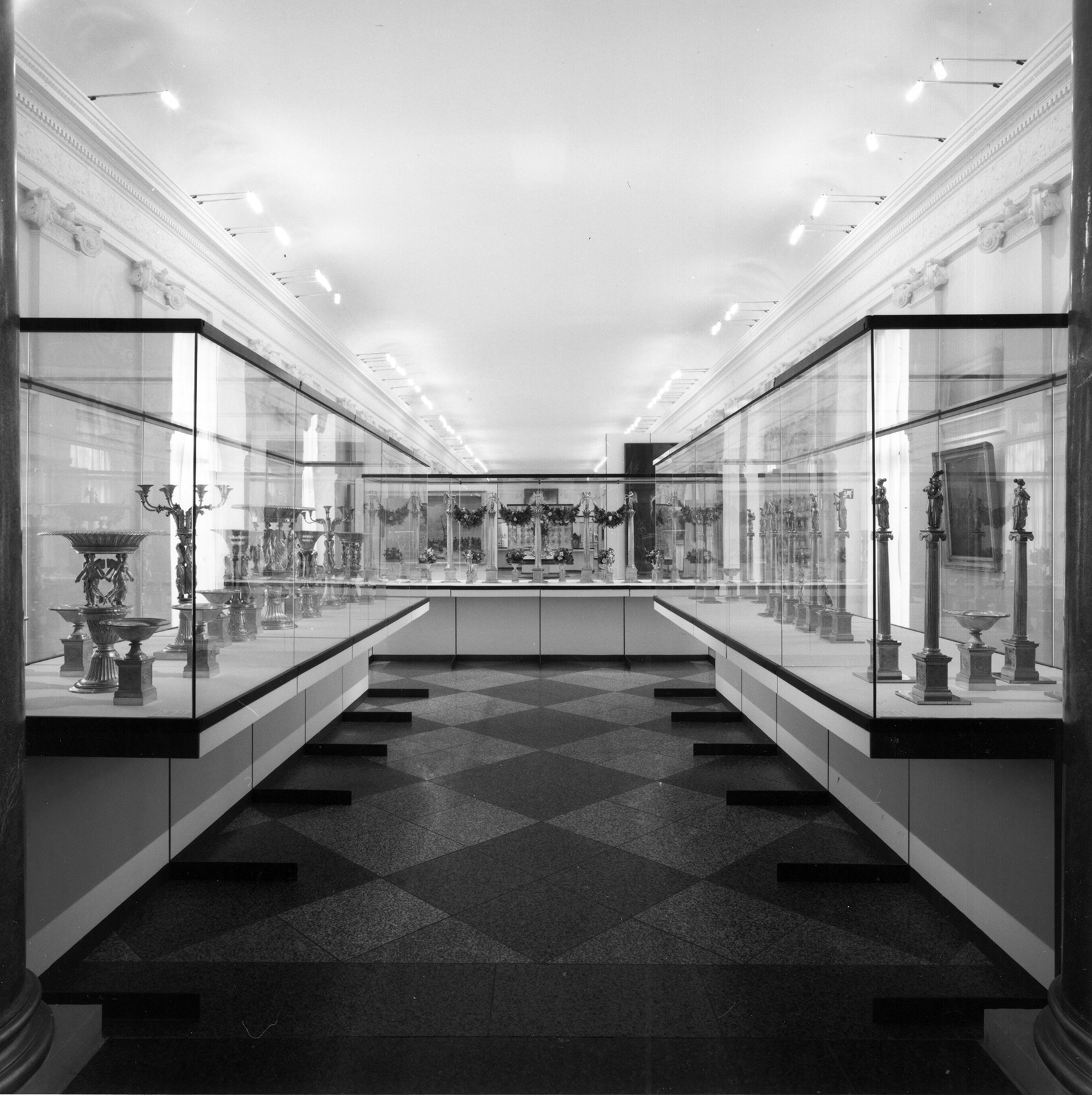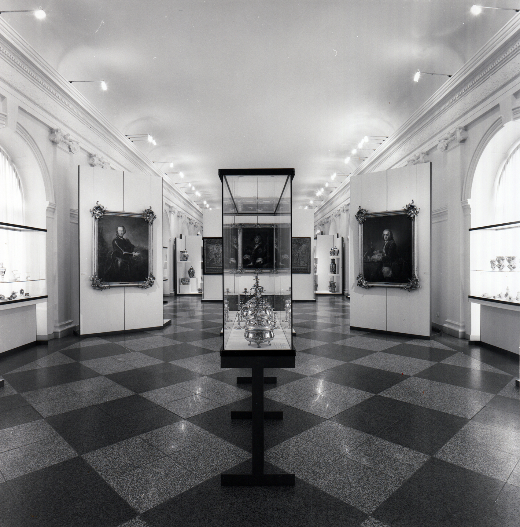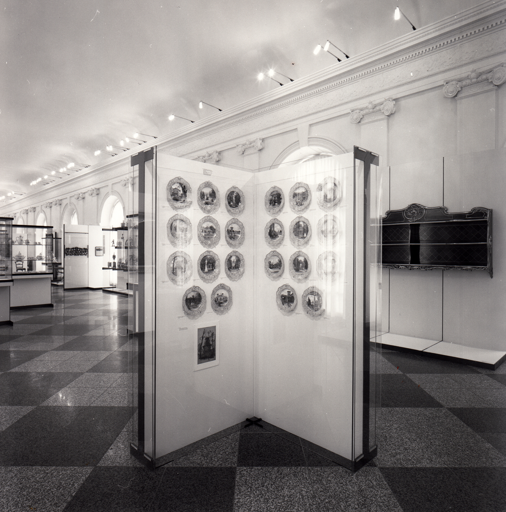Auf ein modulares System aus Untergestellen aus H-förmigen Flachstahlrahmen und Holzplatten wurden Vitrinenmodule aufgebaut, deren senkrechte Gläser auf der einen Seite mit einem Scharnier und auf der anderen mit einem Schloss ausgestattet wurden. Darüber hinaus wurde ein neues Beleuchtungssystem aus Drehradleuchten mit Kragarm aus der Zitadelle Spandau adaptiert.