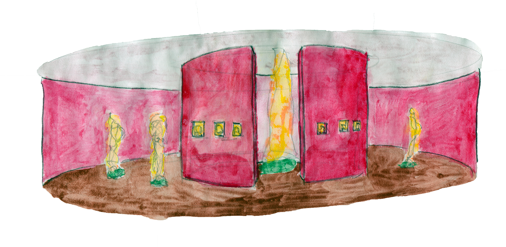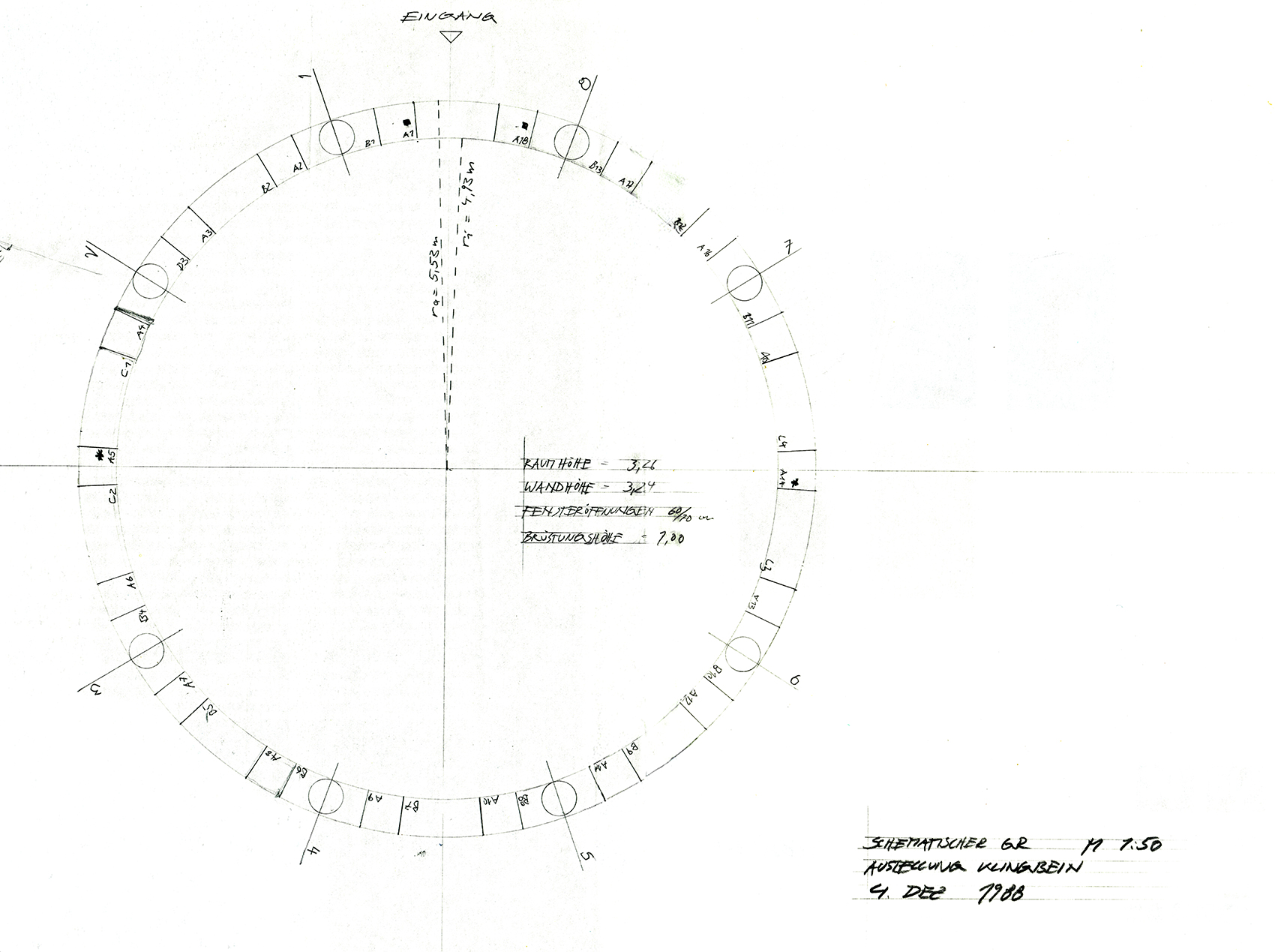 Der spät wieder zur Bildhauerei zurückgekehrte Karsten Klingbeil zeigte seine erste Gesamtausstellung in der damaligen Ausstellungshalle der Grundkreditbank und stellte ein facettenreiches Werk mit figürlichen Skulpturen zusammen, deren Spektrum von handlichen Kleinplastiken bis hin zum großformatigen Entwurf für einen noch größeren Brunnen reichte. Die inneren Stützen der Halle auf kreisförmigem Grundriss integrierten wir in einen ringförmigen Einbau für Kleinskulpturen und schafften innen- und außerhalb sinnfällige Raumeinheiten.