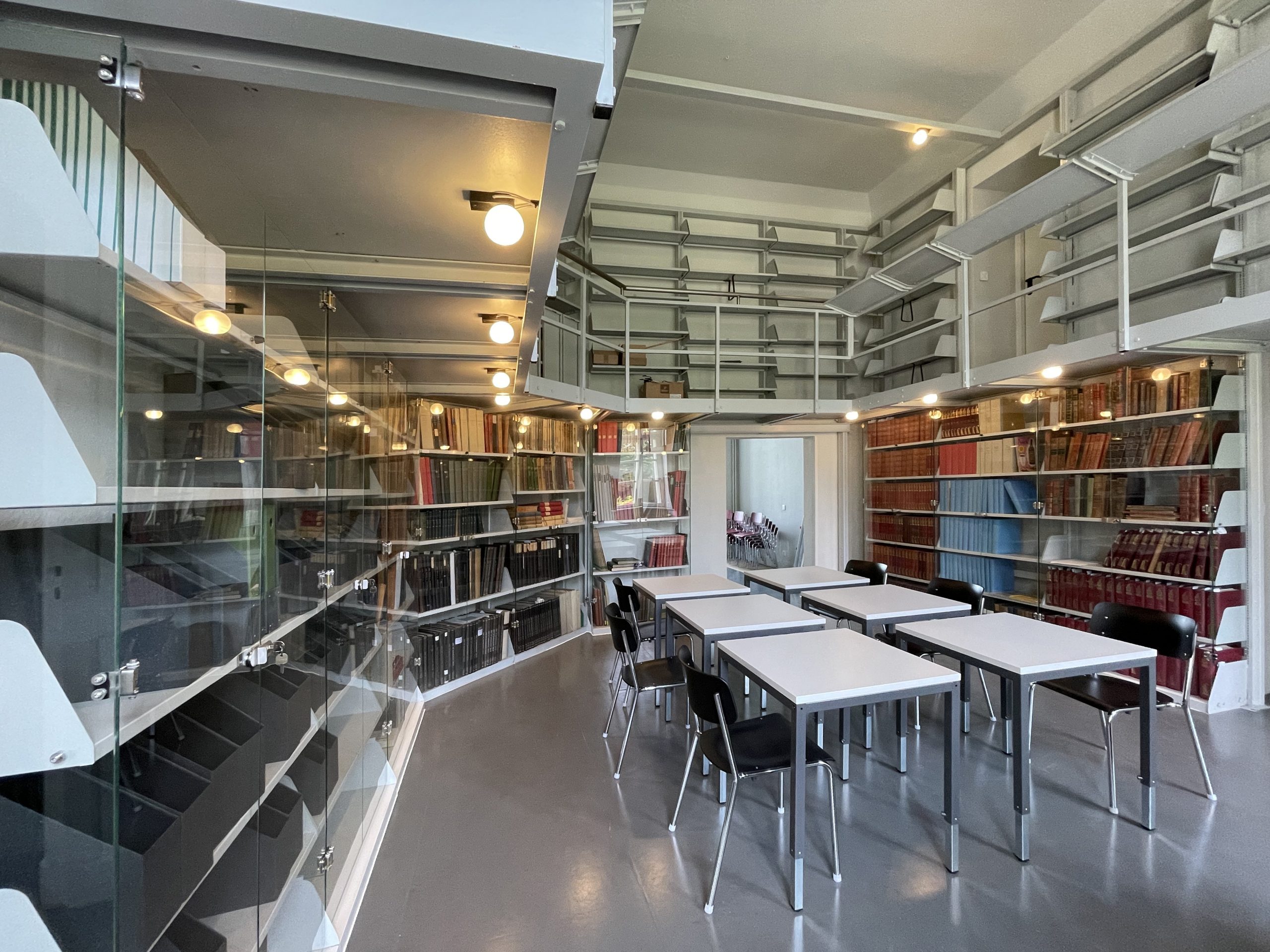 Für die Nutzungserweiterung der Bibliothek als museumspädagogische Raumfolge galt es unter anderem, vorhandene Bibliotheksregale zu verglasen und zu beleuchten.