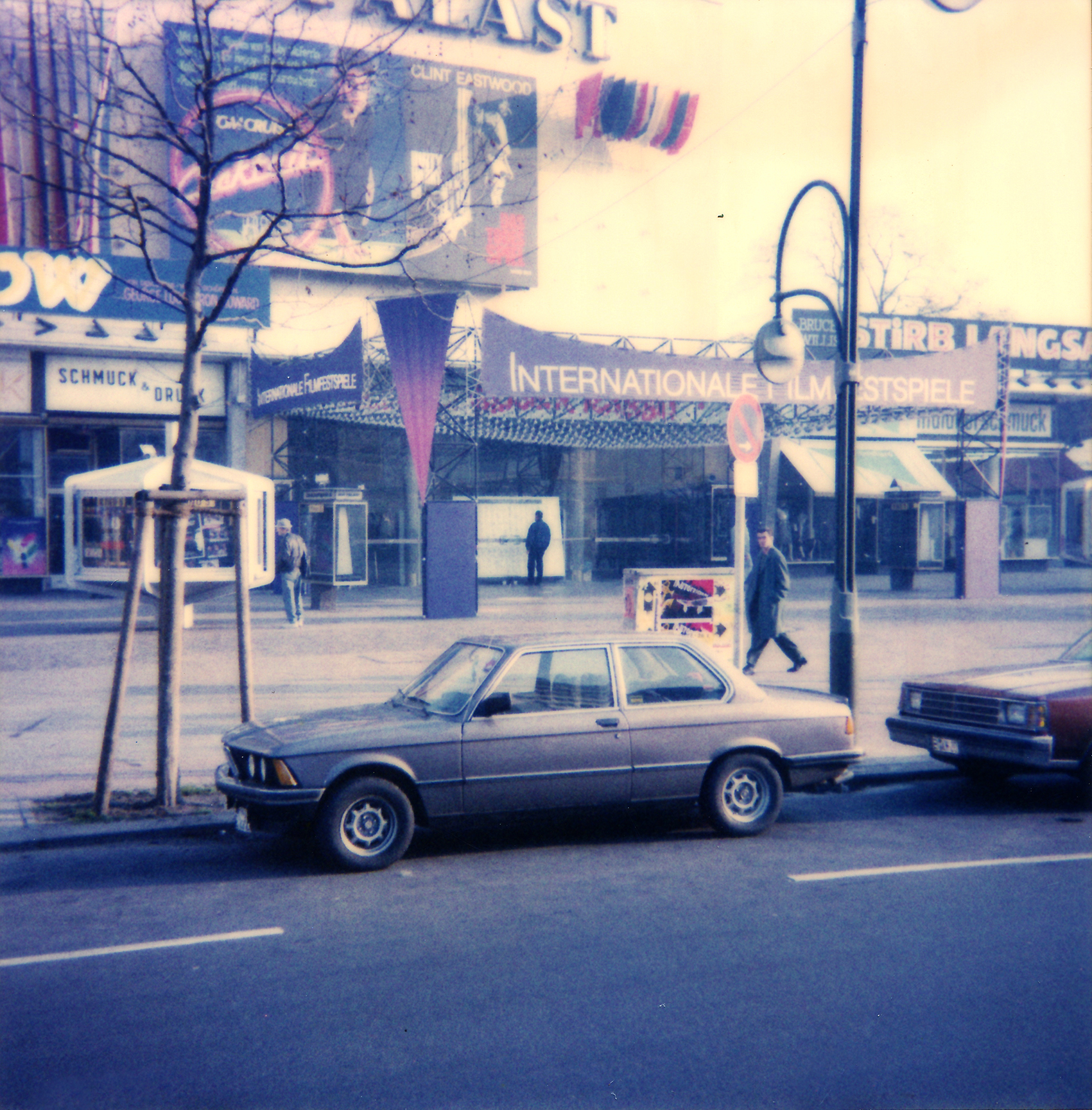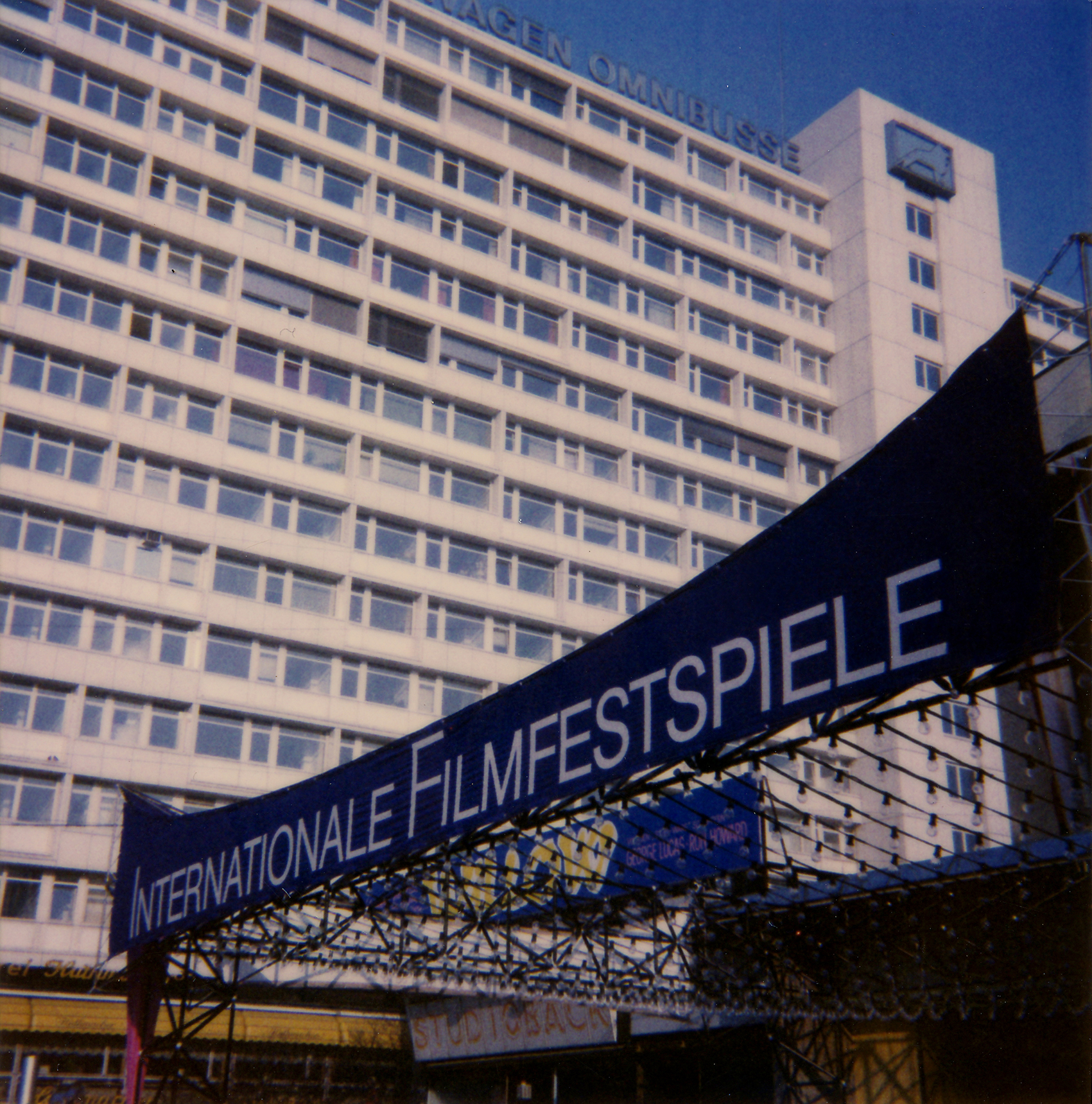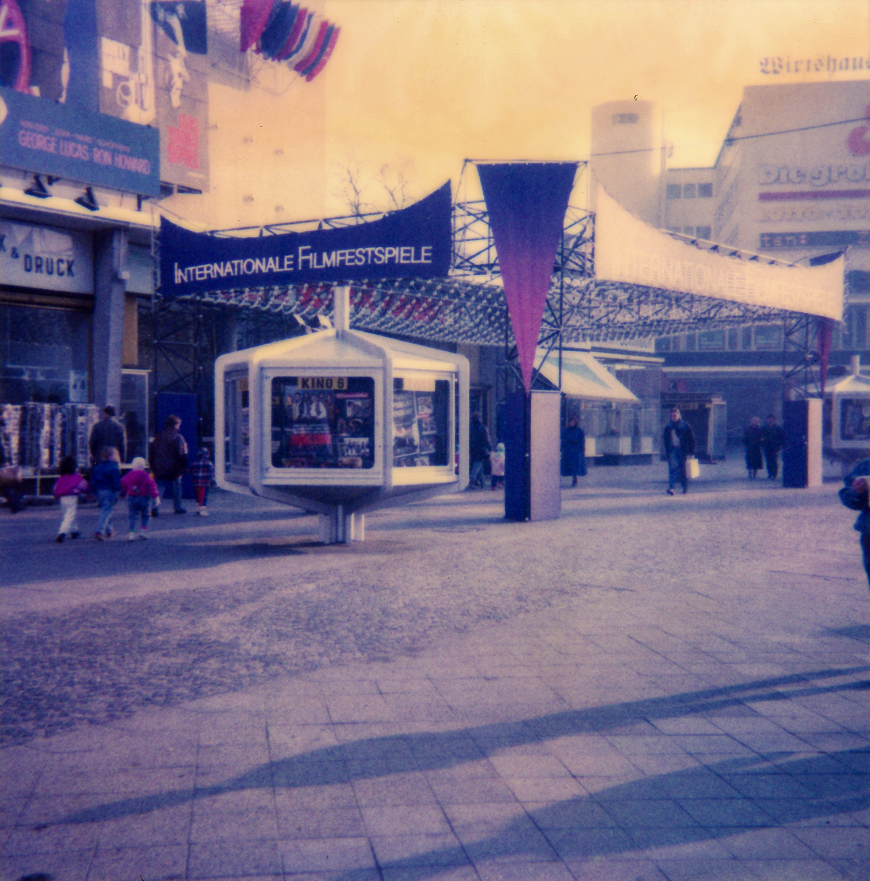 Die Hauptkräfte verliefen im oberen Saum, weshalb die Oberkante der Transparente in einer Linie gebildet wurde, die einer gespannten Kette glich. Dadurch warfen die Transparente – auch ohne Anbindung an eine Unterkonstruktion – keine Falten. Dreieckssegel schlossen den Bau an den Ecken ab. Schon immer störten den Gestalter die sinnlos voluminösen Schaukästen aus den 1970er-Jahren, die das Filmtheater der Fünfziger verunstalten, aber was sollte er tun?