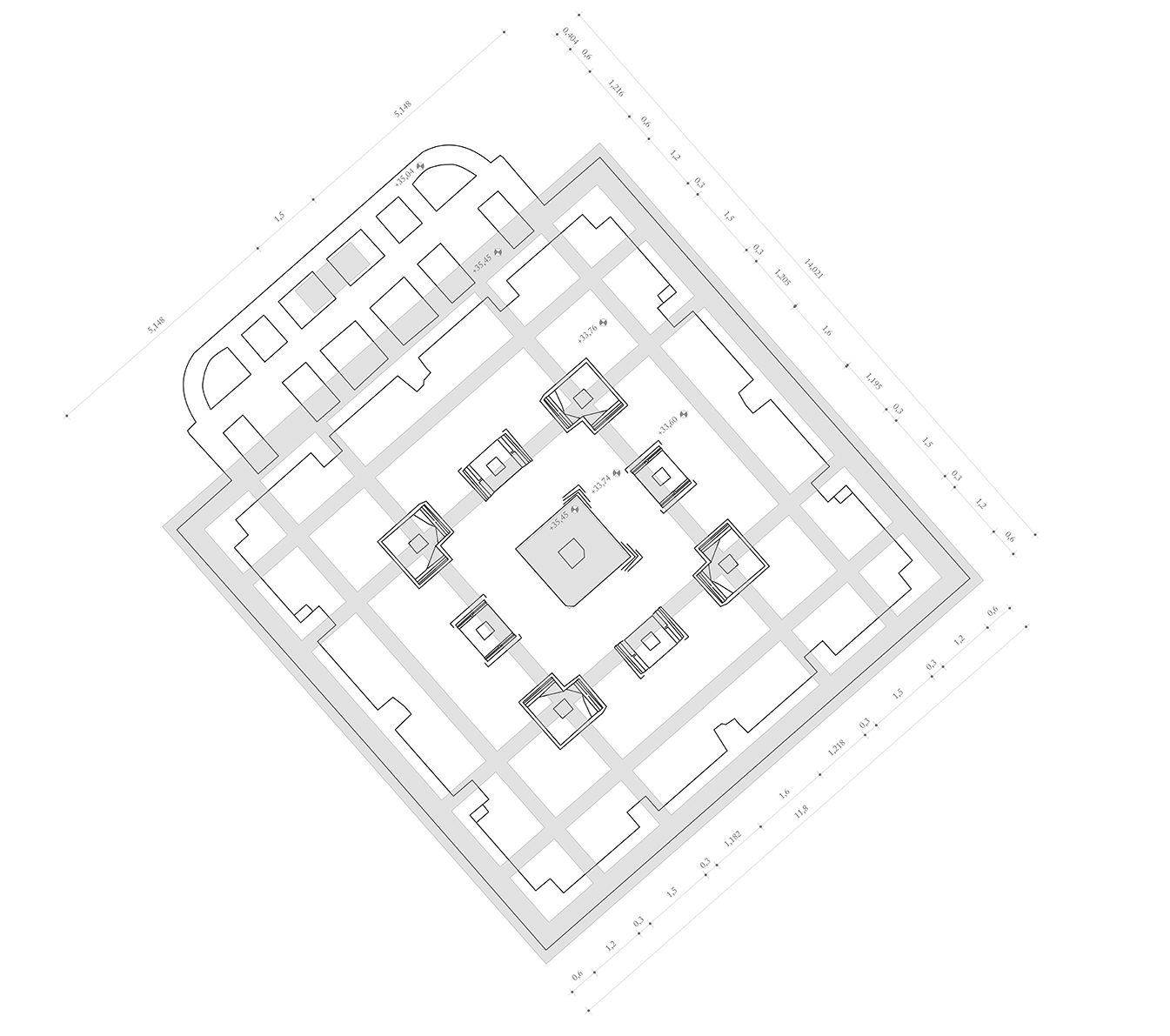 Beginnend mit dem ersten Satz des Johannes Evangeliums ›Im Anfang war das Wort‹, wird das Denkmal an den Außenseiten der Brüstungen umlaufend in Worte gehüllt. Das gesamte Evangelium nach Johannes ist aus Stahlplatten ausgeschnitten und in sinnfälliger Reihenfolge und in Gänze lesbar. Die Abdeckungen der Brüstungen aus Glas erlauben das Tageslicht in das Innere der Brüstungen zu leiten. Eine zusätzliche künstliche Beleuchtung in den Brüstungen lässt das Denkmal und damit die Übersetzung bei Tag wie bei Nacht aufleuchten. In Licht inszeniert, wird die Statik des kubistischen Entwurfs aufgelöst und das Werk in seiner Gesamtheit belebt.