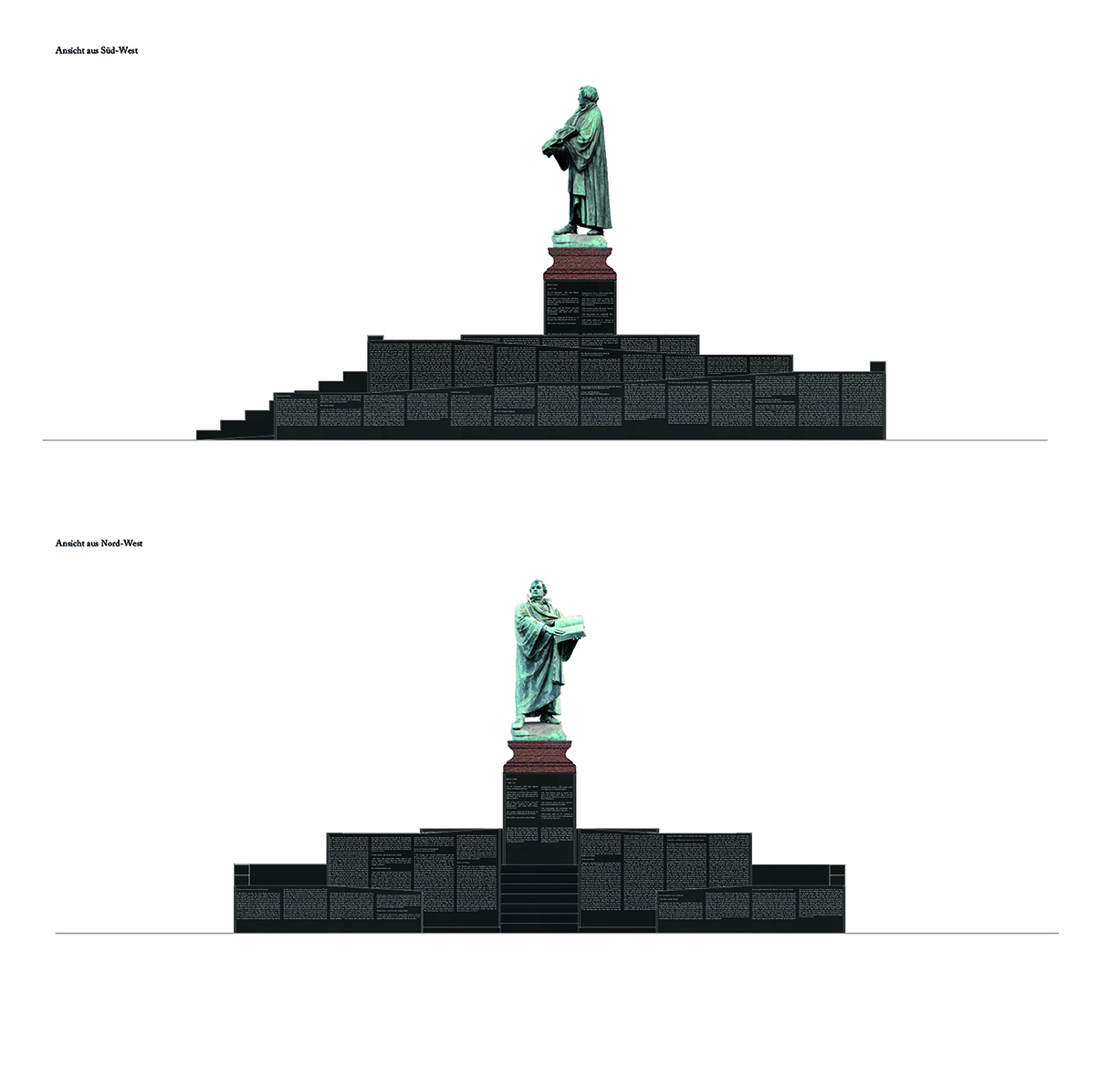 Inspiriert von der Originalausgabe der Lutherbibel präsentiert sich das Denkmal Martin Luthers und damit seine Hinterbliebenschaft dem Publikum auf emotionale und einladende Weise.